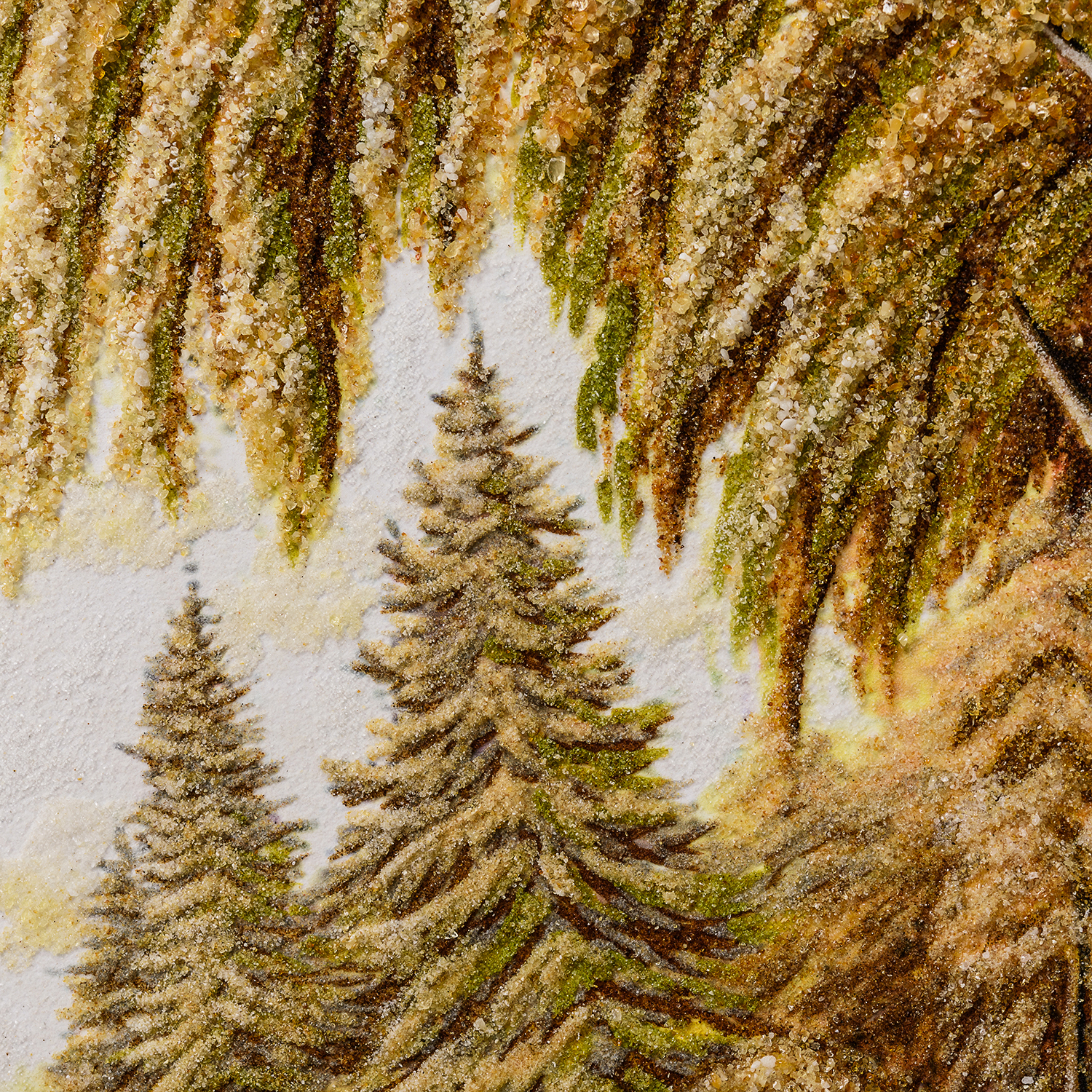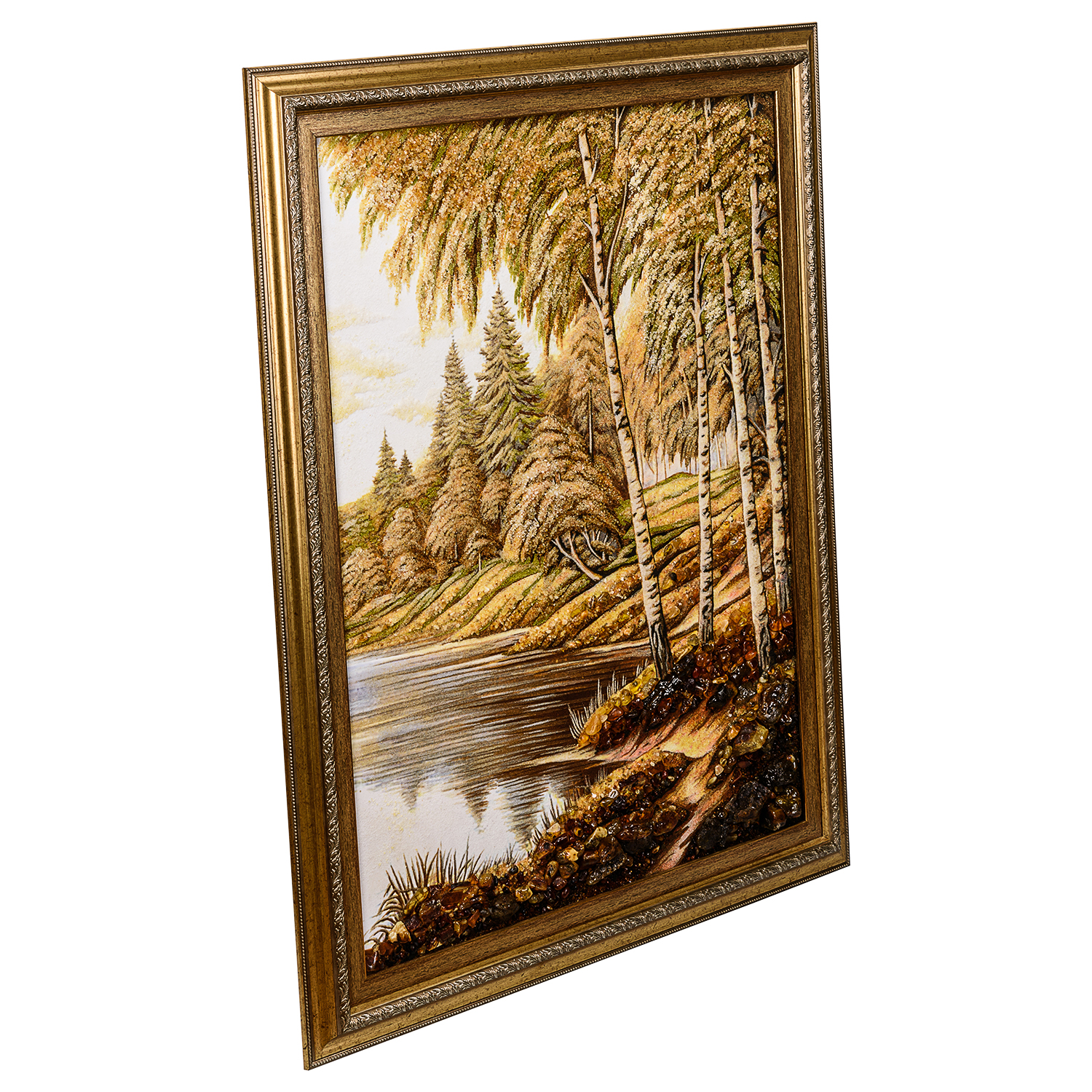 Янтарь за свою историю и физические свойства ценился дороже золота. Финикийцы торговали им, снабжая Средиземноморский регион и территорию современного Ирака. В Древней Греции самоцвет служил благовонием, ионизировал воздух, отпугивал комаров, устранял усталость, способствовал повышению иммунитета, успокаивал нервную систему. Осенью 1862 года в районе Пальмникена (Калининградская область) волнами вынесло на берег две тонны янтаря, в 1878 году - еще больше, так что местные поморы собирали его много месяцев. Ежегодно на берег выносится 36-38 тонн янтаря. Когда стекло еще не умели делать прозрачным, очки и лупы изготавливали из шлифованного янтаря. В Египетском музее Каира хранится корона Тутанхамона, сверкающая бриллиантами, изумрудами и рубинами, окружающими эпизод балтийского янтаря. Посредством самоцвета древние египтяне мумифицировали фараонов. Члены японских и китайских императорских семей носили минерал вишневого цвета, называя его «кровью дракона». На Руси янтарь именовали морским ладаном и применяли крошку в религиозных обрядах как благовоние, излечивающее от кашля.При изготовлении использовался янтарь, янтарная крошка, деревянный багет, лак.