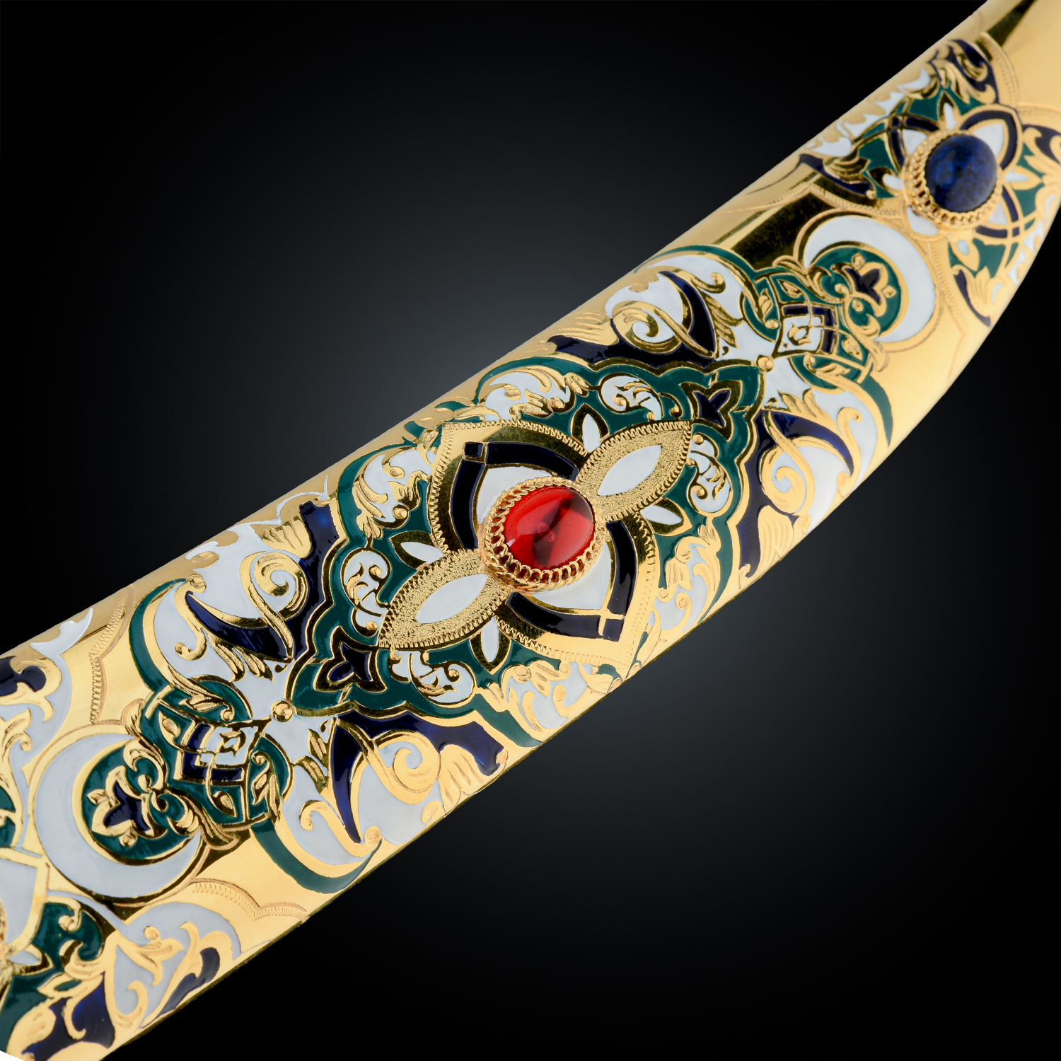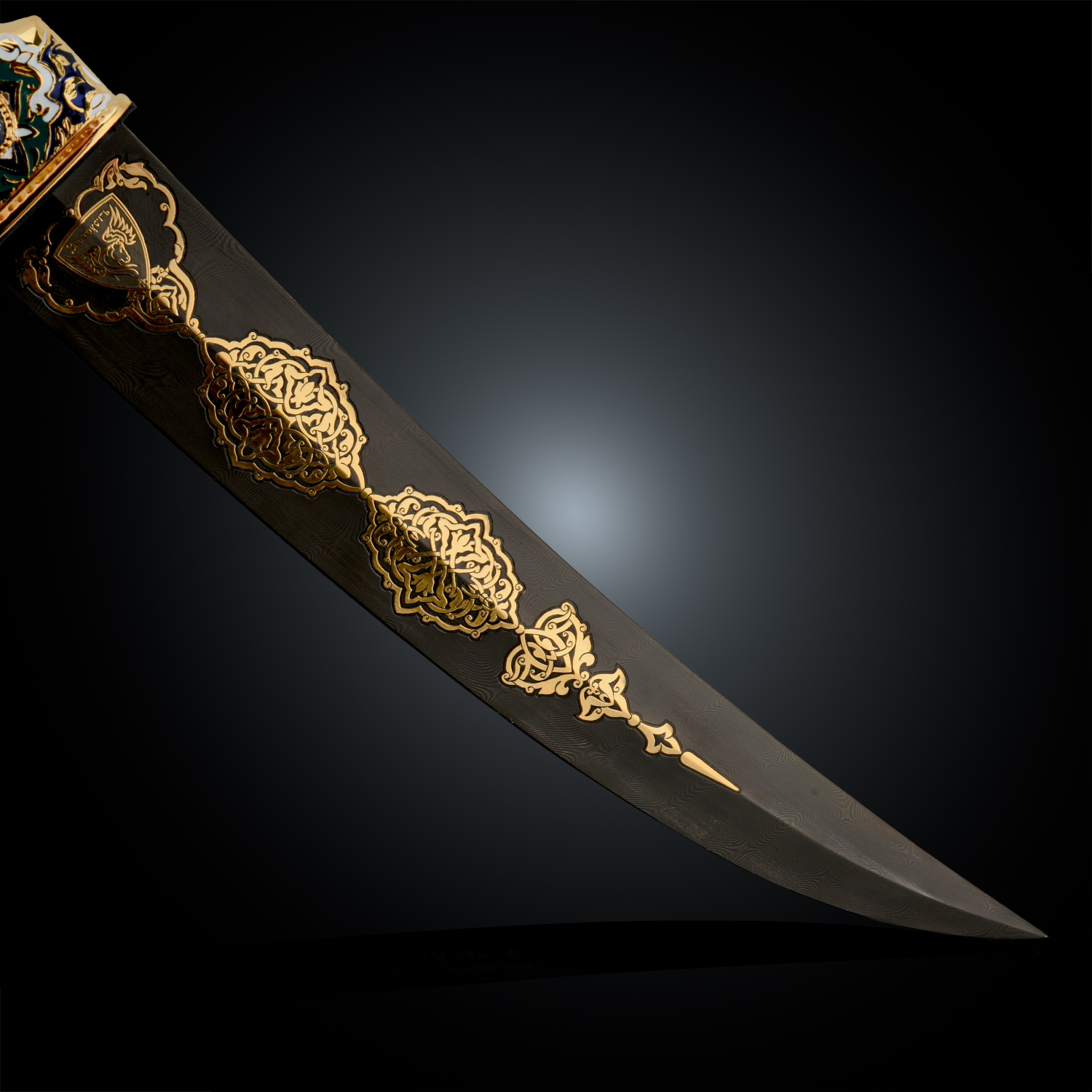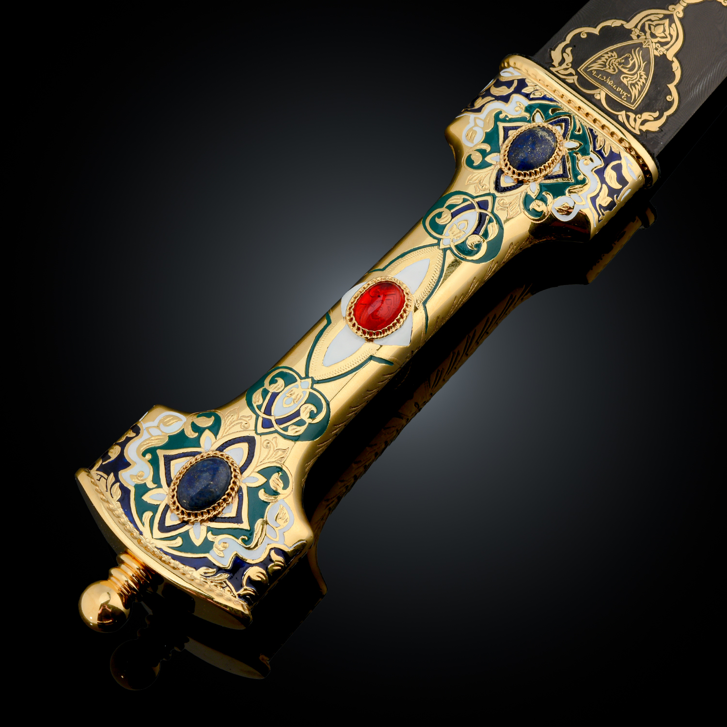 Кинжал сувенирный "Бебут". Златоуст.Материалы: дамасская сталь, латунь, никель, золото 999,9*, эмаль, кабошоны.