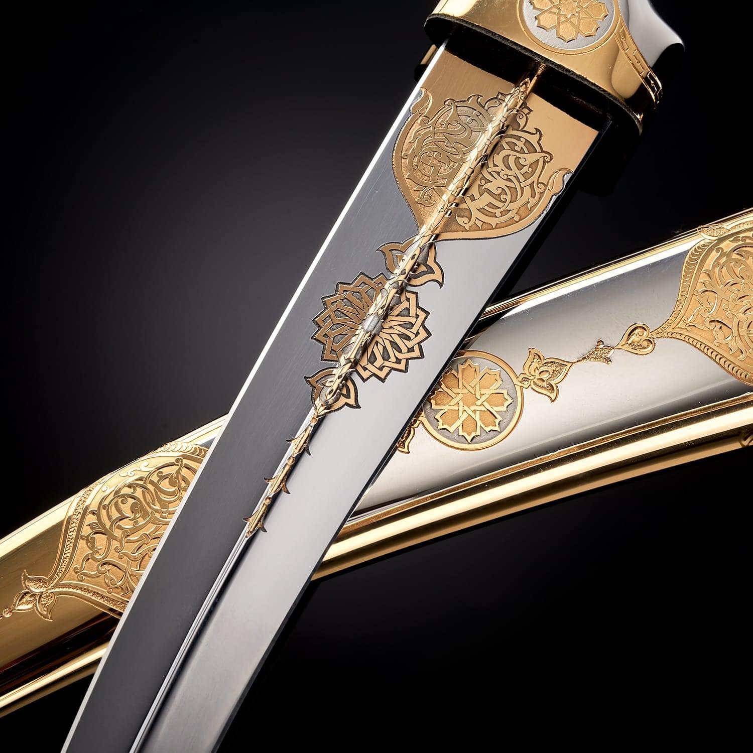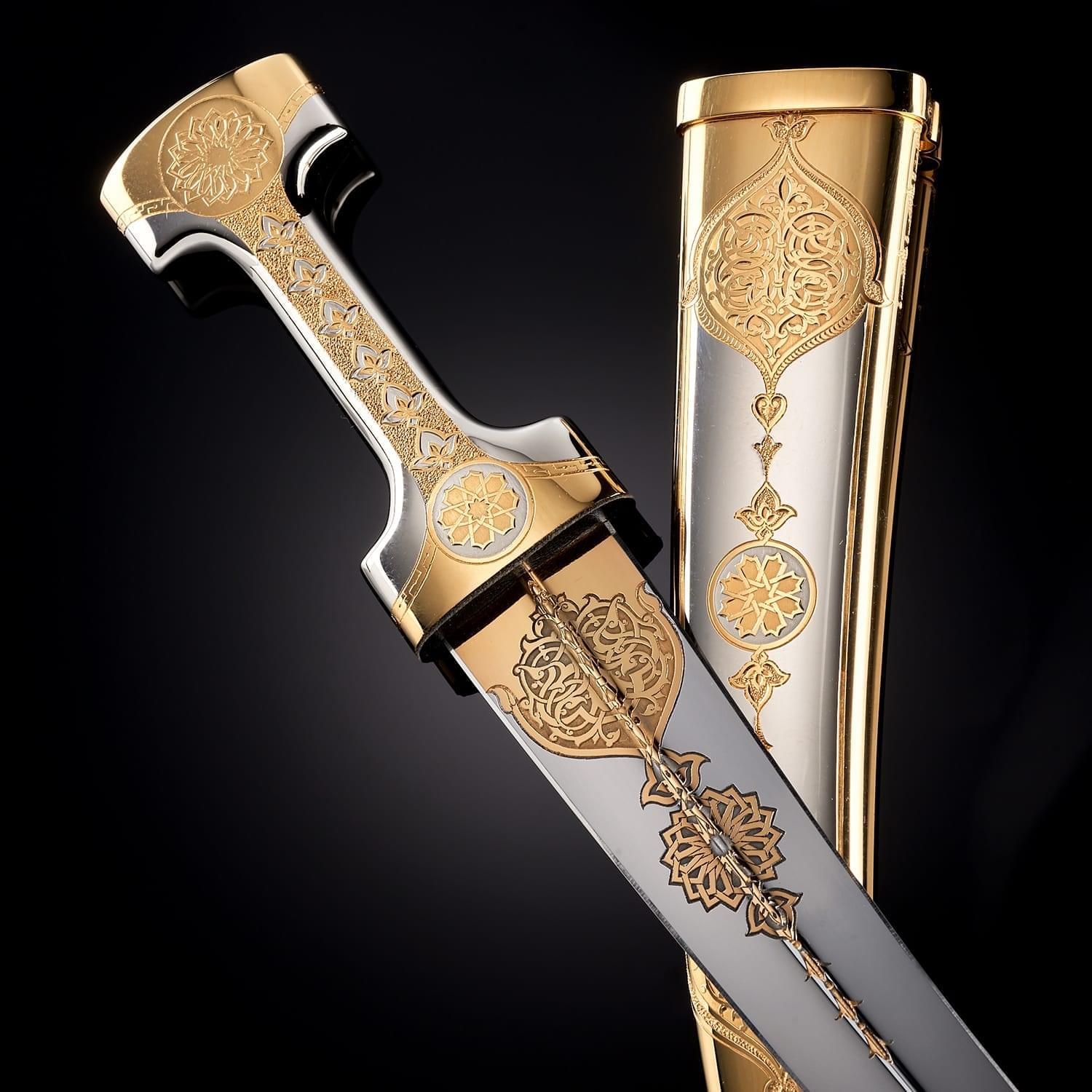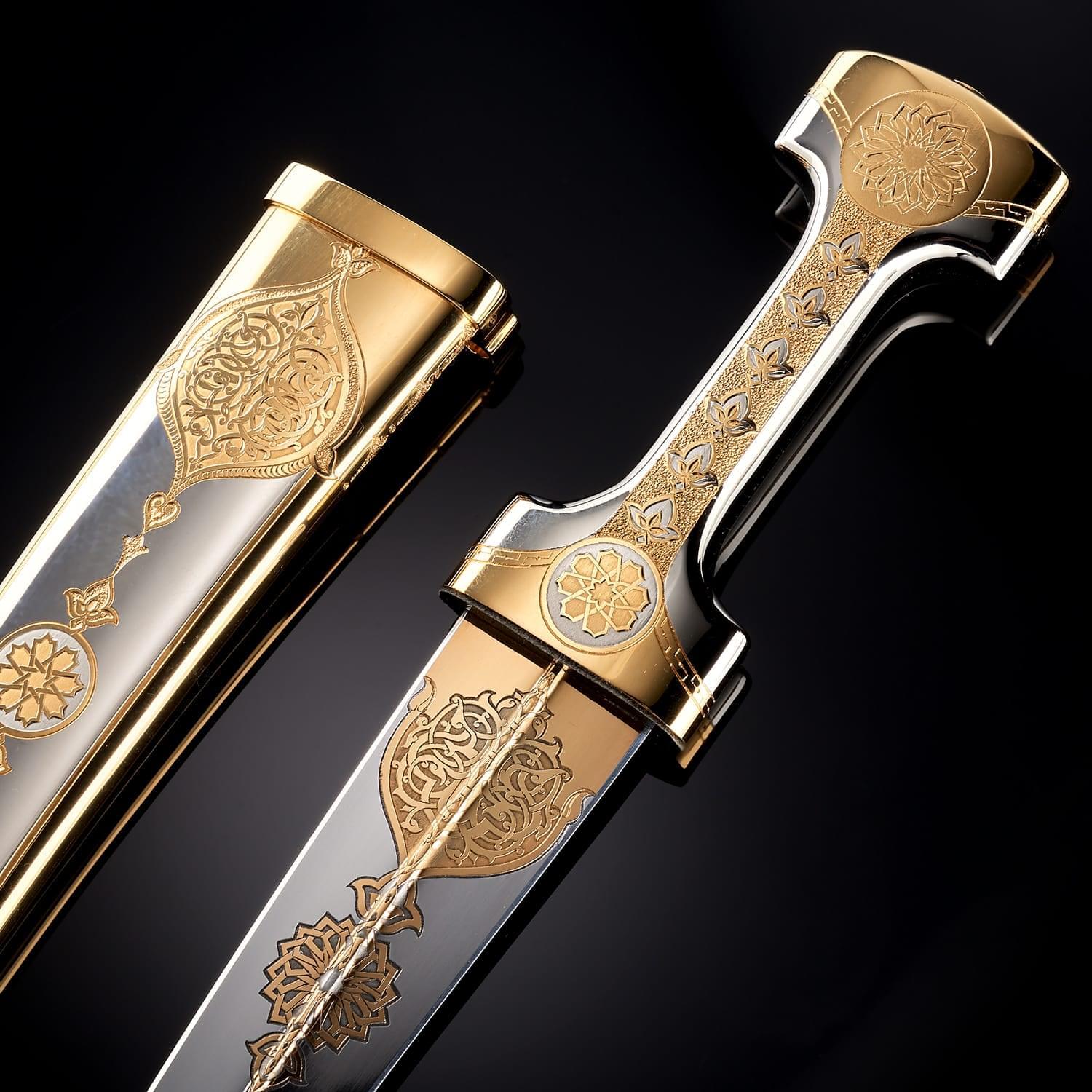 Кинжал Бебут относится к основной группе кавказских кинжалов. Он отличается слегка изогнутым клинком длиной около 50 сантиметров. На вооружение в русской армии кинжал Бебут был принят в начале 20 века – в 1907 году. При этом внедрение кинжала вызвало волну сопротивления со стороны военнослужащих. Основной довод против бебута заключался в том, что солдаты (кроме выходцев с Кавказа) не обучены обращением с этим видом оружия. Однако бебут все же был принят на вооружение и заменил шашку. Кстати, основное его предназначение и заключалось в замене шашки там, где ее использование невозможно ввиду стесненных условий. Знаменитый историк 13 века Рашид ад-Дин в своих работах рассказывает о нападении татаро-монгольских войск на Кавказ и вооруженном сопротивлении горцев. Горный ландшафт помогал защитникам родины: в промежутках меж гор они обезвреживали врагов «короткими мечами». Уже в 13 столетии острый и удобный кавказский кинжал был неизменным атрибутом кавказцев. В России 19 – начала 20 веков кинжалами вооружались сухопутные войска. С 1907 по 1917 год бебуты использовались жандармами нижних чинов, строевыми частями и крепостной жандармерией. До 1910 года клинки кинжалов заменяли шашки. Они же были оружием нижних чинов разведывательных войск пехоты, пулеметчиков и артиллерии. Казачьи подразделения армии использовали кавказские кинжалы кама в период с 1904 по 1910 год. Бебуты применялись военными после походов в Среднюю Азию и на территорию Ирана. На смену шашке пришел кавказский кинжал. Кинжал уложен в стильную подарочную упаковку из дерева и готов к дарению. Эксклюзивная работа мастеров Златоуста. Материал: легированная сталь 95х18, латунь, никель (10 мкм.), золото (5 мкм.). Размер: длина (общая) 34 см. длина клинка 26,7 см. ширина клинка 3,7 см. Техника исполнения: ковка, токарные работы, рисовка кистью, гравировка иглой по лаку, травление, гравировка резцом, полировка, никелирование, золочение. .