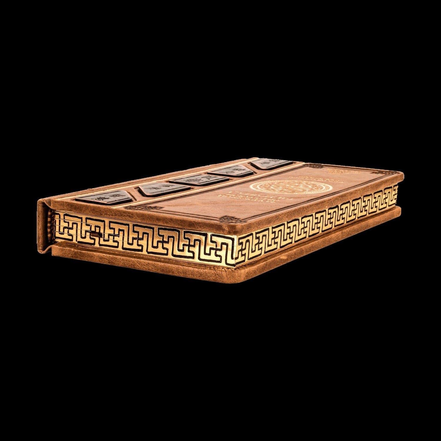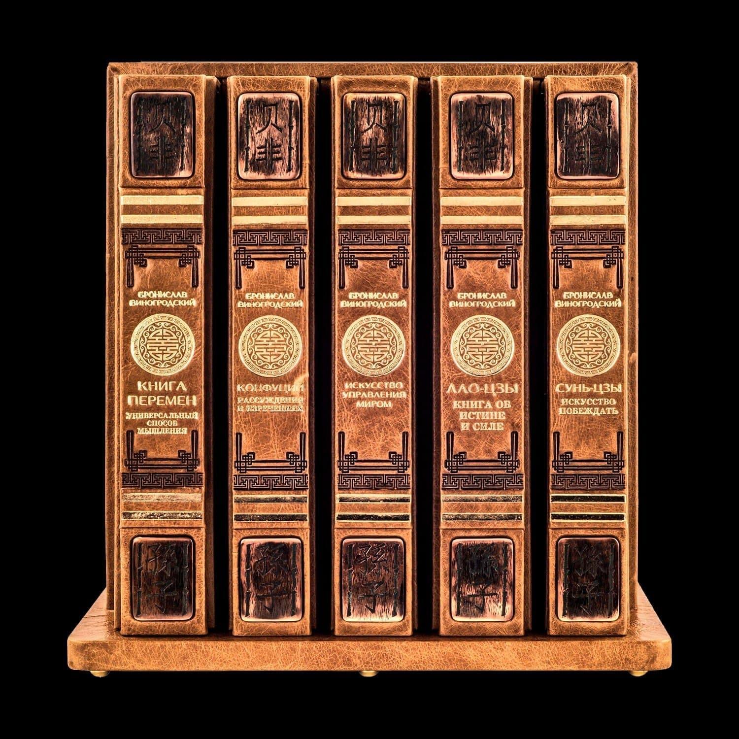 В собрании книг "Искусство управления миром" заключен тысячелетний опыт китайских мудрецов и правителей. Это собрание, в первую очередь, предназначено для людей, которые хотят управлять своим миром, поскольку никаким другим миром управлять невозможно. Чтобы управлять, нужно иметь представление о предмете управления. Но как создать правильное представление о собственном мире, если нет правильных представлений о самом себе? Согласно философии Лао-Цзы, человек, который управляет своими состояниями, своими действия – управляет и обстоятельствами. В этом и заключаются три основных аспекта человеческой личности, которые в даосизме сформулированы следующим образом: мастер творческих состояний, мастер осознанных действий и мастер управляемых совпадений. Об этой и других концепциях идет речь в книгах из собрания «Искусство управления миром». В собрание вошли: 1. Искусство управления миром 2. Конфуций «Рассуждения в изречениях» 3. Лао-Цзы «Книга об истине и силе» 4. Сунь-Цзы «Искусство побеждать» 5. Книга перемен – «Универсальный способ мышления» Оформление: Составной переплет «Брадель», ручной работы, выполнен из эксклюзивной кожи «Vetro marrone vernice» производства итальянской фабрики «Carisma». Обложки книг и подарочный пенал оформлены многоуровневым тиснением: глубоким блинтовым и рельефным золотым, а также медными элементами с чеканкой китайских иероглифов. Форзацы книг выполнены из холста с цветной печатью репродукций древних восточных полотен. Обрезы книг вручную позолочены и декорированы глубокой гравировкой. Все пять томов заключены в роскошный пенал, обшитый кожей, оформленный в едином стиле с книжными обложками. Характеристики: Персональный сертификат с индивидуальным текстом поздравления. Бархатный мешочек. Деревянный кейс. Формат комплекта – 270х280х185 мм. Формат книги – 158х247х45 мм. Общий вес комплекта – 6,9 кг. Вес книги – 1,1 кг. Готовая книга может отличаться от представленной на фото. Страниц в книге - 214 .