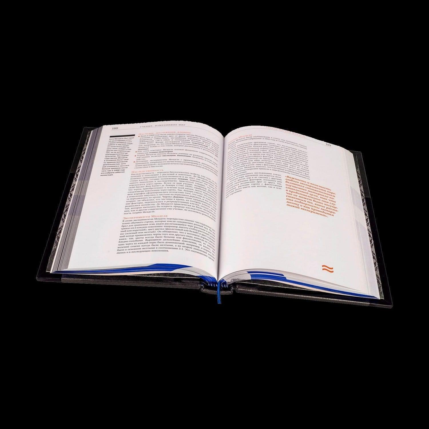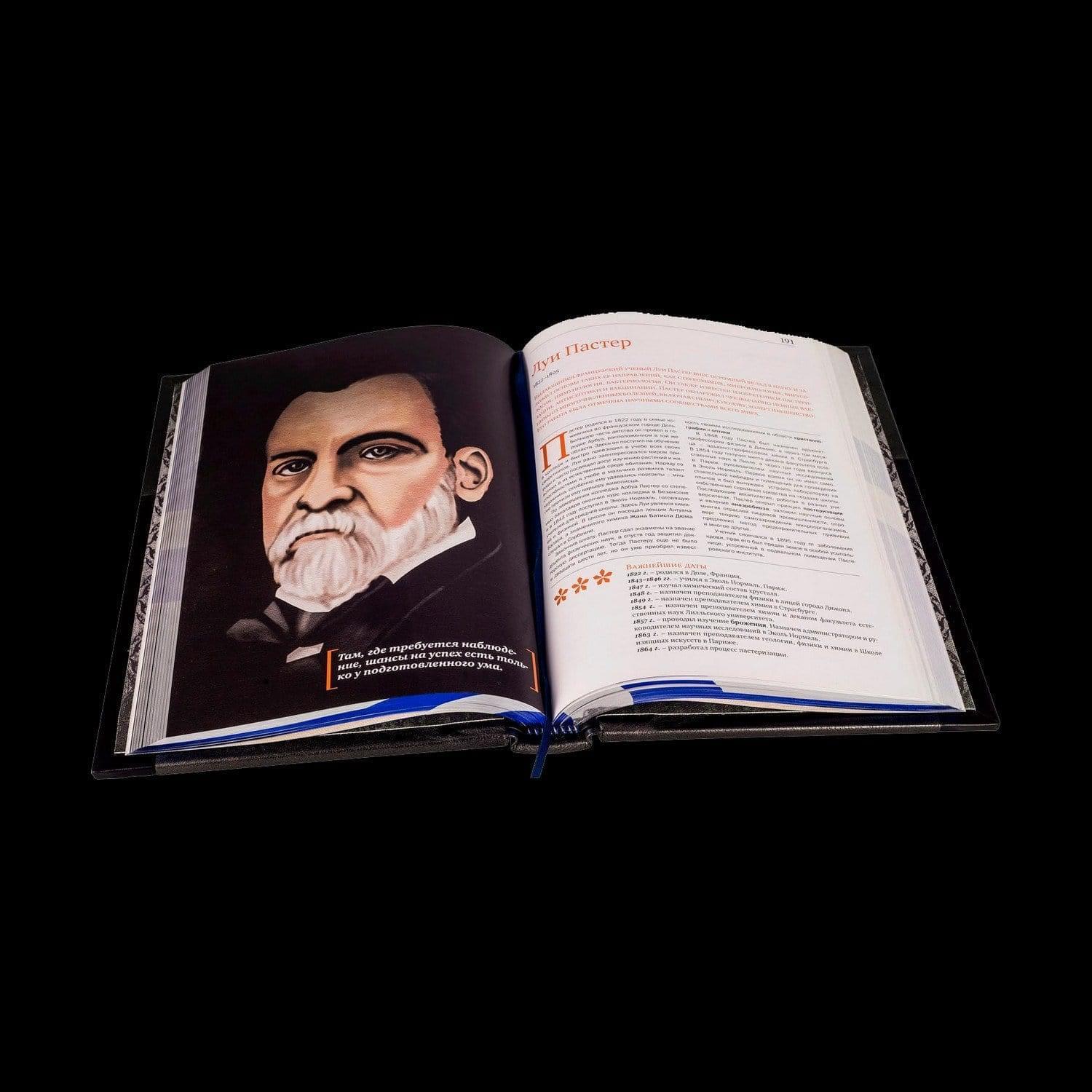 В сборник входят: Бизнесмены, изменившие мир . Мечтают все, бизнесмены делают мечты реальными. Энергия и видение этих людей навсегда изменили нашу жизнь. Они нашли идеи, опередившие время, и сделали их доступными к повседневному применению для миллионов людей. Многие из их имен дали названия корпорациям, без продукции которых невозможно представить себе нашу жизнь. Бенц, Боинг, Шанель, Форд, Пфайзер, Колгейт, Проктер, Гудьир, Липтон, Отис, Нобель, а также Джобс, Брин, Цукерберг, Касперский, Бэзос и многие другие. В данном издании увлекательно изложены истории жизни и успеха этих знаменитых людей, которые могут служить вдохновляющим примером для всех, кто уже занимается бизнесом, и для тех, кто еще только готовится к великим свершениям. Ученые, изменившие мир. Оценить достижения человечества с древнейших времен до XX века, от Гиппократа до Эйнштейна, - идея смелая, немного безумная, однако коллектив авторов сумел ее реализовать. Издание представляет собой сборник биографий, выдающихся ученых, чьи открытия изменили ход истории. Книга позволит проследить развитие науки, в издании собраны интересные, а порой даже редкие факты из жизни ученых, а также из истории открытий и изобретений. Герои книги - гении науки - разгадали многие тайны природы, возможно, их опыт, о котором повествует эта книга, вдохновит и вас на великие открытия. Люди, изменившие мир. Эта книга о людях, которые изменили представления о мире. Благодаря их таланту, находчивости и решимости были попраны устаревшие стандарты и раскрыты новые горизонты. Своим примером они обещают успех всем мечтателям мира, награду славой за упорный труд и годы лишений. В издании представлены выдающиеся личности из разных сфер деятельности: мода, техника, живопись, музыка, кино, театр - от Коко Шанель до Стива Джобса. Каждая глава содержит основные факты биографии, историю успеха и важнейшие вехи творчества великих предпринимателей и деятелей искусства. Женщины, изменившие мир. Испокон веку считалось, что изменять и перестраивать мир - удел мужчин, что лишь "сильному полу" по плечу роль лидеров и преобразователей. И все-таки женщины никогда не оставались вне Истории. Своим, особым образом они влияли на судьбы мира. А уж XX столетие стало поистине "веком женщин"! Коко Шанель и Жаклин Кеннеди, принцесса Диана и Эвита Перрон, Мэрилин Монро и Одри Хепберн, Марлей Дитрих и Грета Гарбо, Эдит Пиаф и Мария Каллас, Гала Дали и Фрида Кало, Айседора Дункан и Анна Павлова - все они не просто изменили мир, но сделали его стильным, эффектным, харизматичным, наконец, просто интересным! Чем ответил мир этим блестящим женщинам, чем отблагодарили их современники? О судьбах великих женщин, об их страстях, трагедиях и триумфах рассказывает новая книга знаменитого телеведущего. Оформление: Составной переплет «Брадель» ручной работы. Комбинация натуральных кож «Nero Zegna», «Granito Blu» и «Acciaio». Обложки книг инкрустированы камнями циркон бриллиантовой огранки, декорированы объемными узорами ручной продавки и рельефным серебряным тиснением. Обрезы книг выполнены в авторской технике комбинированного серебрения с использованием цветной фольги. Футляр устлан французским коттон- бархатом. Характеристики: Сертификат. Бархатный чехол. Общее количество страниц – 1 548 (мелованная бумага, высшее качество печати) . Формат книги – 255х280