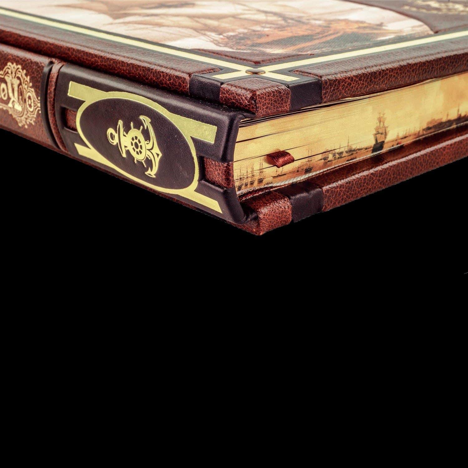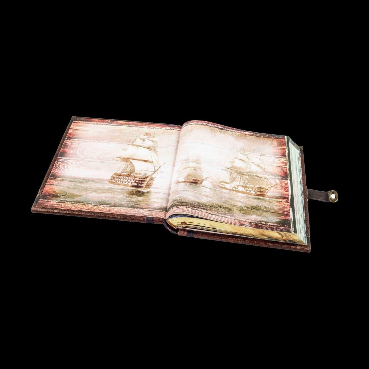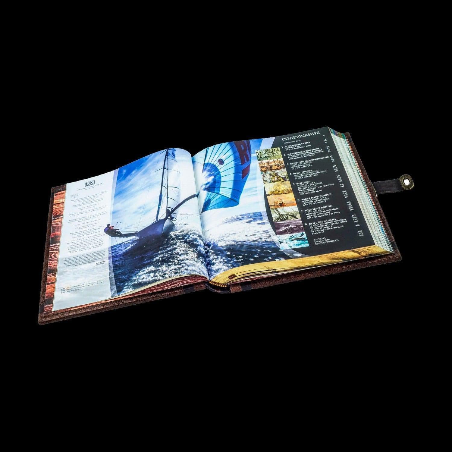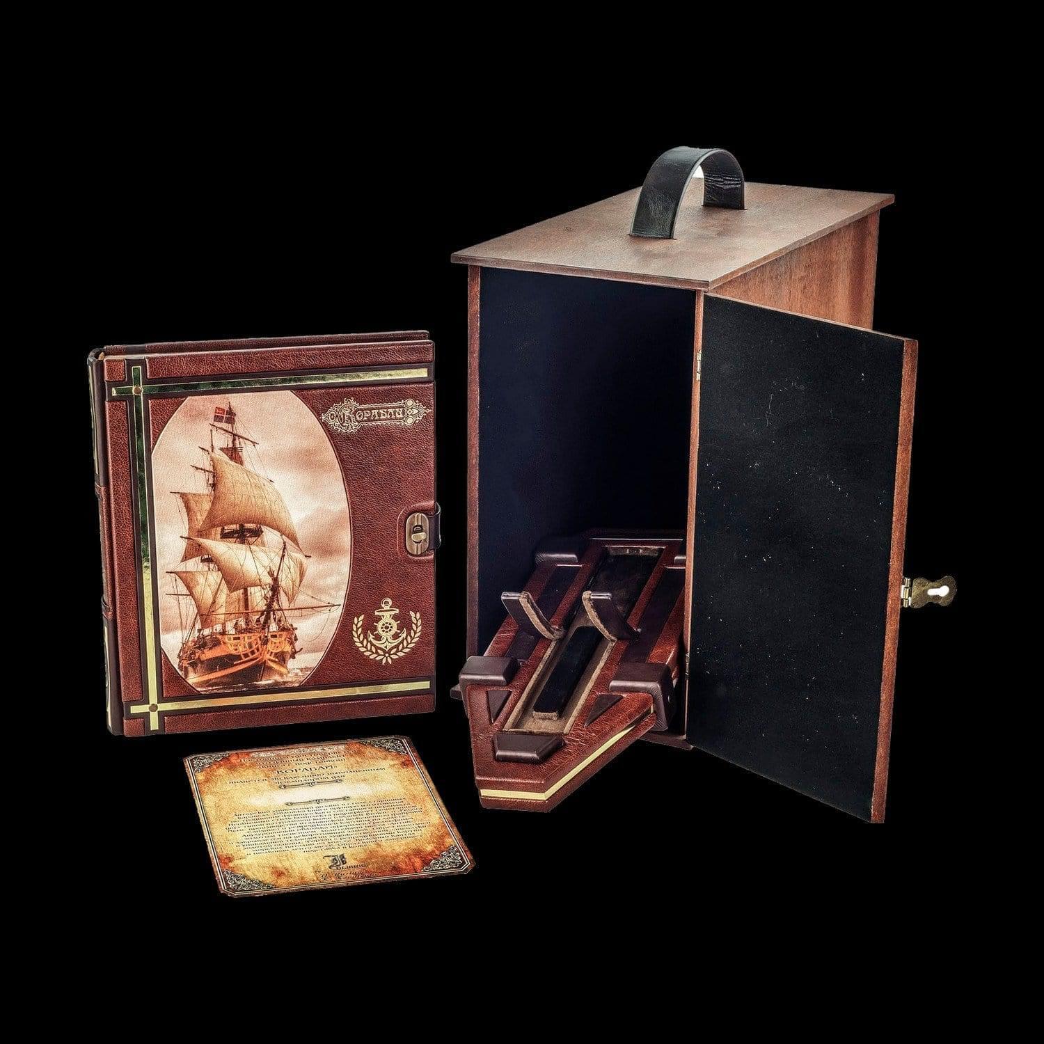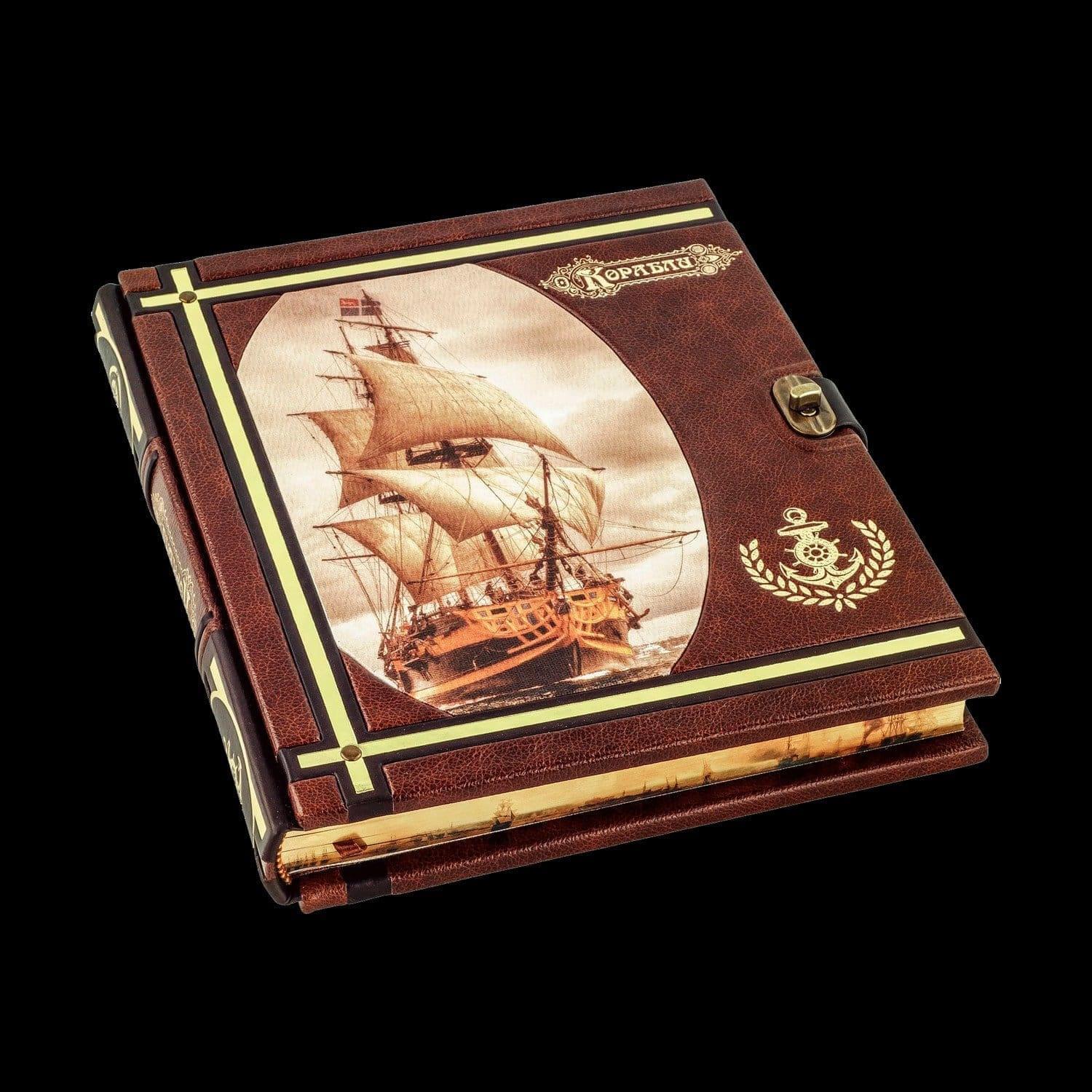 Подарочная книга на подставке "Корабли". Кожаный переплёт