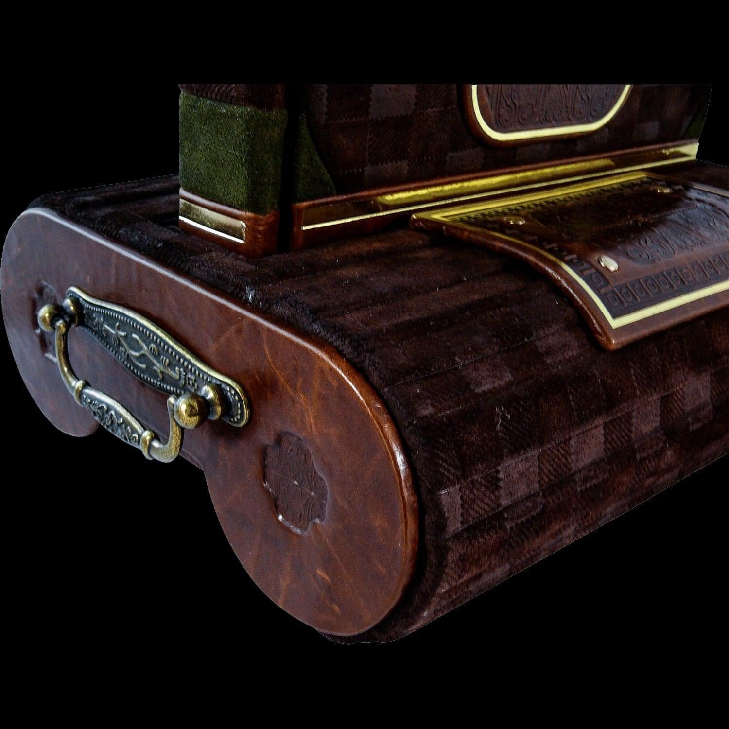 Виски - это крепкий спиртной напиток из пшеничных и ячменных зерен, выдержанный в дубовых бочках. Родиной его является Ирландия. Но так ли всё на самом деле? В книге «Виски. Атлас мира» собрана исчерпывающая информация об истории самого популярного в Европе спиртного напитка, о технологиях приготовления и особенностях производственного процесса, о компаниях, выпускающих виски. Информация эта подкреплена яркими иллюстрациями и географическими картами стран и регионов, где традиционно производят виски. Есть в книге и сведения, которые в повседневной жизни пригодятся ценителям крепких и благородных спиртных напитков. Это профессиональные дегустационные заметки по 350 образцам виски (включая бурбоны и ржаные виды), в которых напитки разных сортов, от разных производителей разбираются автором по трем основным категориям: аромат, вкус, послевкусие. Заметки помогут любителям виски сориентироваться во множестве видов и купажей, выбрав для себя подходящие. Оформление: Составной переплет «Брадель» ручной работы, выполнен из комбинации натуральных кож «Robat Maronne», «Gabbia camoscio» и «Troppopieno luminoso» производства итальянской кожевенной фабрики «Benericetti». Обложка книги двухуровневая, декорирована комбинацией глубокого блинтового и рельефного золотого тиснения (использована фольга «Luxor 240»), оформлена позолоченными ножками (4 штуки) и латунными хольнитенами. Обрез блока вручную полирован, окрашен и позолочен сусальным червонным золотом. Подставка авторской конструкции «Бочка» декорирована под стиль книги и внутри устлана итальянским коттон-бархатом. Характеристики: Персональный сертификат с индивидуальным текстом поздравления. Бархатный мешочек. Деревянный кейс. Количество страниц – 336 стр. (мелованная бумага, цветная печать, иллюстрации). . Вес книги – 1,6 кг. Размеры книги – 240x297x45 мм. Вес комплекта – 3,8 кг. Размеры комплекта – 325х360х250 мм. Готовая книга может отличаться от представленной на фото. .