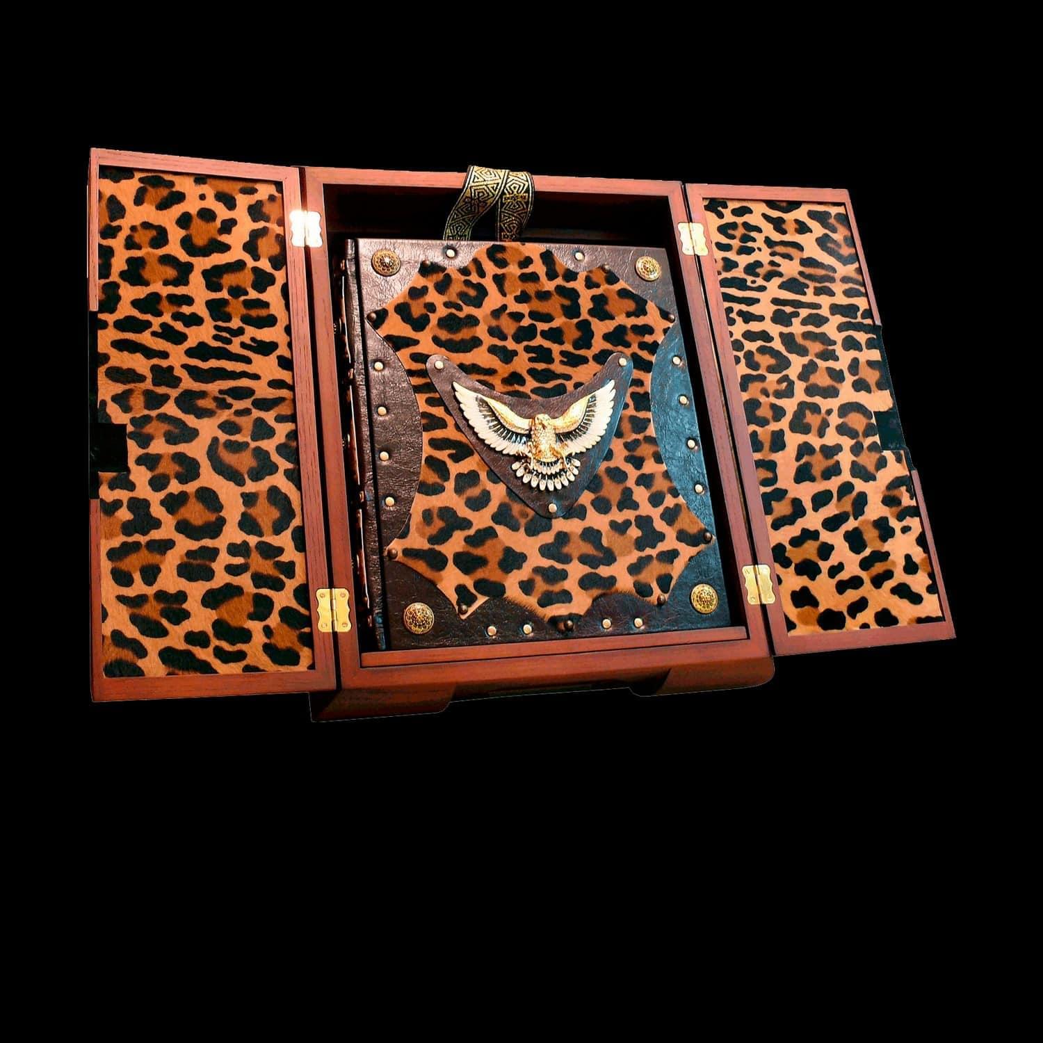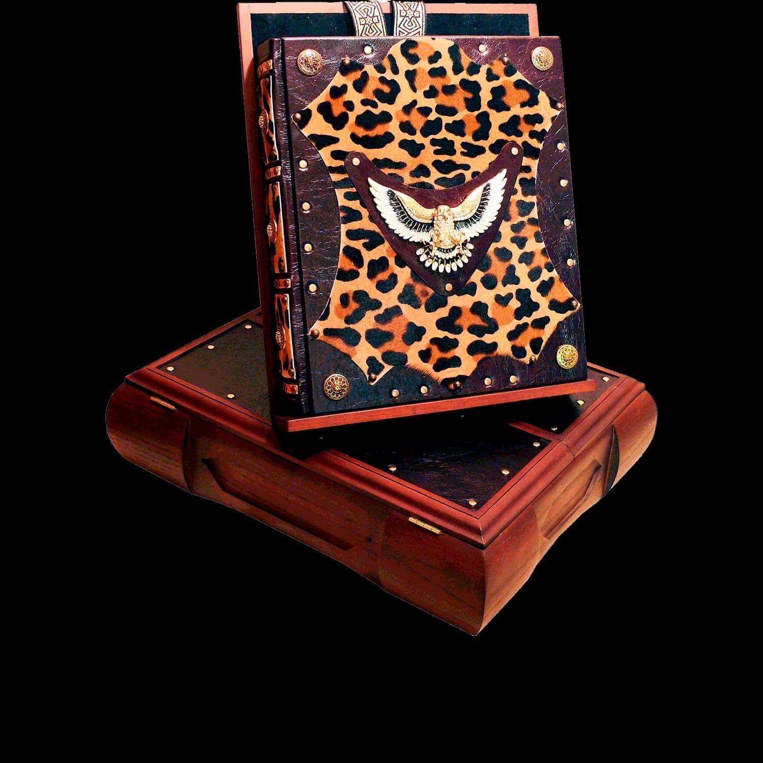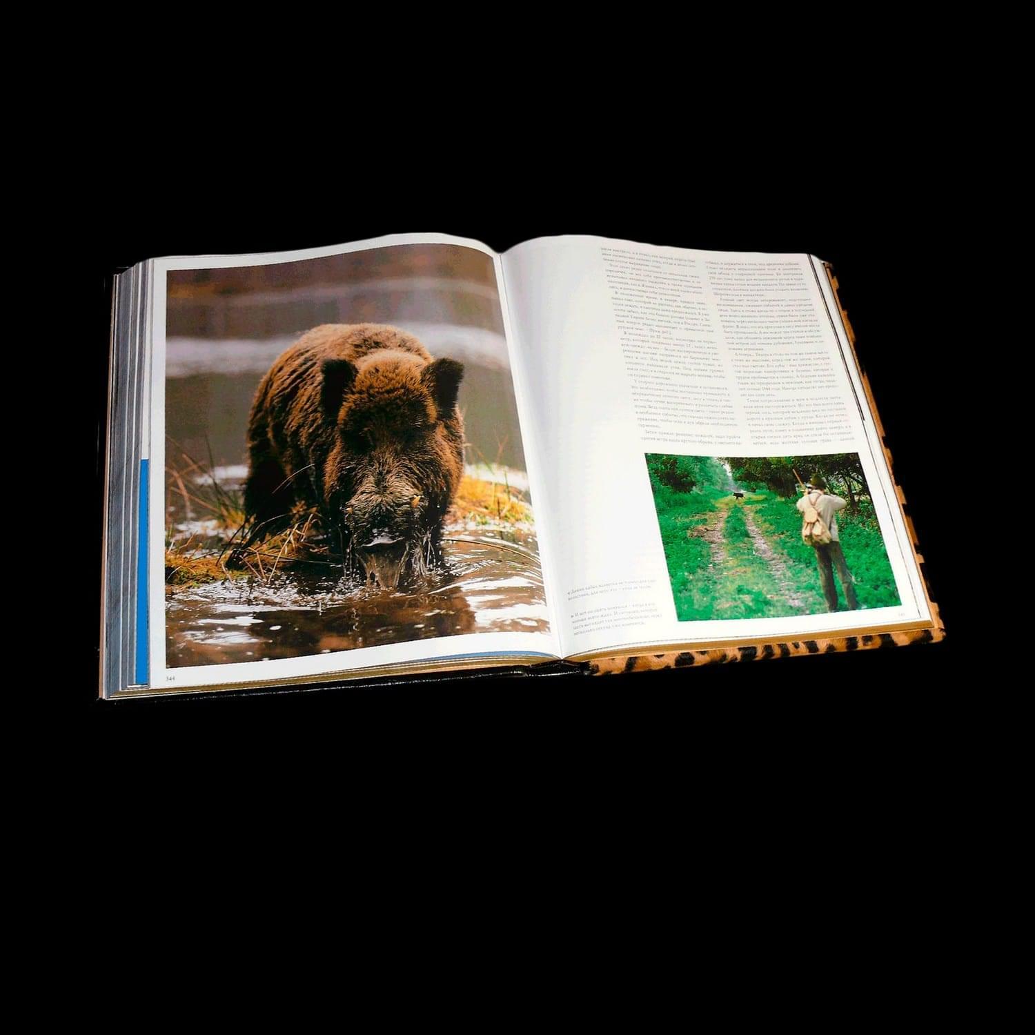 В книге более 1200 иллюстраций, наглядно представляющих охоту. Культурно-историческая часть описывает особенности охоты в разных культурах на протяжении 30 тысячелетий. Читатель узнает об охоте в Средние века, побывает на соколиной охоте во времена Фридриха II, познакомится с роскошью охоты в Новое время. Известные художники изображали на своих полотнах сцены охоты. Они также представлены в этой книге. Вторая часть книги посвящена красоте дикой природы. В ней описаны особенности охоты в наши дни, современные способы выслеживания и травли волков, лис, зайцев и других животных. Вы узнаете о брачных сезонах волков и лис и токе тетеревов. Также издание содержит сведения научного и культурно-исторического характера в виде иллюстраций и карт. Описываются породы охотничьих собак и их особенности. Кулинарный раздел посвящен блюдам охотничьей кухни и способам их приготовления. Составной переплет «Брадель», ручной работы, выполнен из комбинации натуральной кожи «Plonge Braun» и шкуры пони «Luce leopardo» производства итальянской кожевенной фабрики «Claudio». Обложка книги оформлена латунными и медными холитенами, общее количество 47 штук, фурнитурой «Ferre», количество 7 штук, художественным литьем «Орел», инкрустацией камнями циркон. Обрез блока вручную полирован и позолочен. Подарочный футляр-подставка, выполненный из натурального дуба и кожи. Уникальная конструкция позволяет трансформировать его в подставку для более выгодного ракурса книги. Сертификат. Бархатный чехол. Количество страниц – 654 (мелованная бумага) Формат – 27х32 см. Вес книги – 3,8 кг. Вес с футляром – 5,5 кг. Напечатано в Германии. .