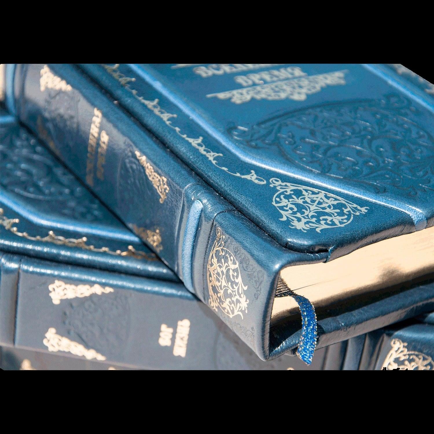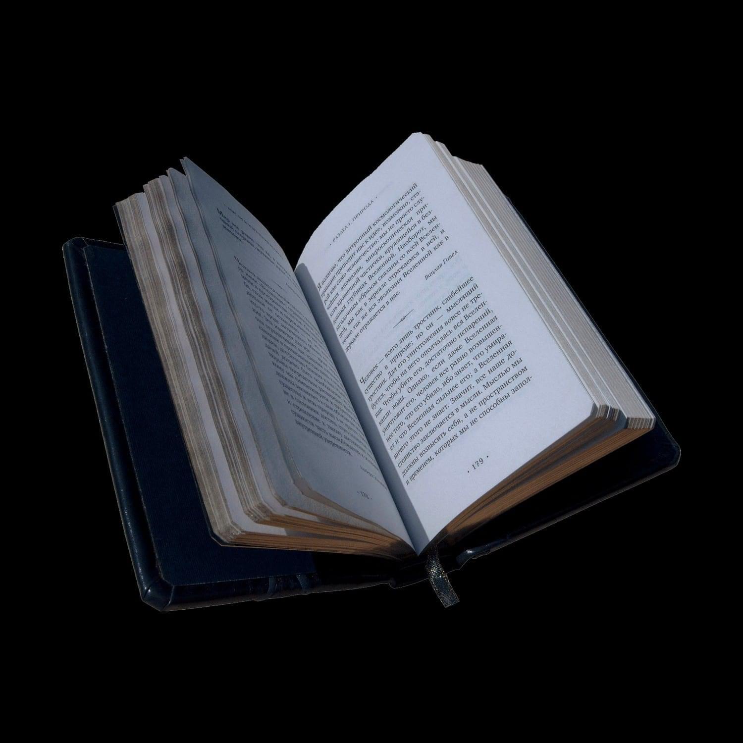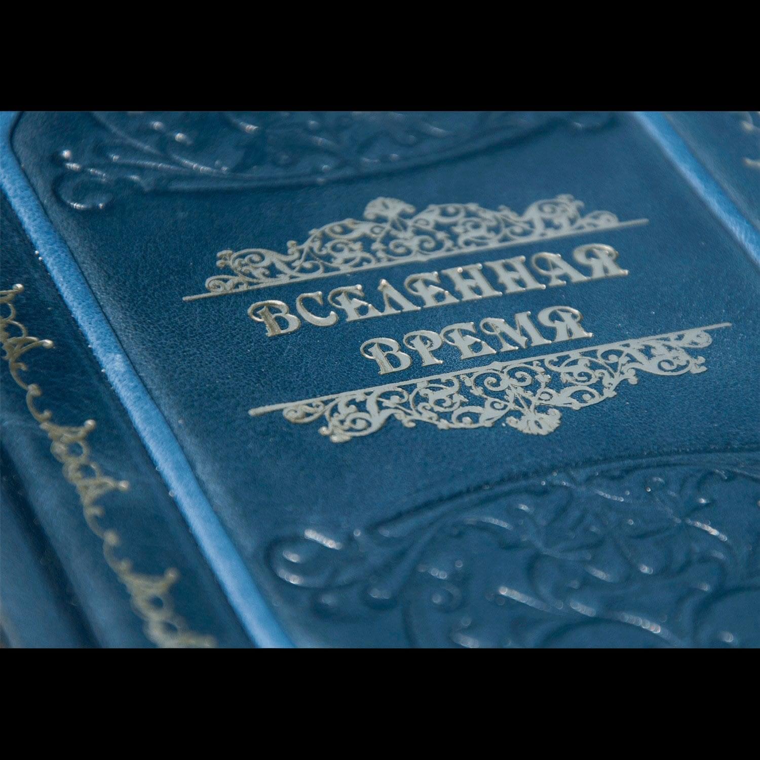 В этом комплекте собрана лучшая подборка афоризмов и изречений на такие актуальные темы как: Бог, жизнь, вселенная, время, человек и судьба. Удобный формат и подарочное оформление делает этот экземпляр актуальным и статусным подарком любому человеку, вне зависимости от его увлечений и работы. Французский составной переплет ручной работы выполнен из комбинации натуральных кож (кожа «RobbatBlu», кожа «Cielo» производства итальянской кожевенной фабрики «Benericetti»). Обложка книги и футляр- ложемент оформлены многоуровневым тиснением: глубоким блинтовым и рельефным золотым, с использованием фольги «Luxor 240». Внутреннее убранство футляра устлано натуральным бархатом «Morbidezza». Обрез книги вручную полирован и позолочен (цвет «Bronze»). Идея дизайна Классический стиль, в котором дорогая структура кожи сочетается с блеском матового золота, необычная форма обложки со скошенными углами, а также кожаные вставки второго типа кожи, дополняют общую гармонию внешнего вида. Сертификат. Бархатный чехол. Формат одной книги – 135х200х42 мм. Формат комплекта (3 книги в футляре) – 180х207х125 мм. Вес комплекта – 3.0 кг. Общее количество страниц – 1 602 (офсетная бумага) .