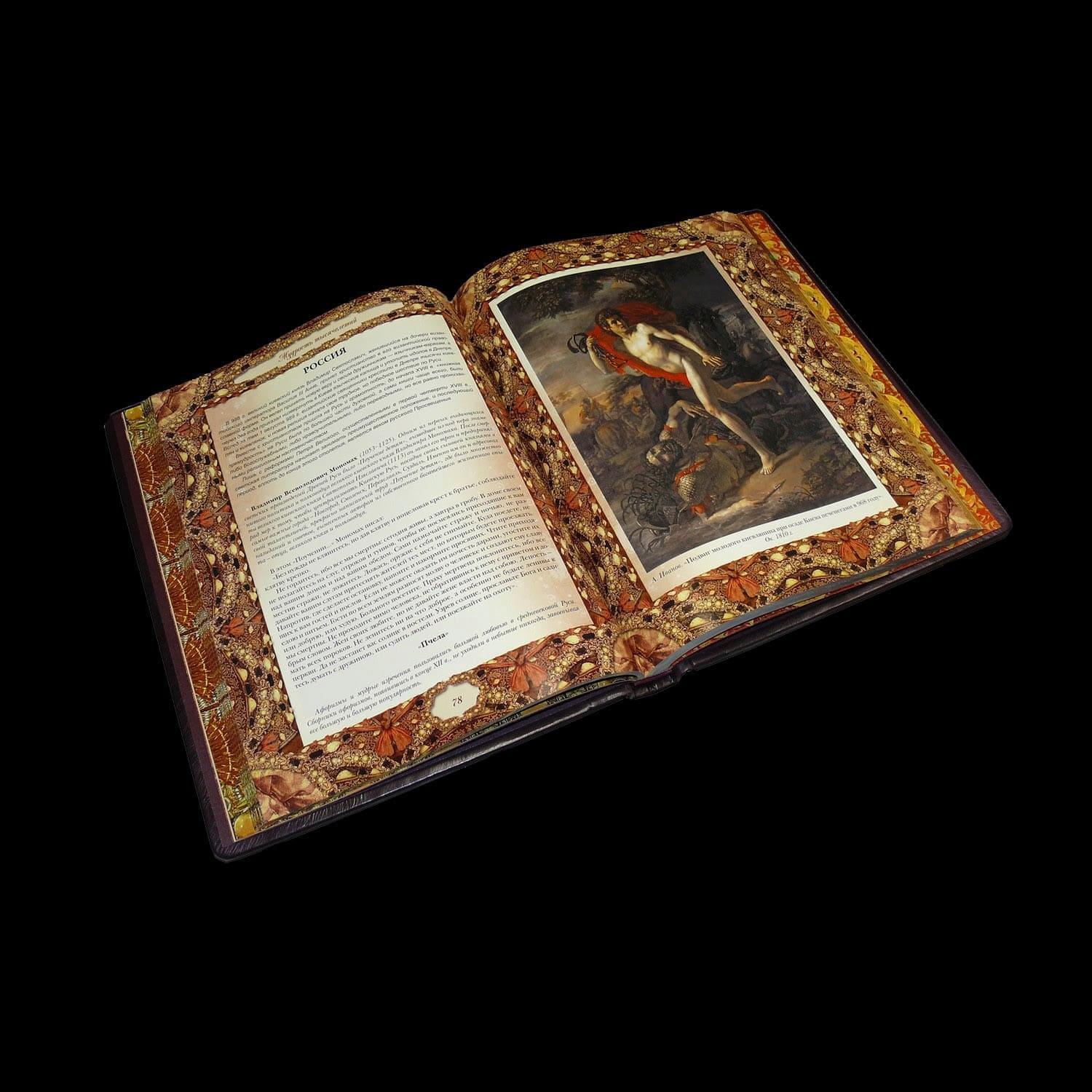 В этой книге, которая по праву является энциклопедией, собраны наиболее значительные афоризмы и максимы, вошедшие в сокровищницу человеческой мудрости. Хронологический охват энциклопедии - от зарождения письменности до конца XX века. Ее ареал - все континенты Земли, ее герои - выдающиеся писатели, философы, историки. Каждому автору, включенному в издание, посвящен краткий биографический очерк. Составной переплет «Брадель», ручной работы, изготовлен из комбинации натуральных кож (кожа телячья «Nero», кожа телячья «Rossa» производства итальянской кожевенной фабрики «Carisma»). Обложка книги оформлена объемными узорами ручного затягивания в кожу, с инкрустацией камнями циркон (цвет гранат) брильянтовой огранки высшего сорта (производство компании «Signity»), диаметром 5 мм (количество 48 шт.). Латунными холитенами «Антик», количеством 18 шт. Обрез блока вручную полирован и позолочен. Сертификат. В комплекте бархатный чехол на молнии. Формат – 205х290 мм. Количество страниц – 304 (мелованная бумага) Вес – 1,35 кг. .