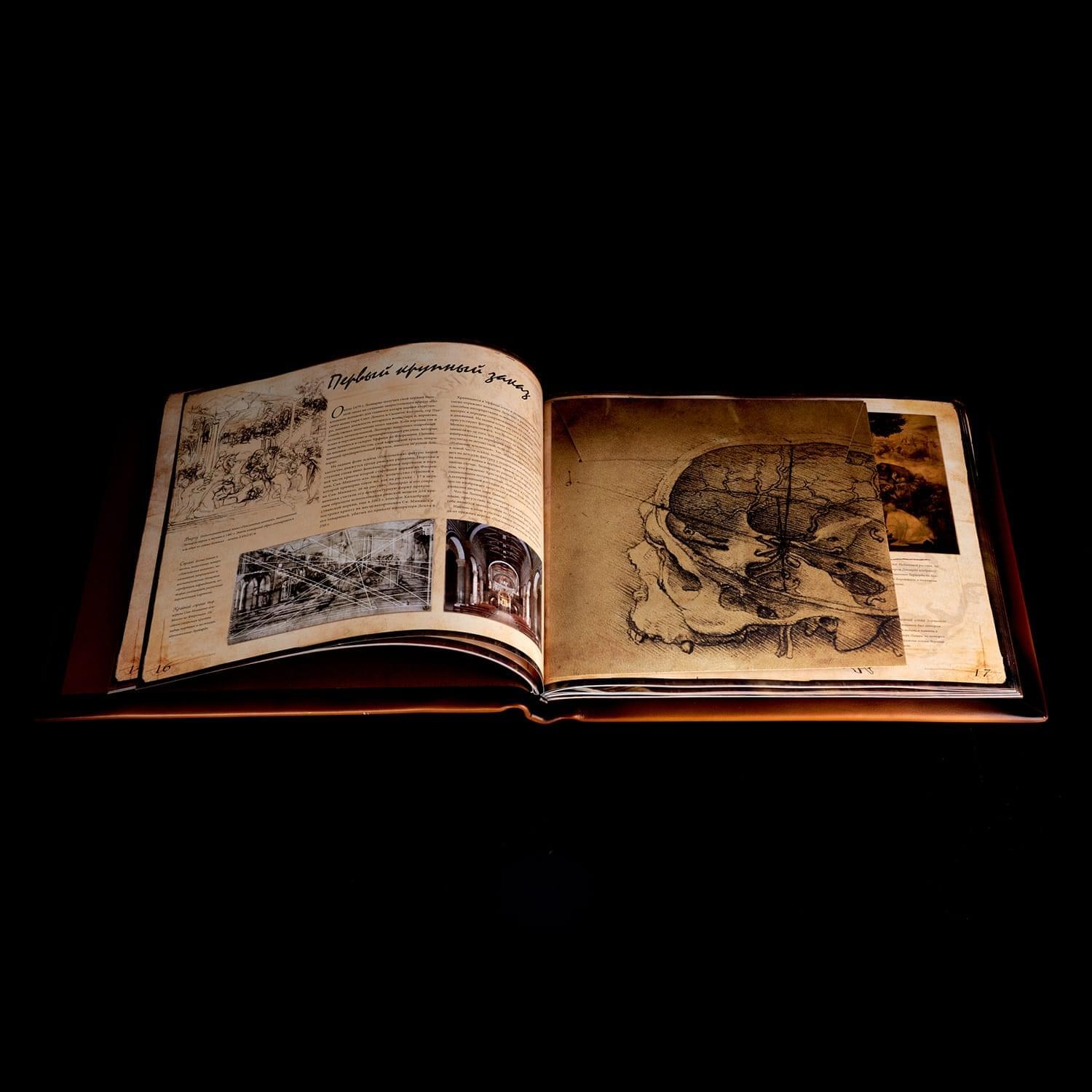Подарочная книга "Сокровища Леонардо Да Винчи" в кожаном переплёте