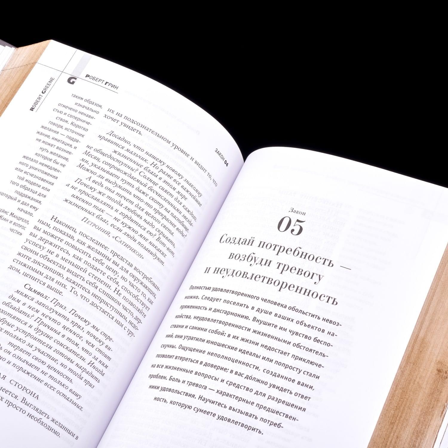 В издании изложены 24 закона обольщения, приведены примеры из жизни популярных людей, чтобы продемонстрировать показать наглядно доступность метода Грина.
