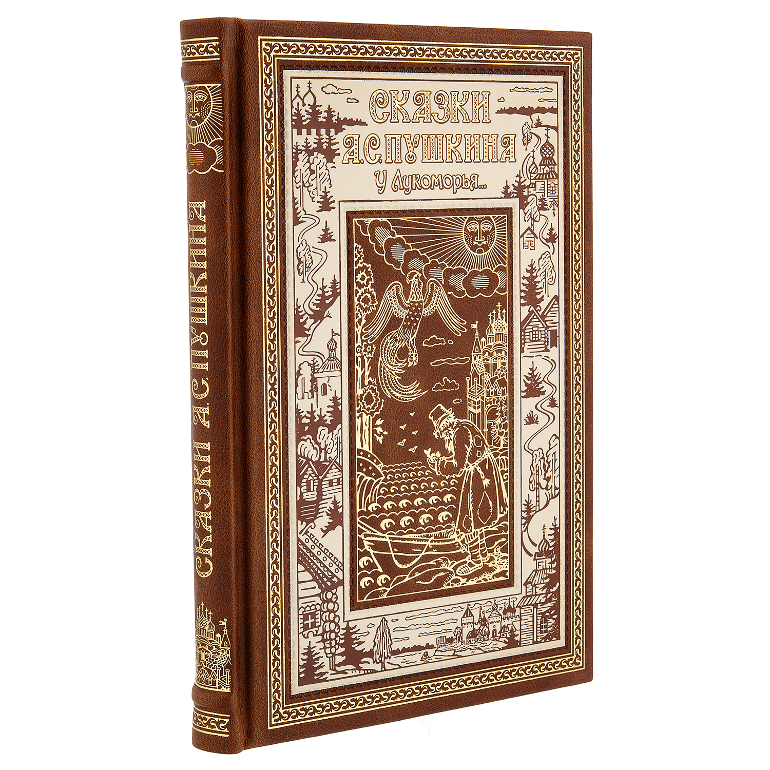 Книга подарочная "У Лукоморья... Сказки А.С. Пушкина" в кожаном переплете.