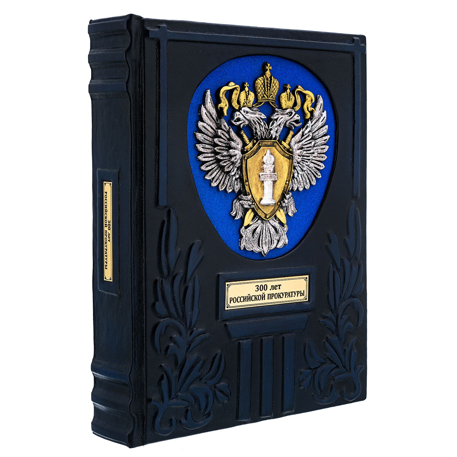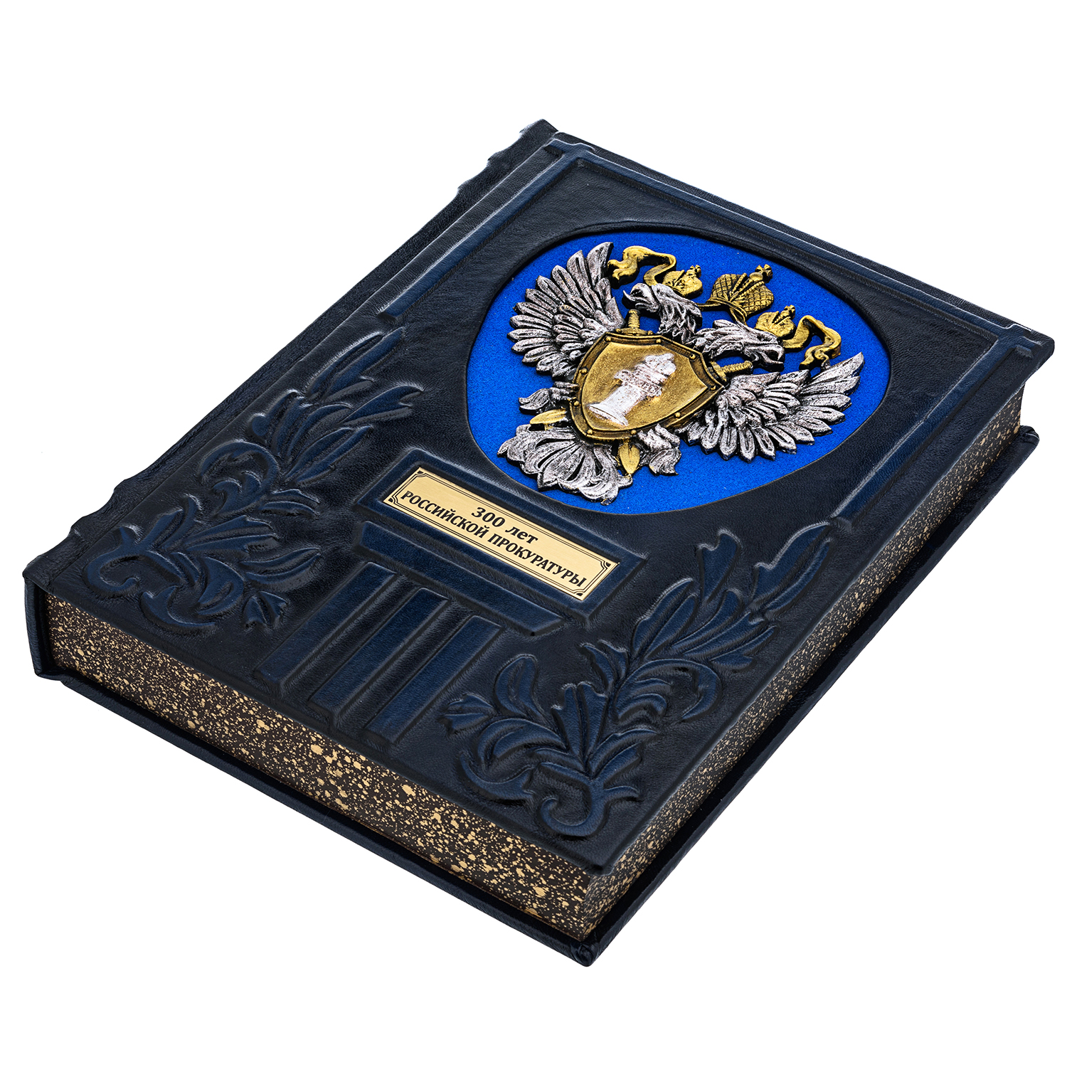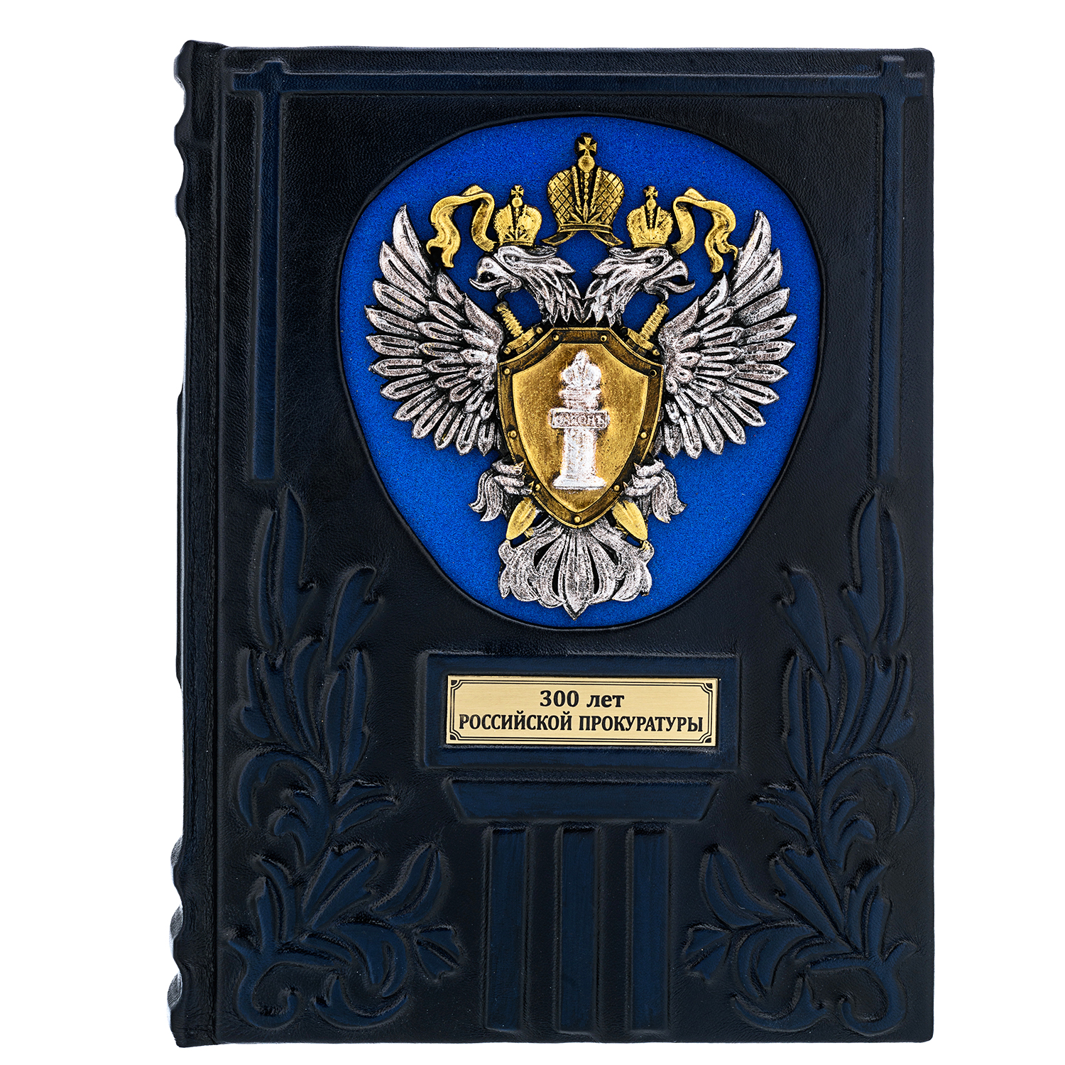 Подарочная книга "300 лет Российской Прокуратуры" в кожаном переплете ручной работы с металлической накладкой.