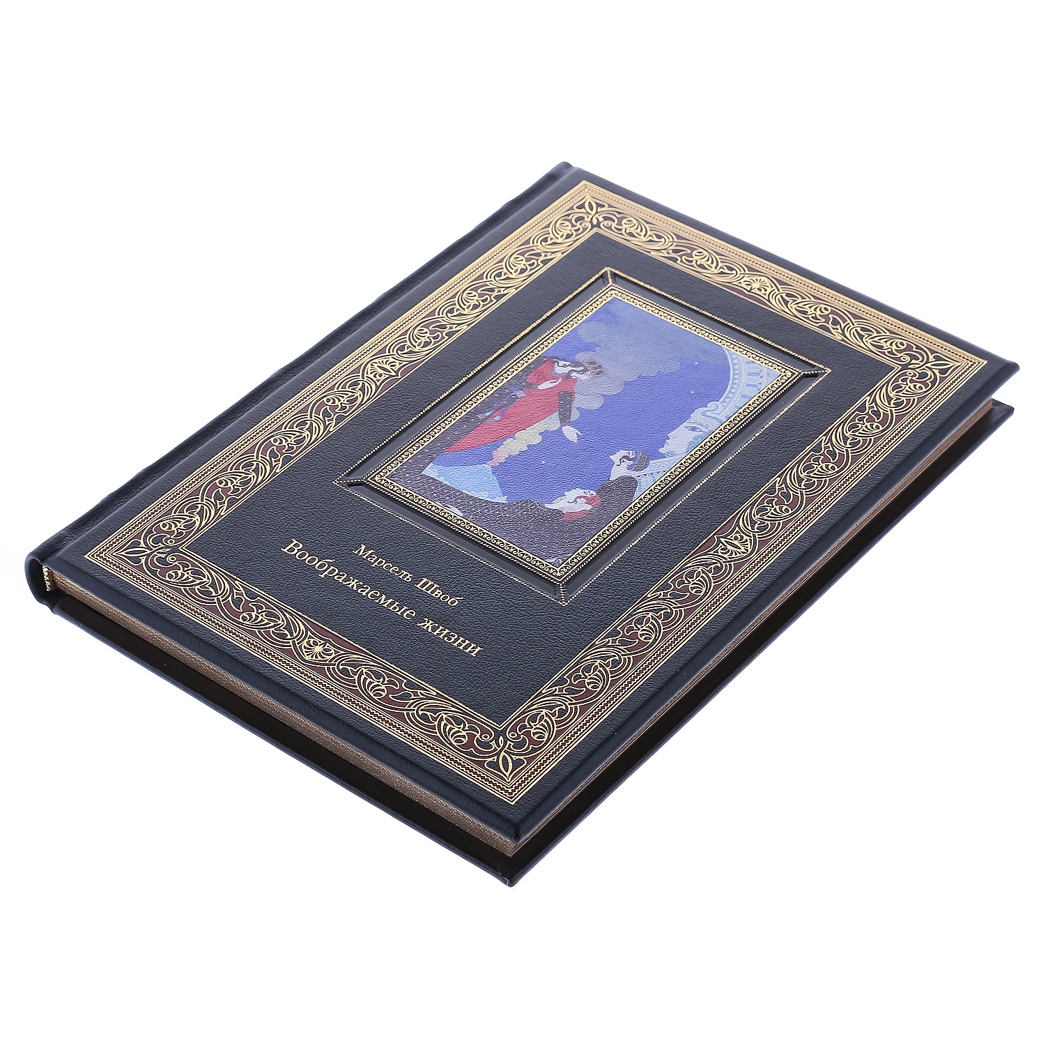 Подарочная книга "Марсель Швоб. Воображаемые жизни" в кожаном переплете ручной работы.