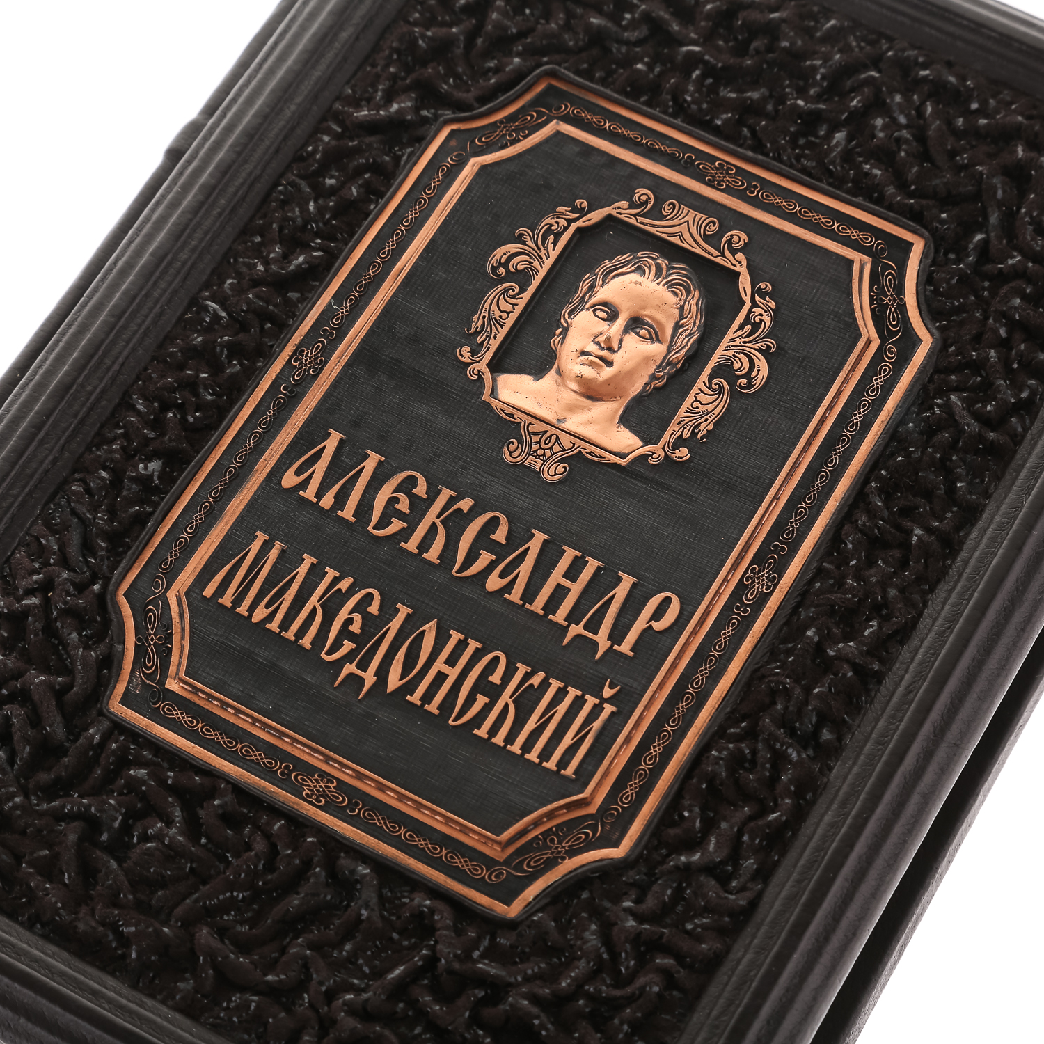Подарочная книга "А.Македонский. О судьбе и доблести" в кожаном переплете ручной работы.