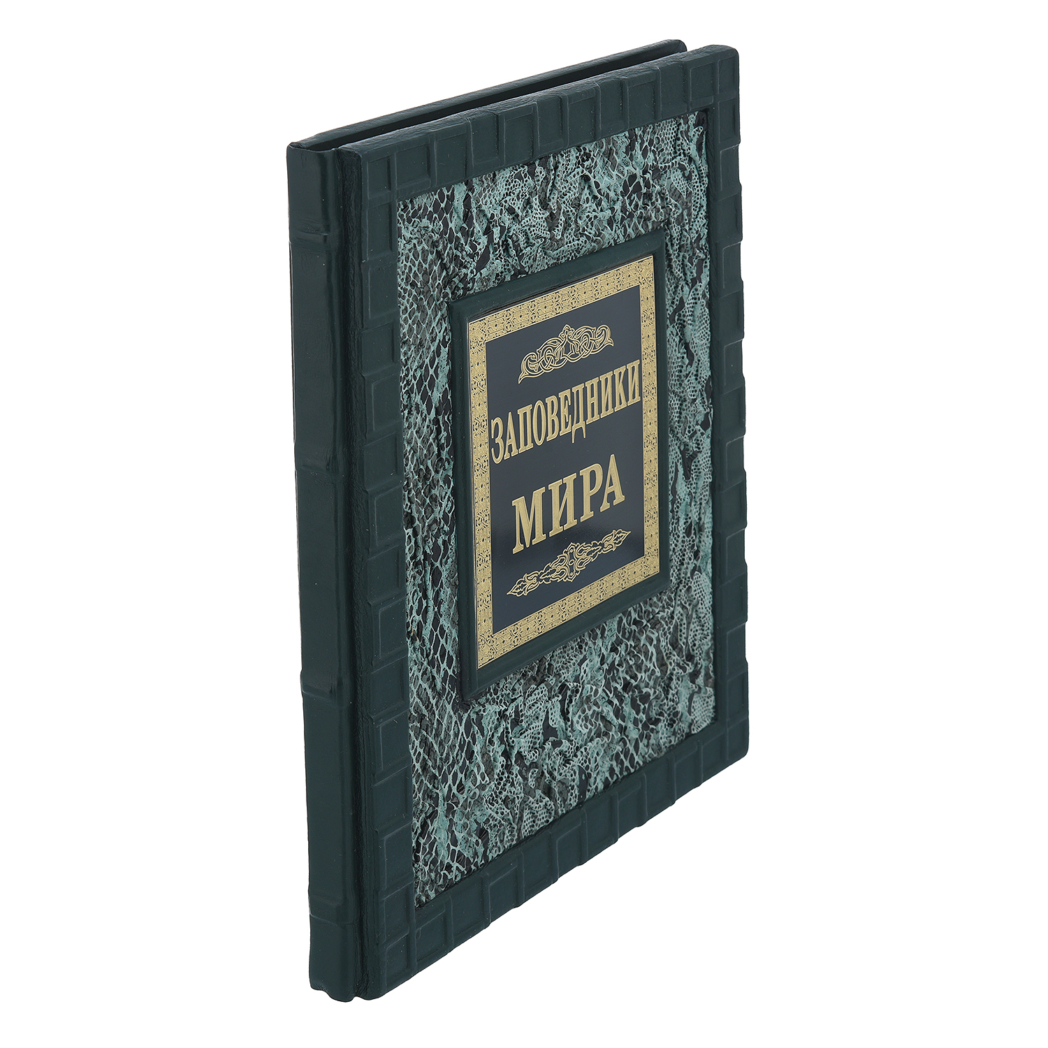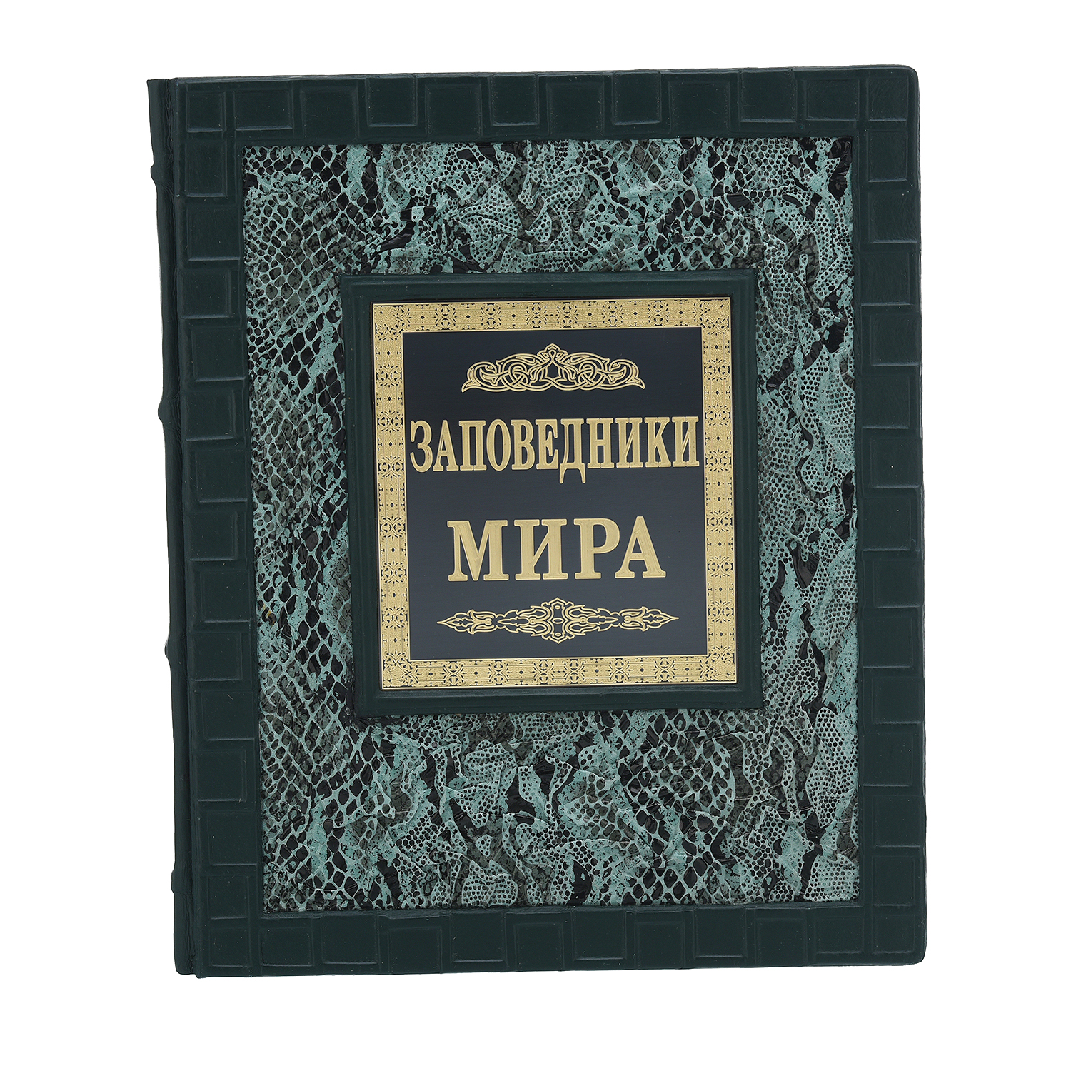 Подарочная книга "Заповедники мира" в кожаном переплете ручной работы.