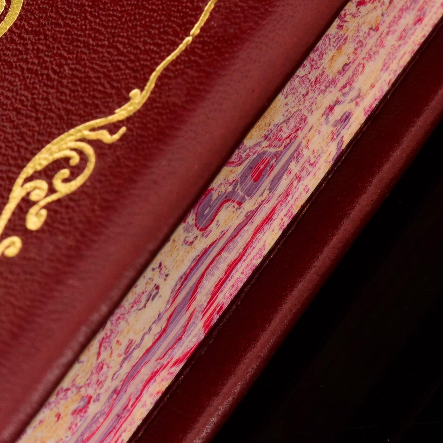 Переплет книги изготовлен из натуральной кожи с тиснением.