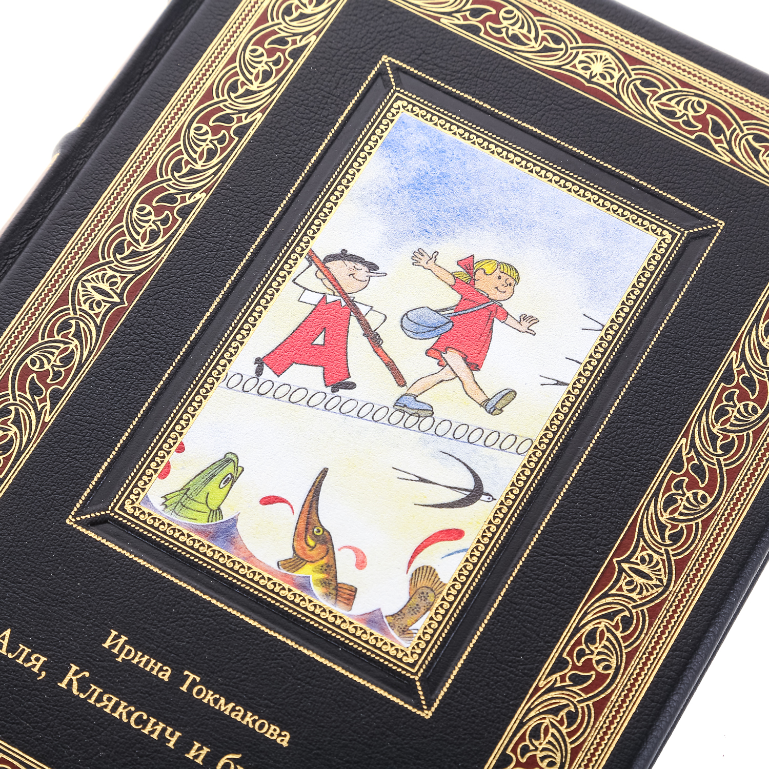 Подарочная книга "Ирина Токмакова. Аля, Кляксич и буква А" в кожаном переплете ручной работы.