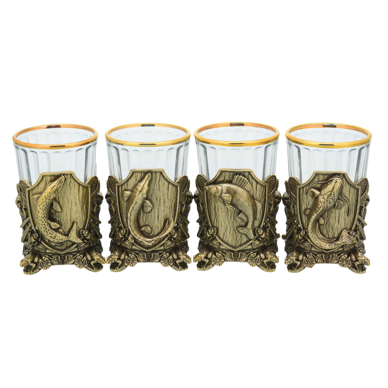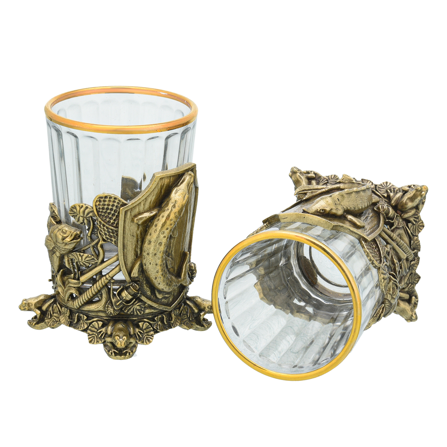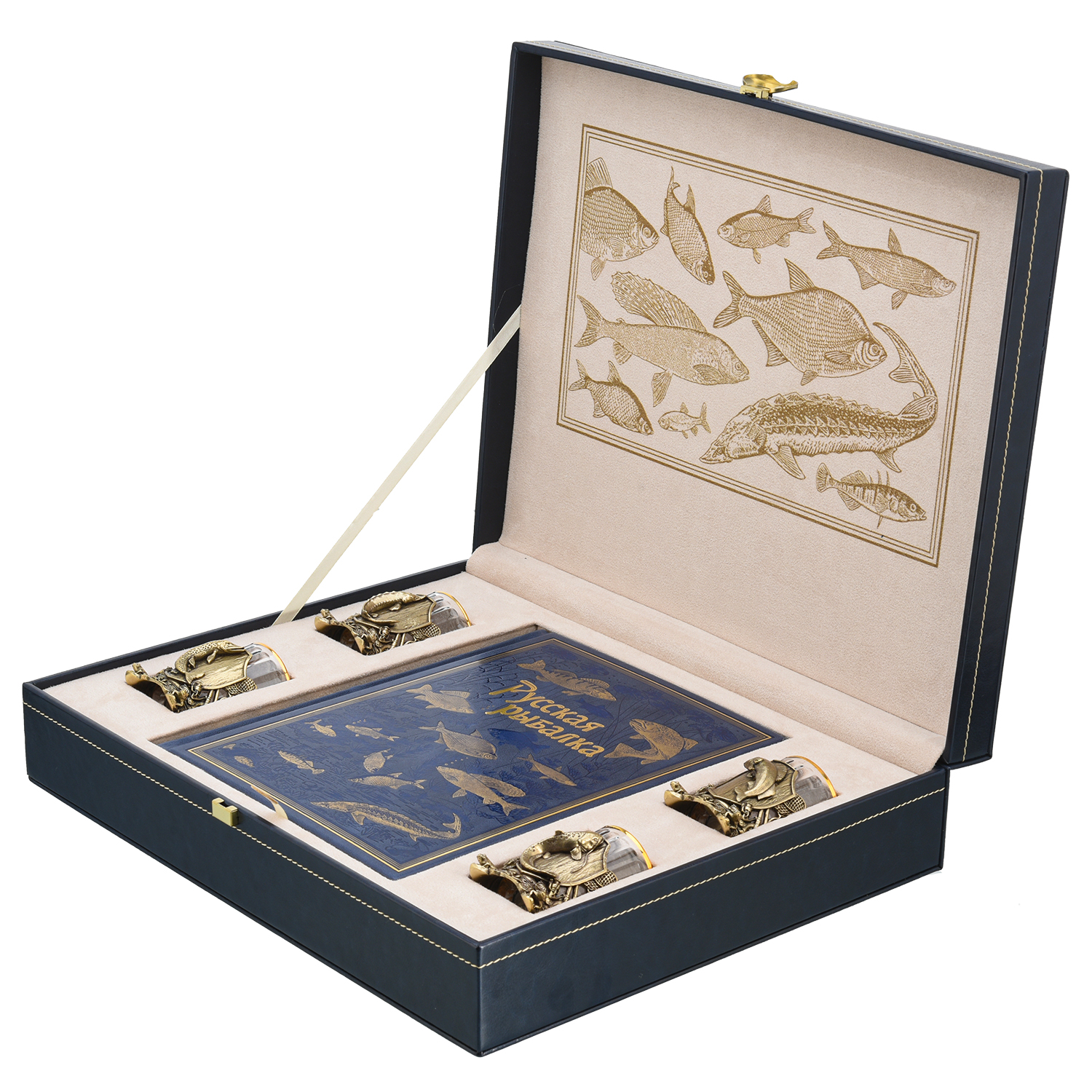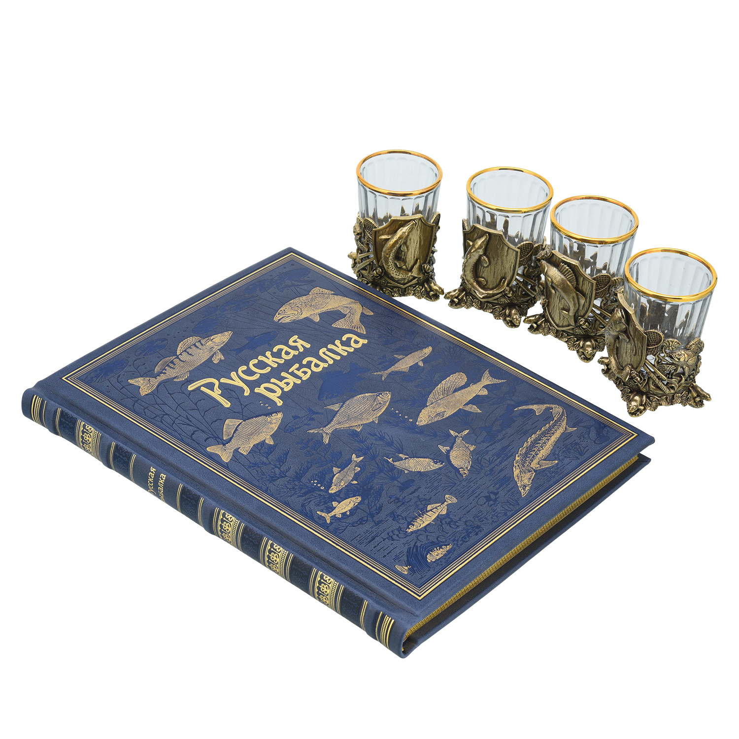 Подарочный набор с книгой и стопками "Рыбацкий".Материалы: кожа, стекло, бронза.