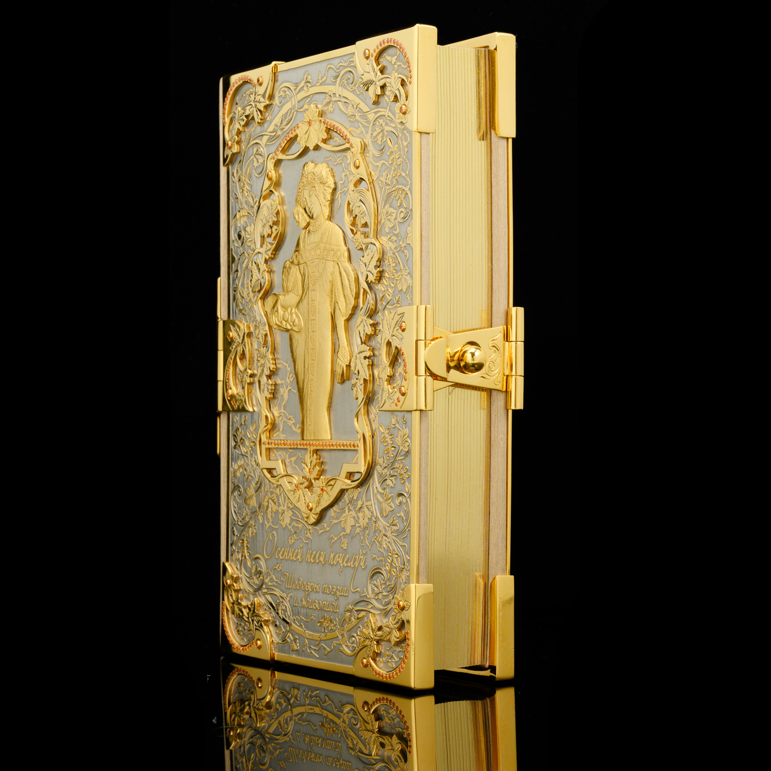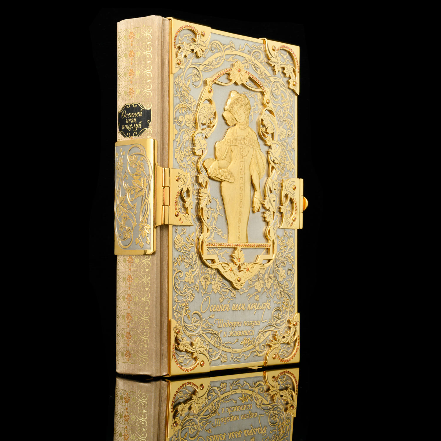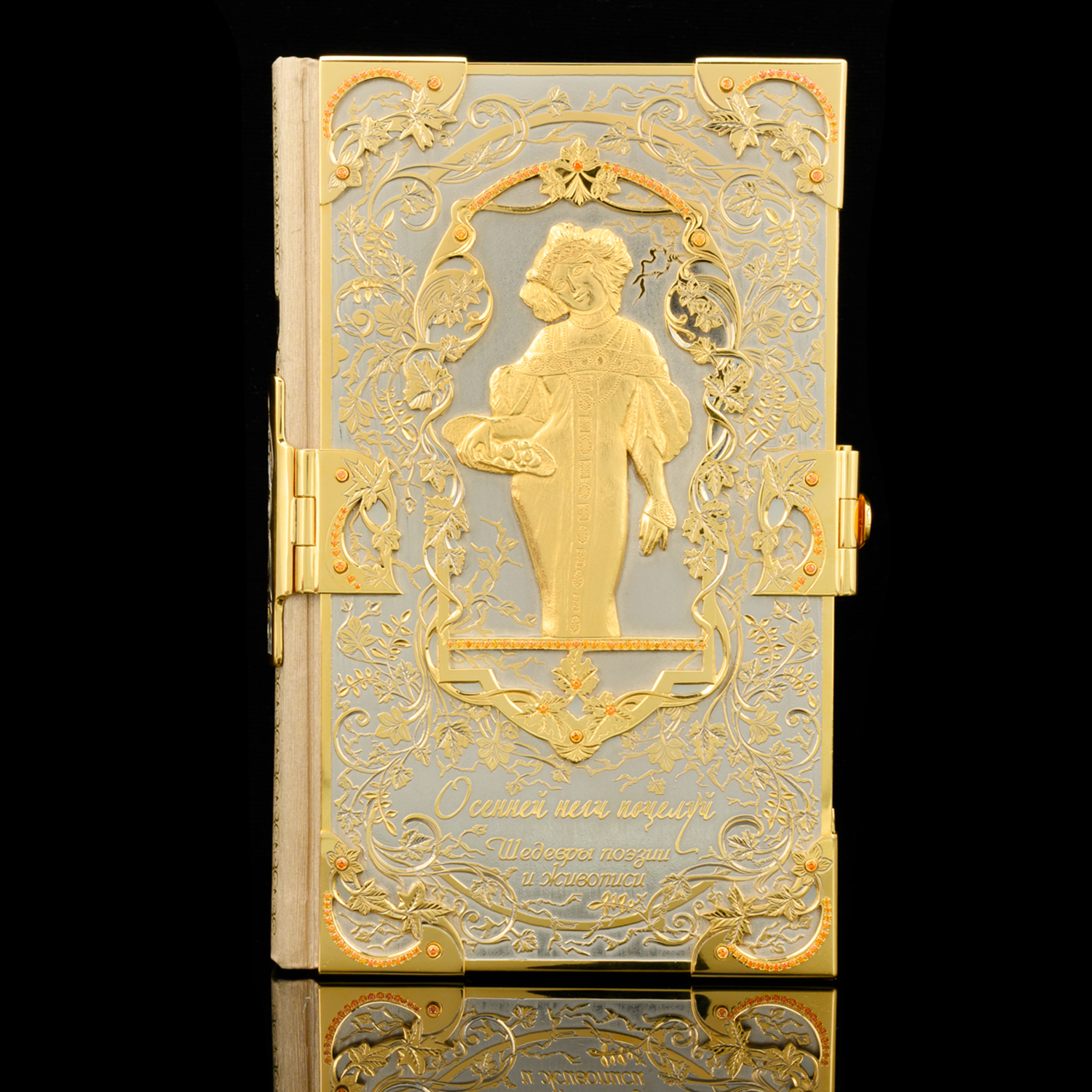 Подарочная книга с позолотой и фианитами "Осенней неги поцелуй". Златоуст.Материалы: латунь, никель, золото 999,9*, кожа, фианиты.