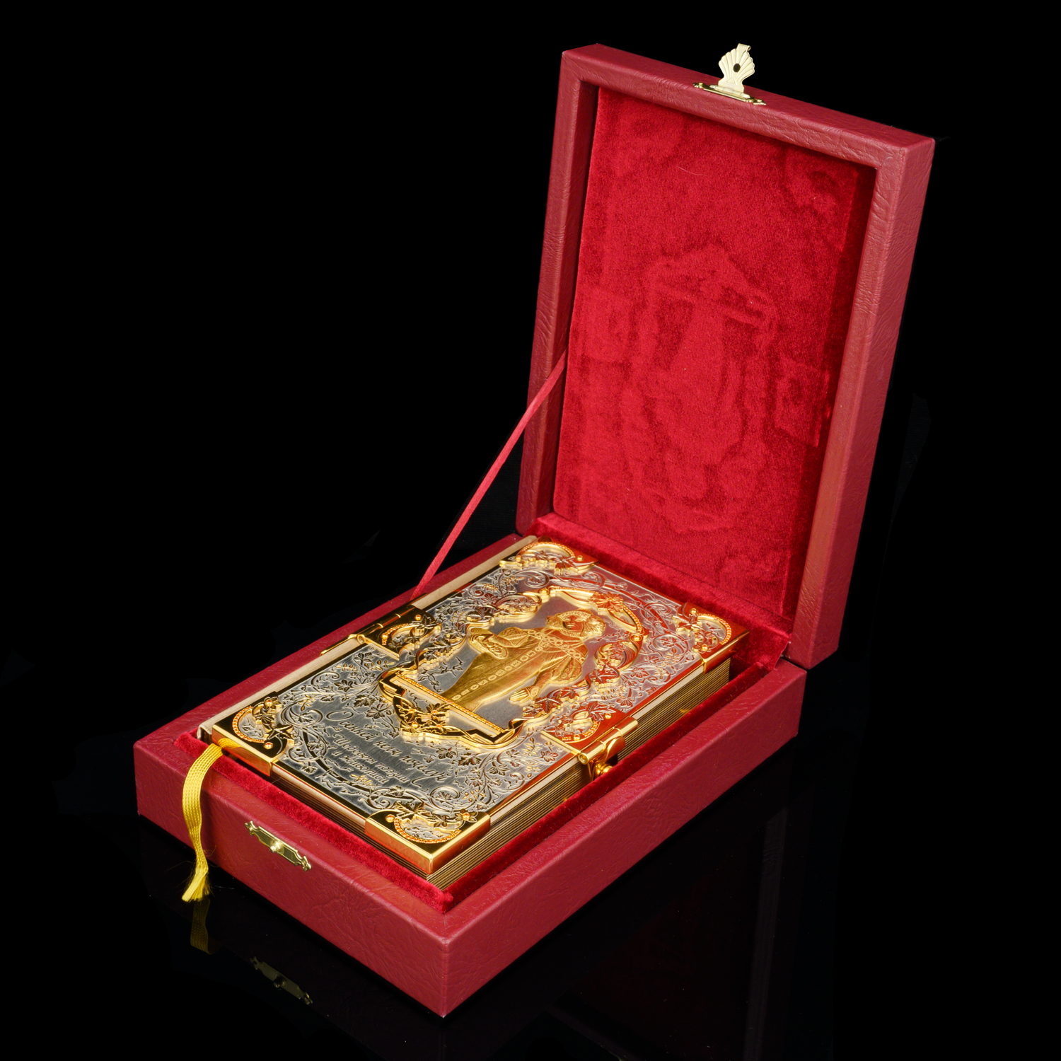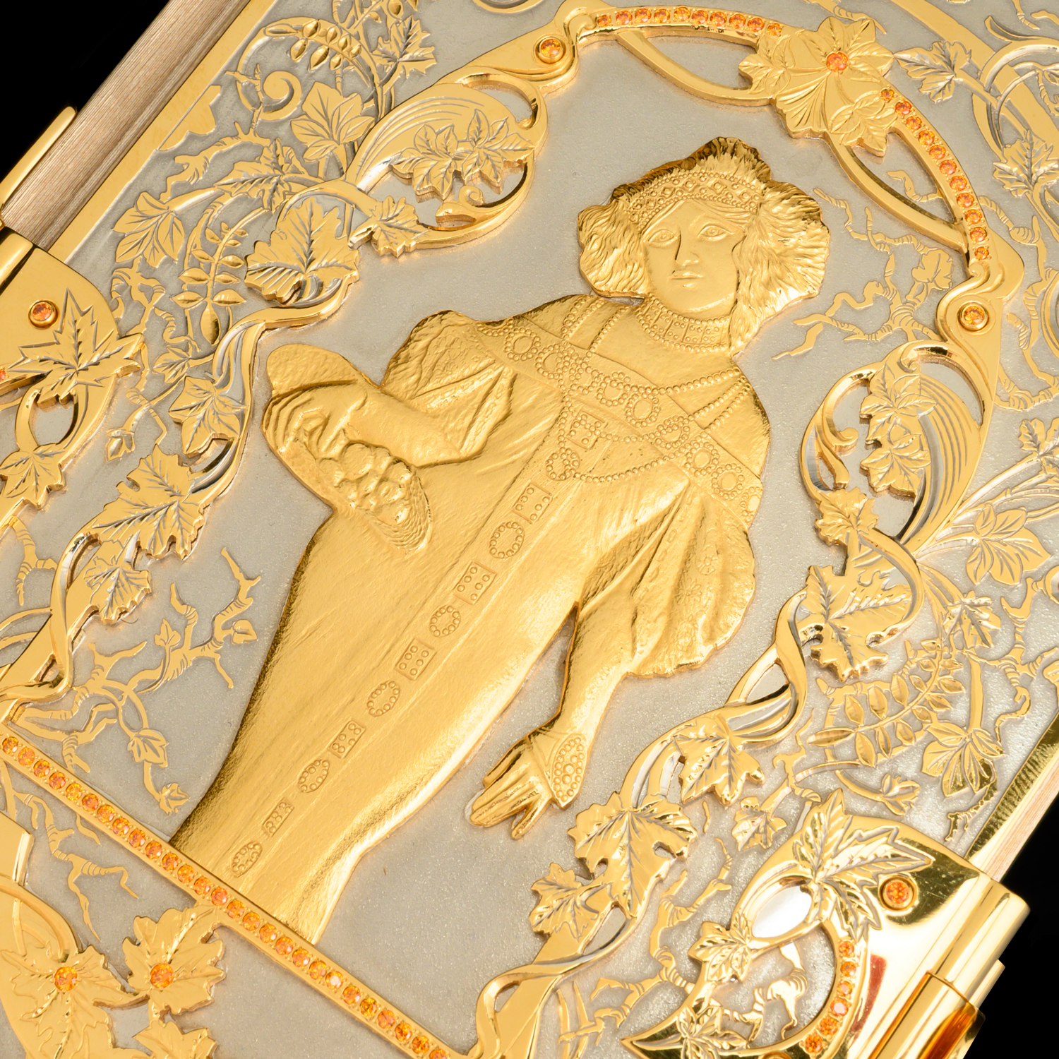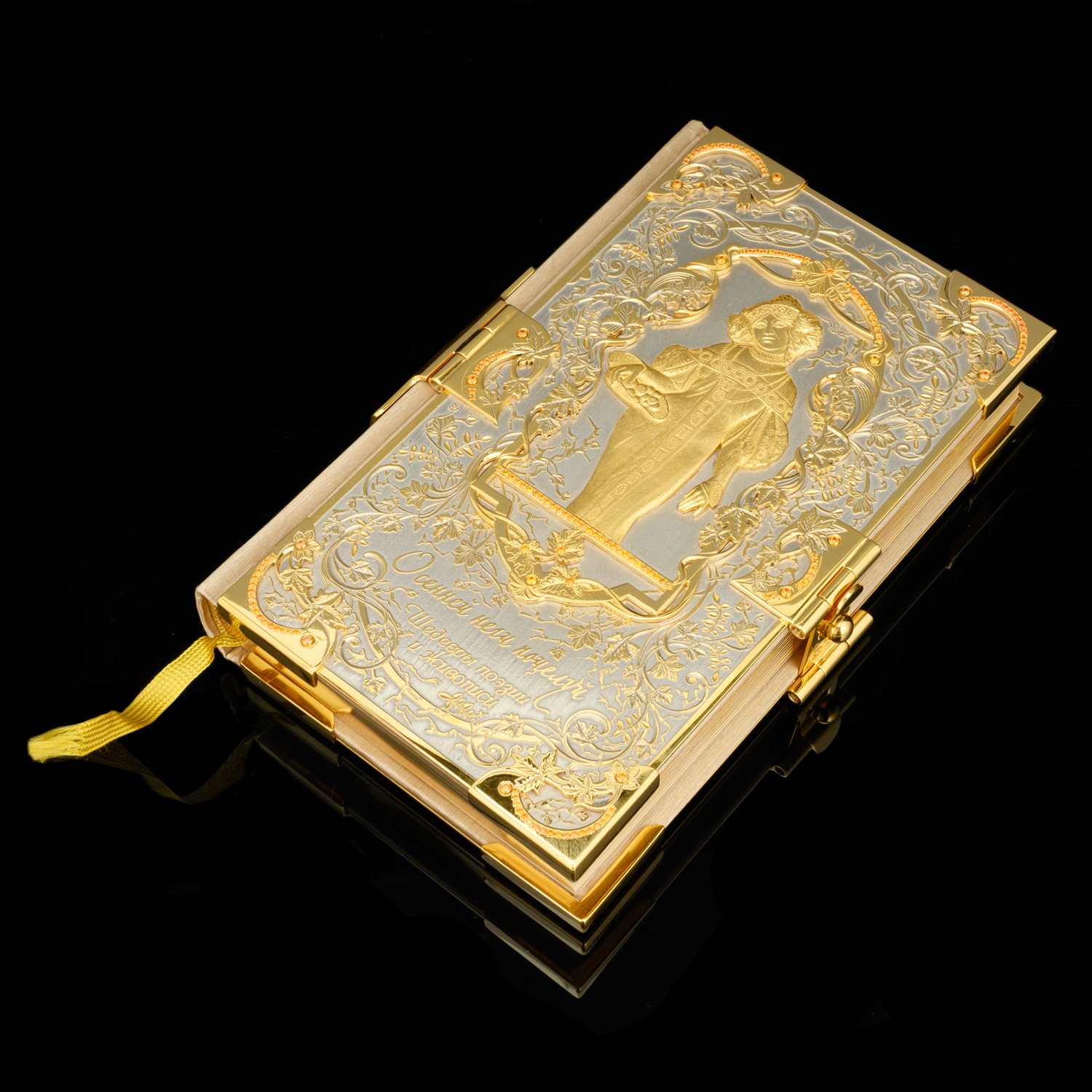 Подарочная книга с позолотой и фианитами "Осенней неги поцелуй". Златоуст.Материалы: латунь, никель, золото 999,9*, кожа, фианиты.
