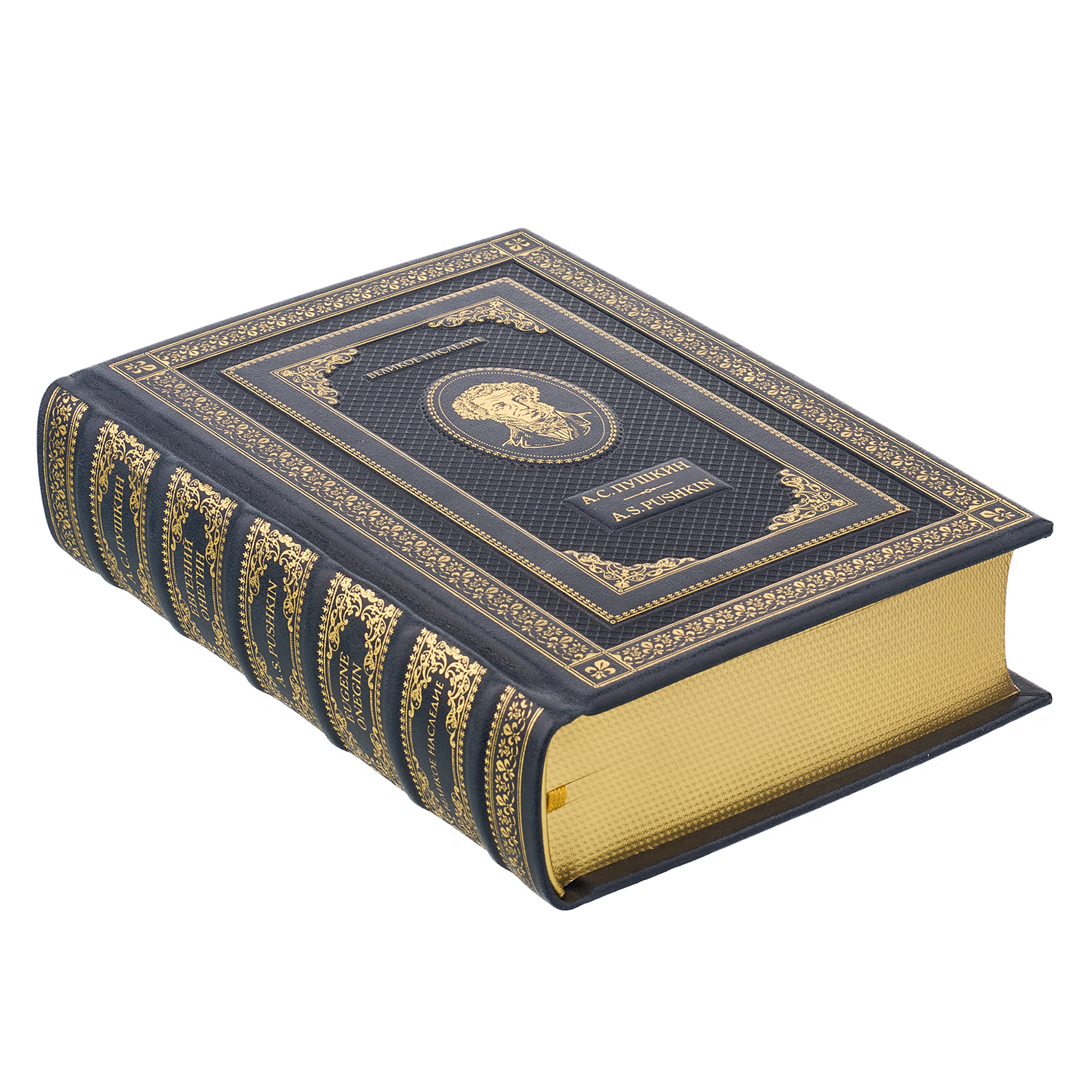 Подарочная книга "А.С.Пушкин. Евгений Онегин". Билингвальное издание.Материал: кожа.