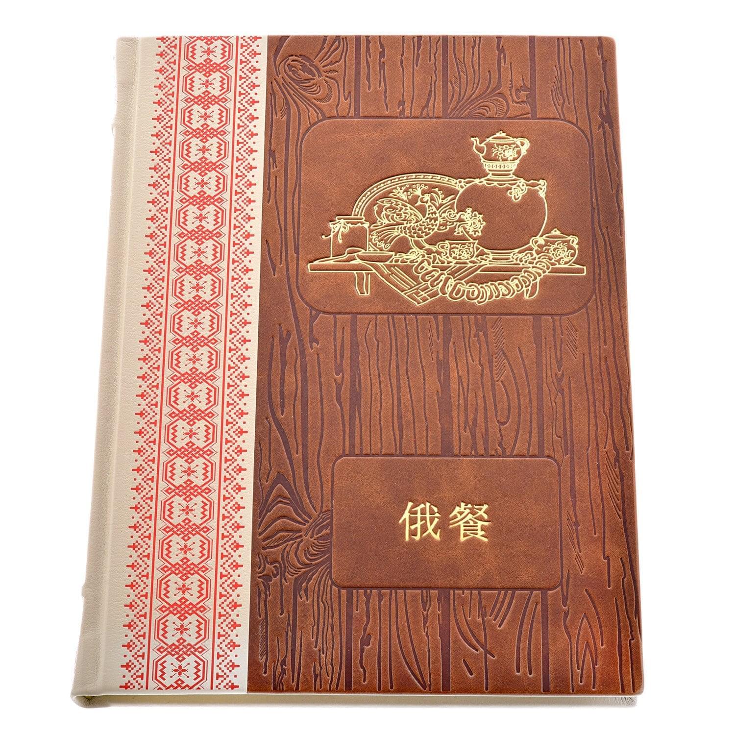 Книга "Русская кухня" в коробке. Кожаный переплёт
