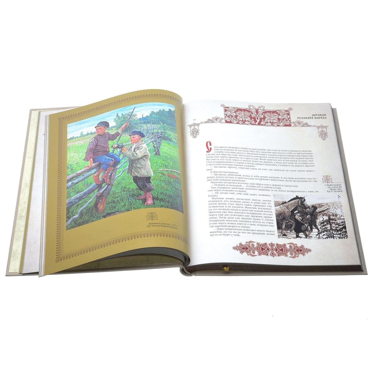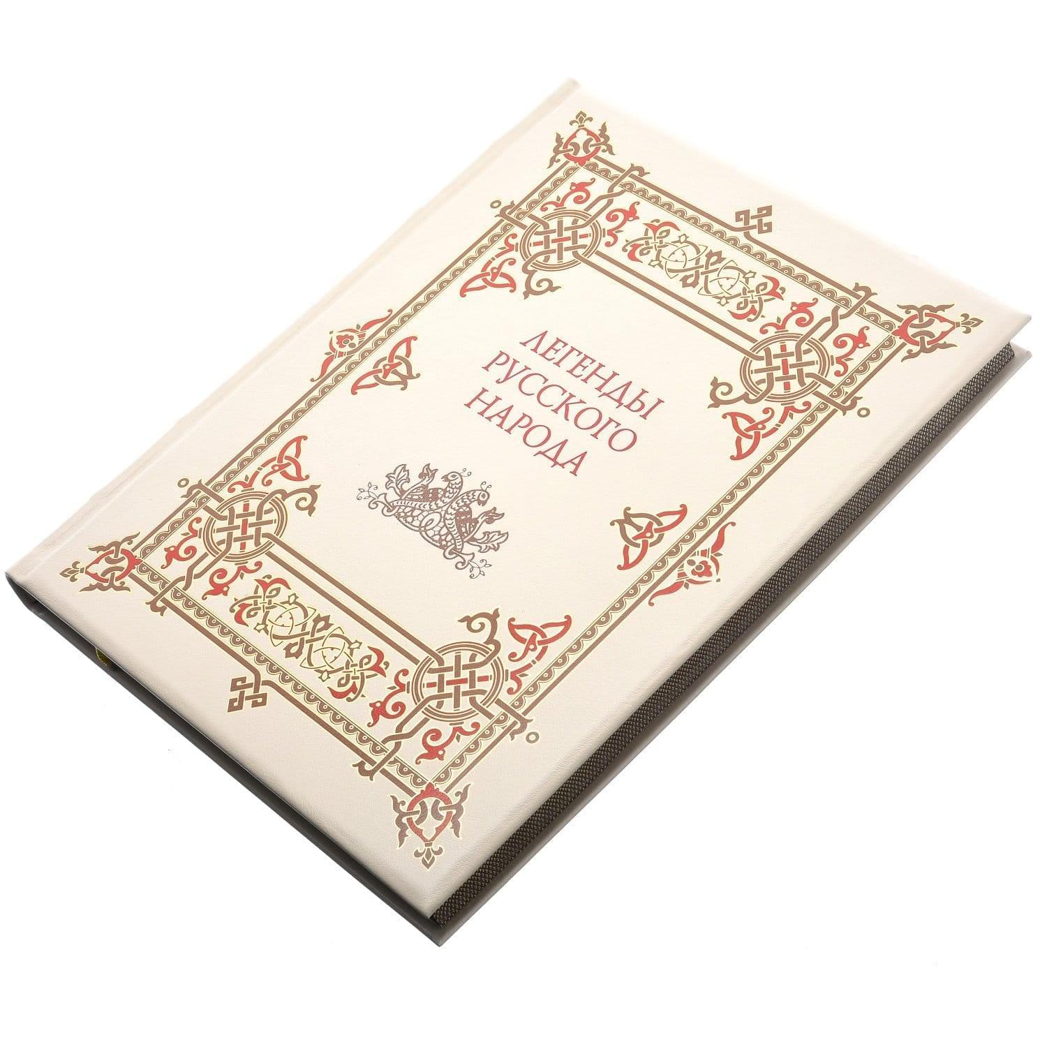 Легенда - это письменное предание о каком-либо историческом событии и разновидность несказочного прозаического фольклора , Собрание легенд русского народа наконец получило надлежащее полиграфическое оформление. Благодаря книжной новинке Вы сможете понять менталитет русских и разгадать загадки души русского человека.Переплет книги оформлен из белой кожи, декорированной в технике тиснения орнаментом в старорусским стиле.