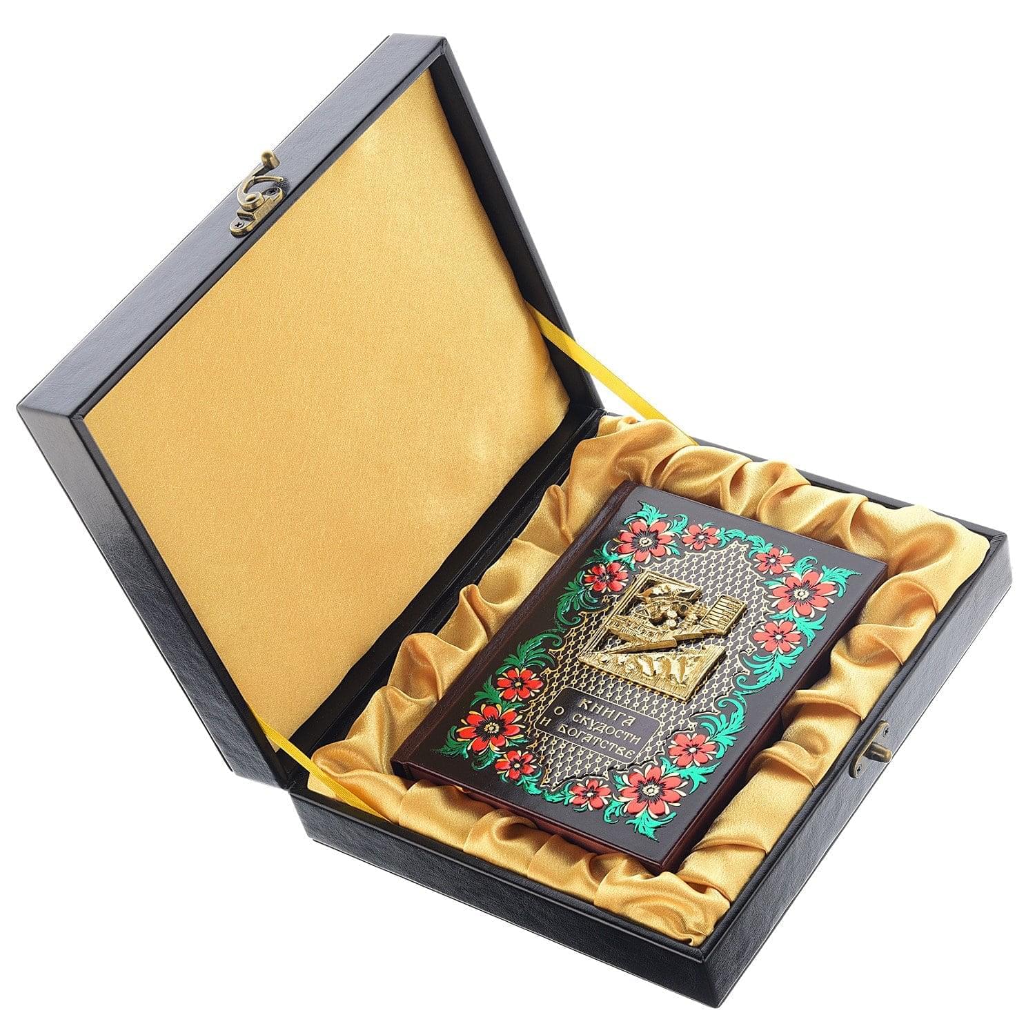 На лицевой стороне кожаного переплета кофейного цвета - позолоченная накладка, которая изготовлена вручную в современной технике получения высокоточных оттисков под названием гальванопластика. Коллекционное издание, подарочная книга о психологии бедности и богатства выпущена ограниченным тиражом.Благодаря искусному и красочному оформлению предлагаемая подарочная книга представляет собой элегантный интерьерный аксессуар - украшение мебельной поверхности.