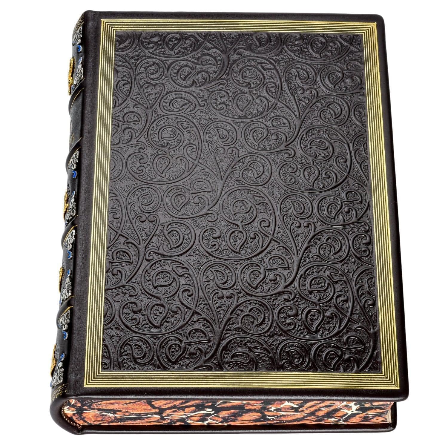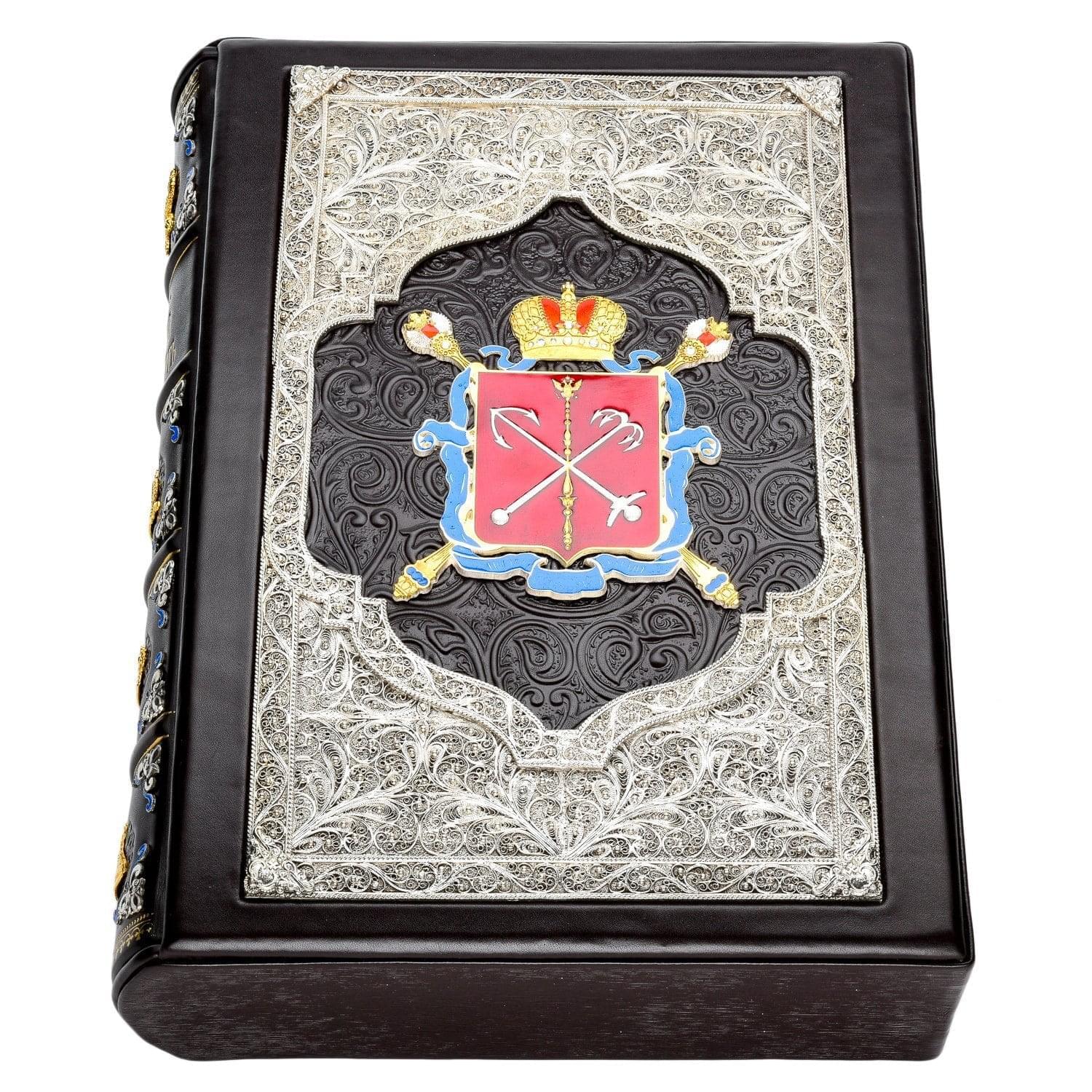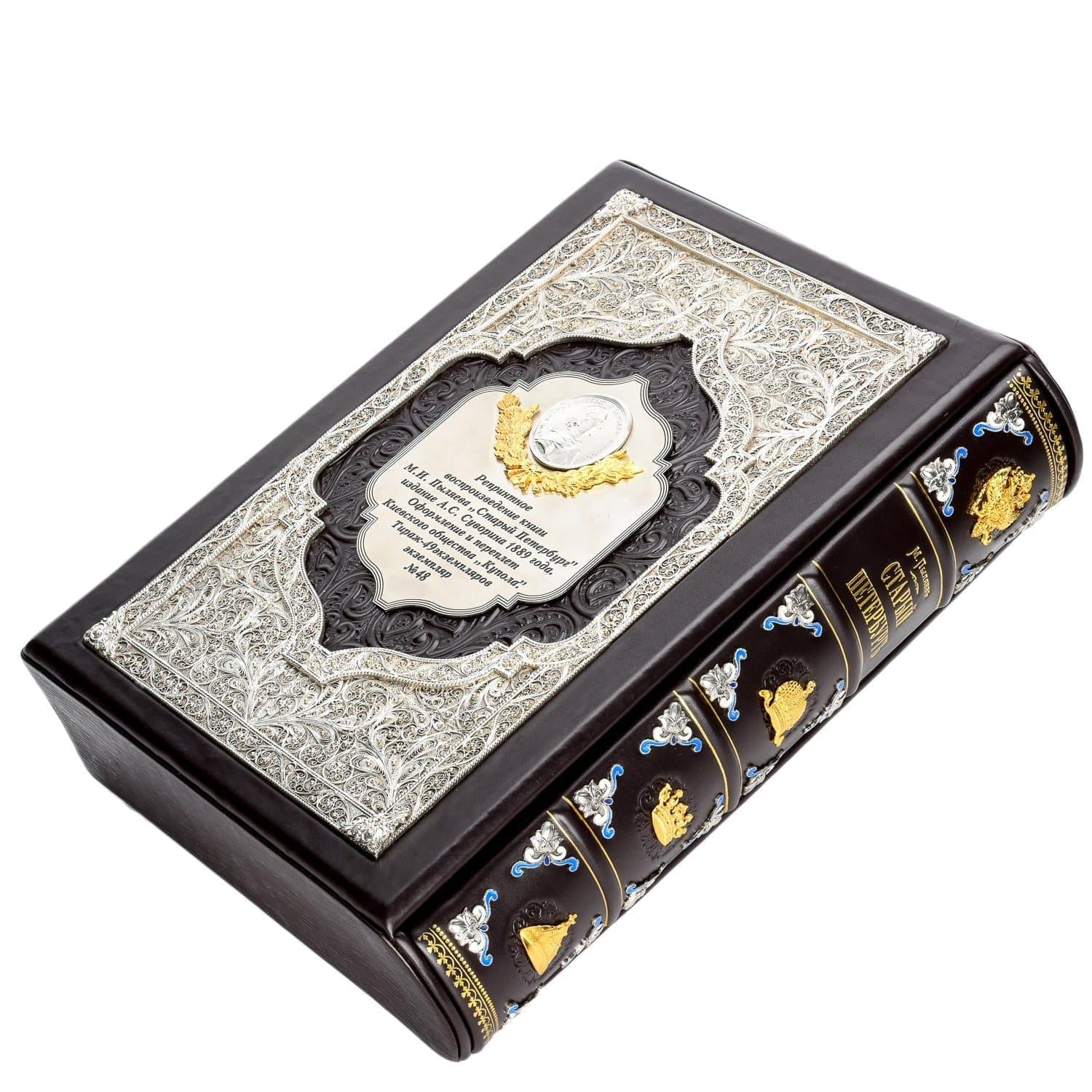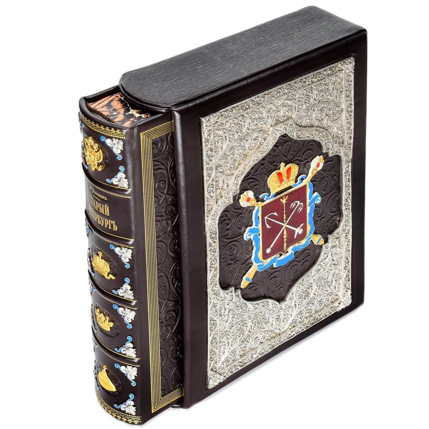 От такого подарка не отказался бы и сам президент России, коренной петербуржец. Вашему вниманию предлагается шедевр отечественной полиграфии - подарочная книга о культурной столице России в коробе. Ее авторский переплет с изысканным дизайном выполнен в техниках тиснения по коже и филигрань, которые оформлены эффектной позолотой и серебром. Книга словно из Средневековья! Благодаря роскошному оформлению она отличается коллекционной ценностью, к которой со временем добавится и антикварная.