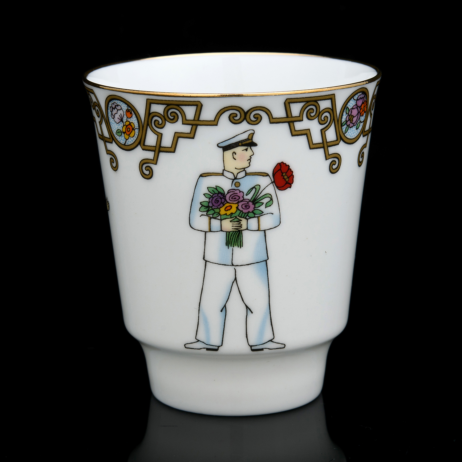 Русские подарки и сувениры → Посуда → Кофейные пары → Кофейная тройка 165 мл "Красный мак". Форма Майская. ИФЗ