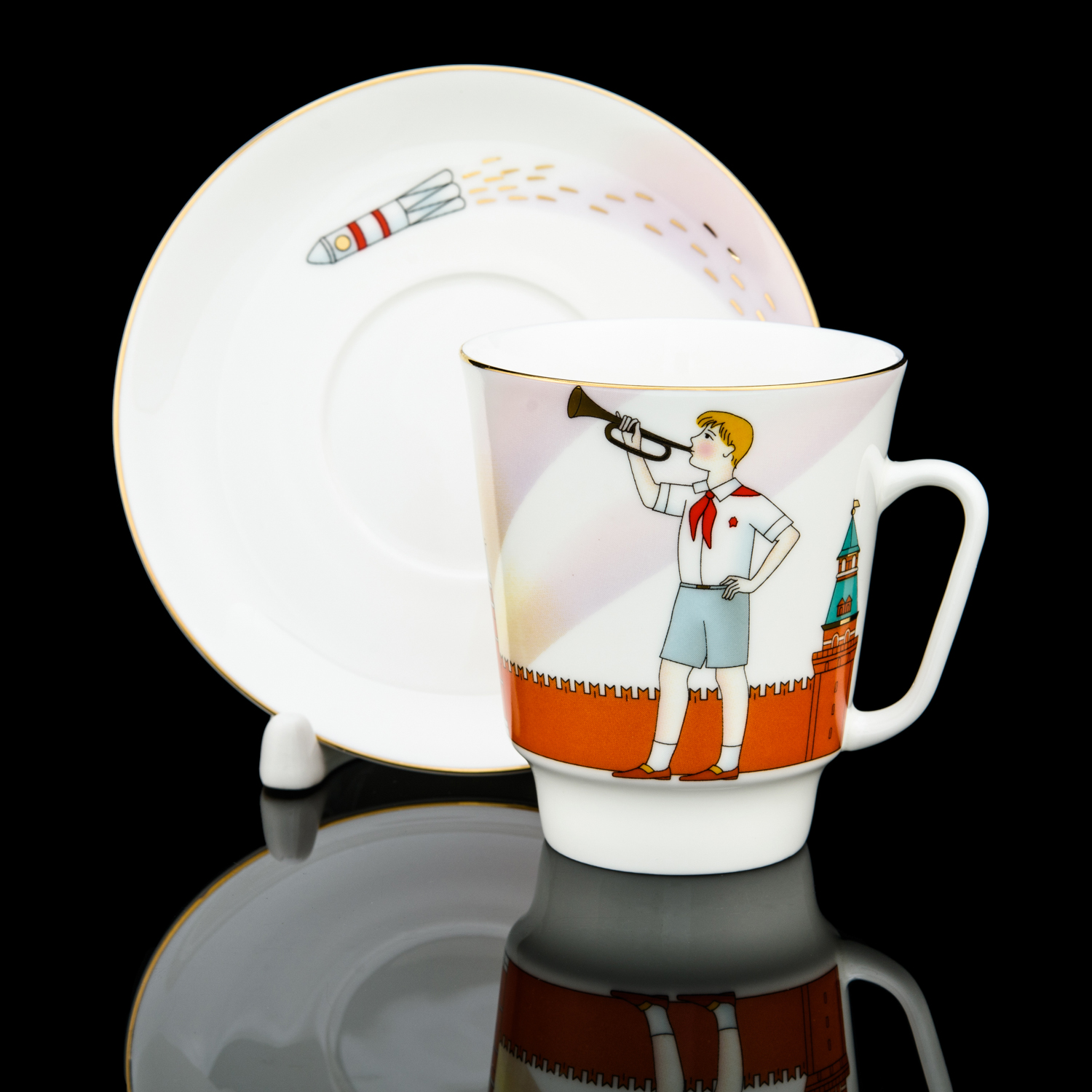 Русские подарки и сувениры → Посуда → Кофейные пары → Кофейная пара 165 мл "Спасская башня". Форма "Майская". ИФЗ