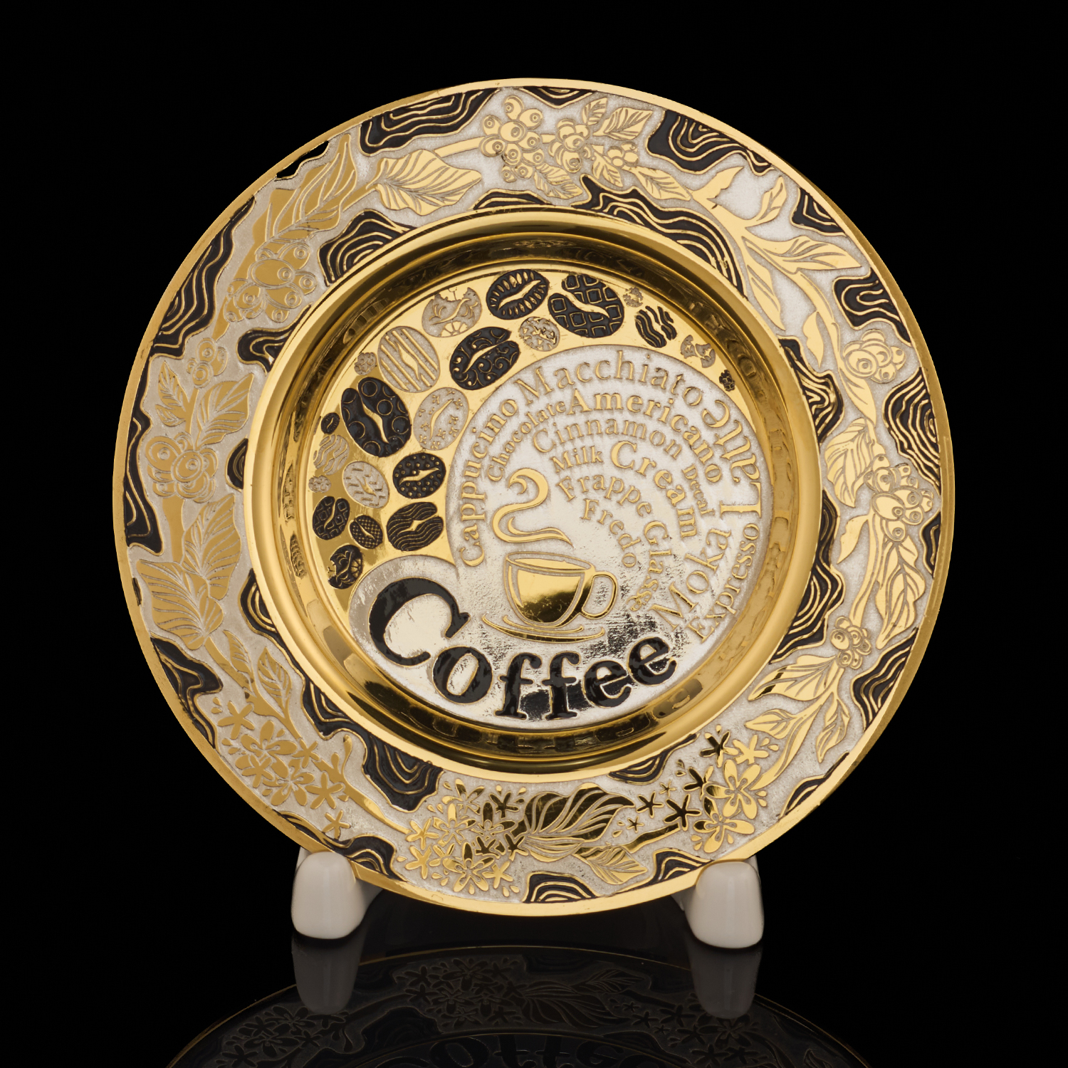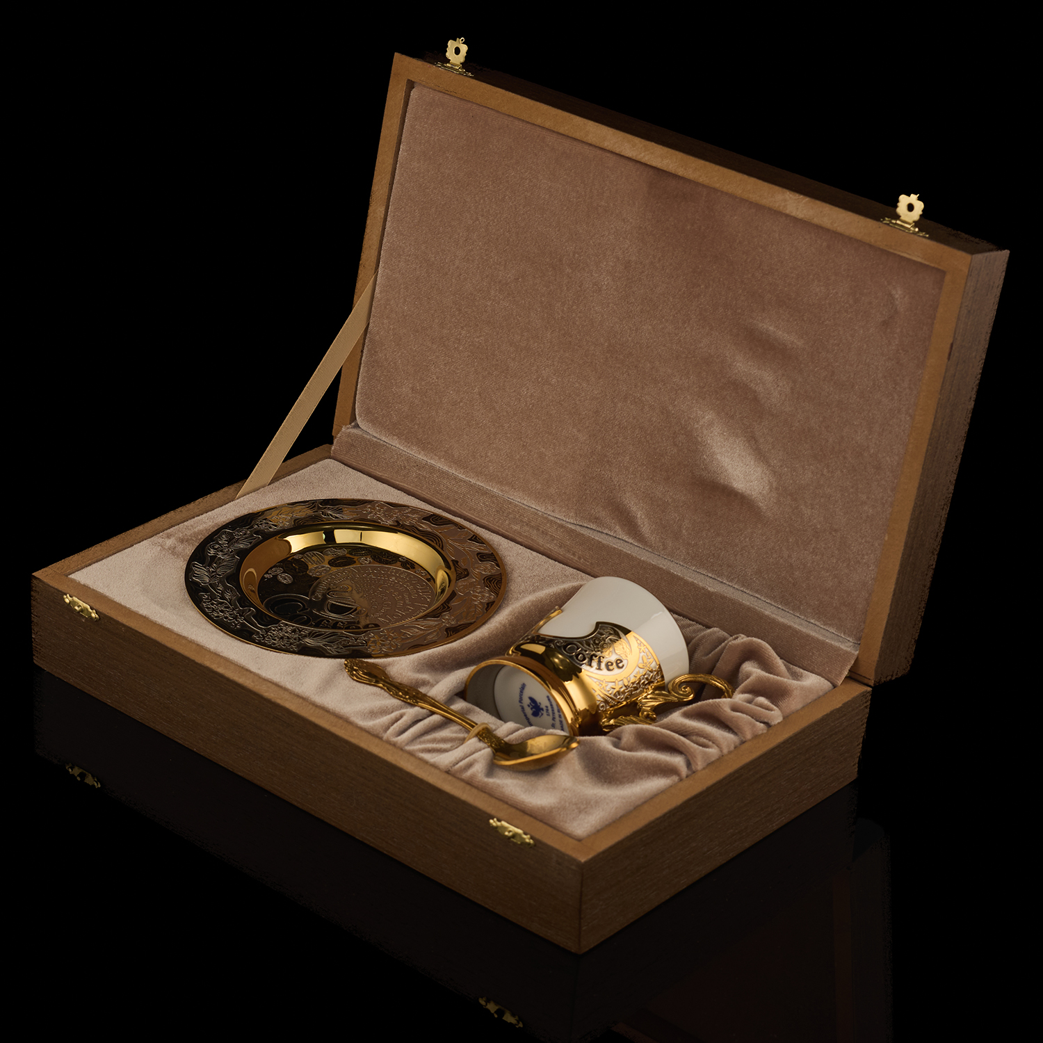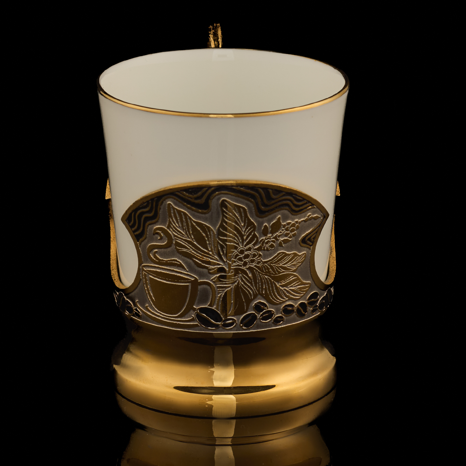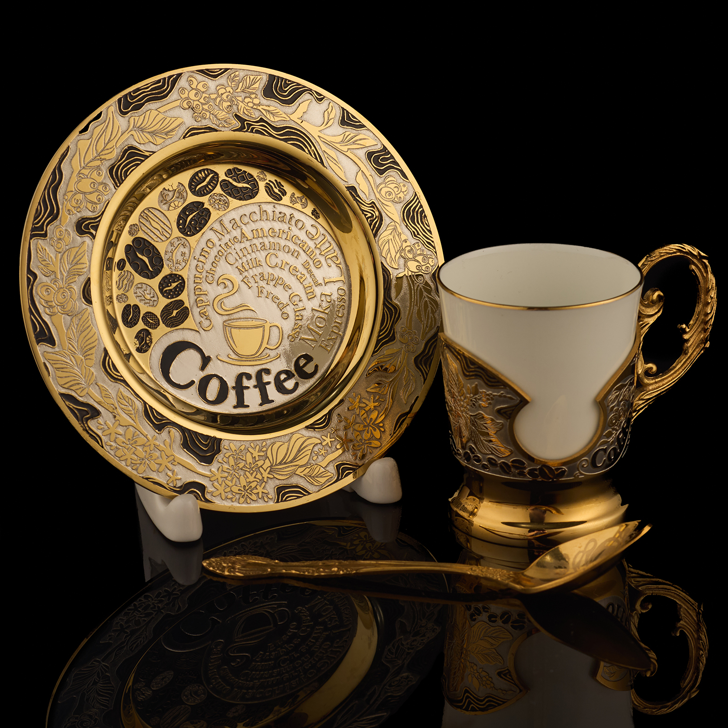 Кофейная пара "Кофе". Златоуст.Материалы: латунь, никель, золото 999,9*, эмаль, костяной фарфор.