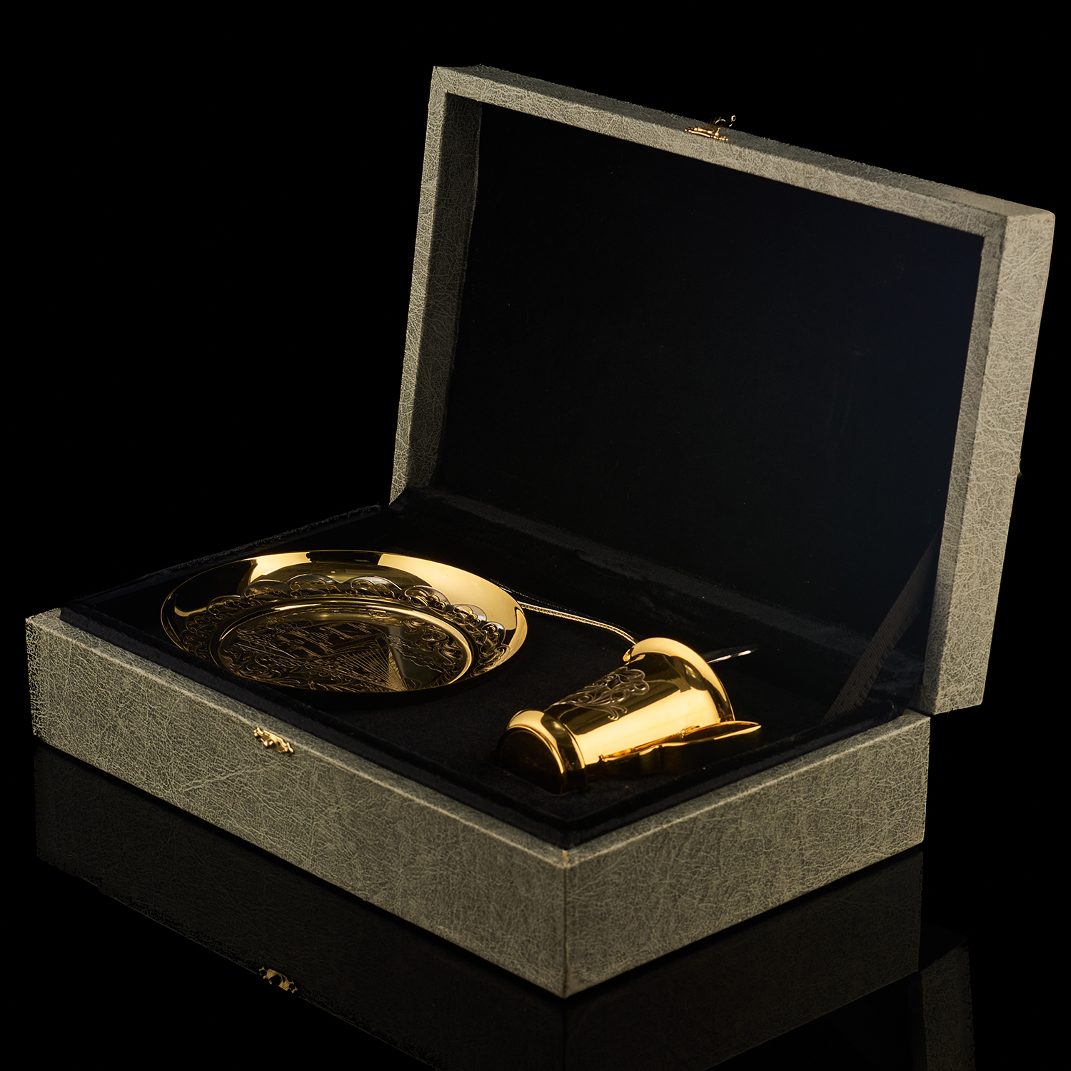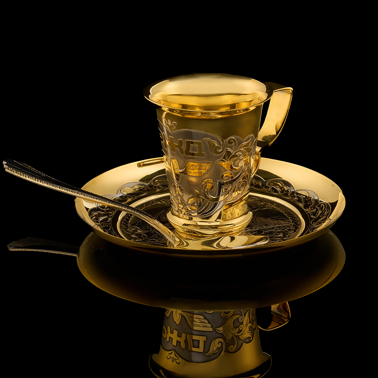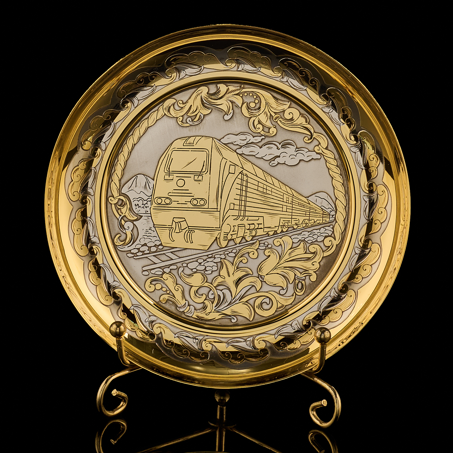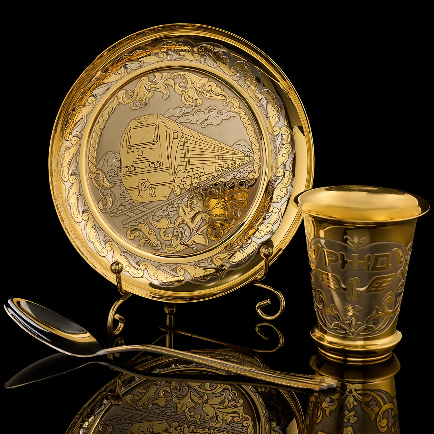 Кофейная пара "Паровоз". Златоуст.Материалы: латунь, никель, золото 999,9*.
