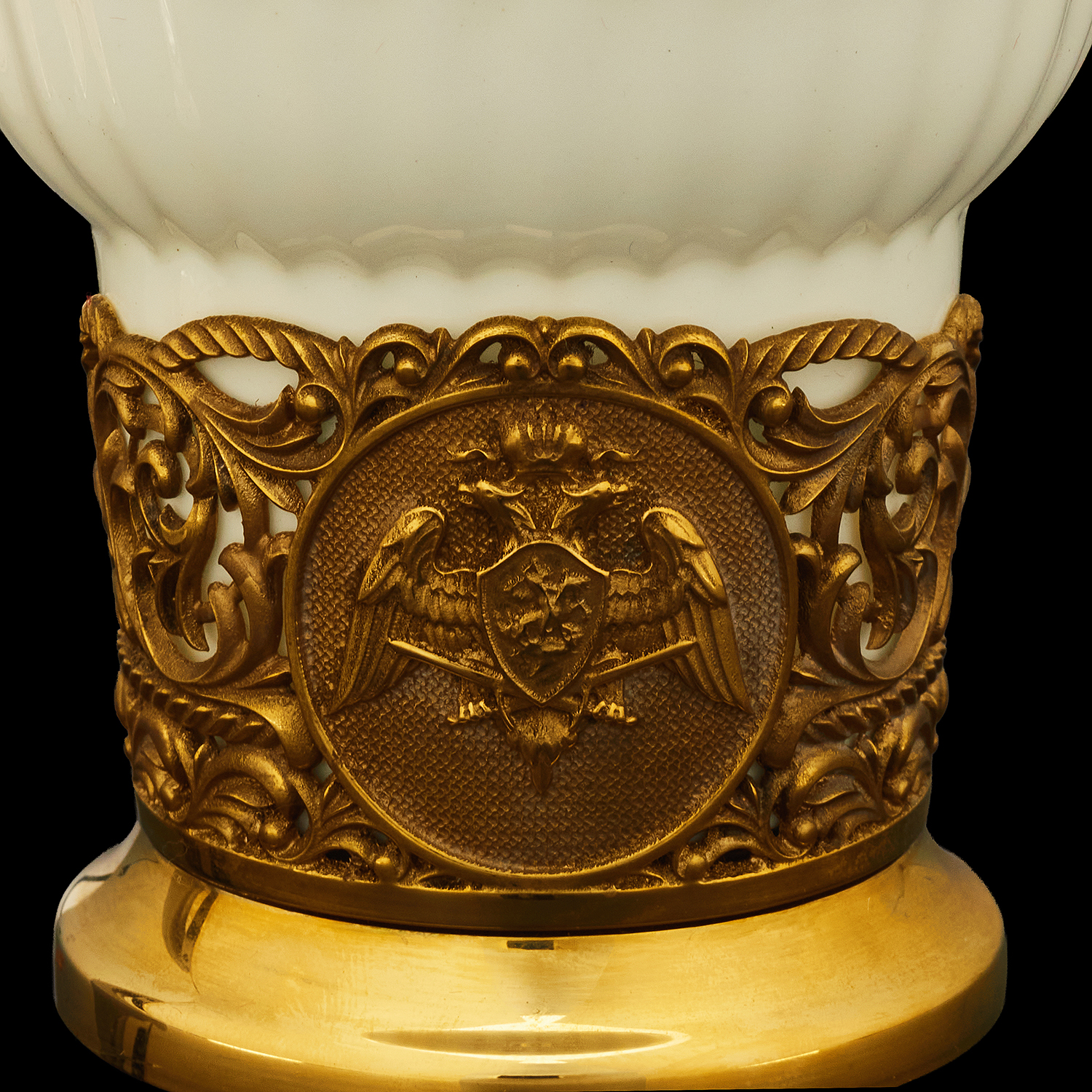 Материалы: латунь, никель, золото 999,9*, эмаль, фарфор.