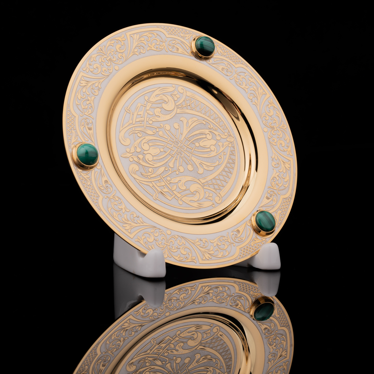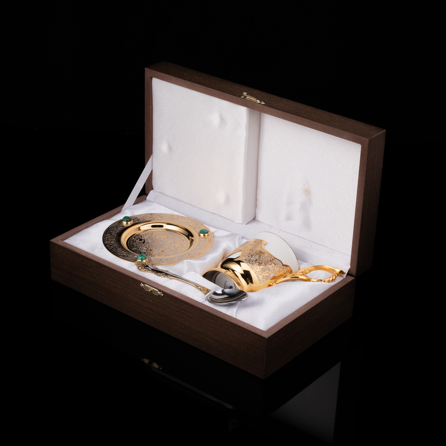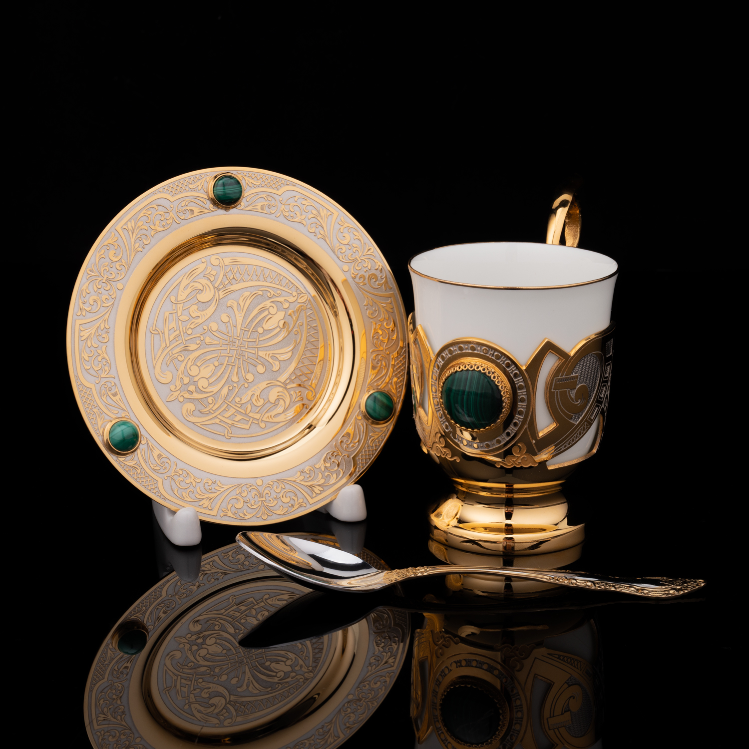 Русские подарки и сувениры → Посуда → Кофейные пары → Кофейная пара с позолотой и малахитом. Златоуст