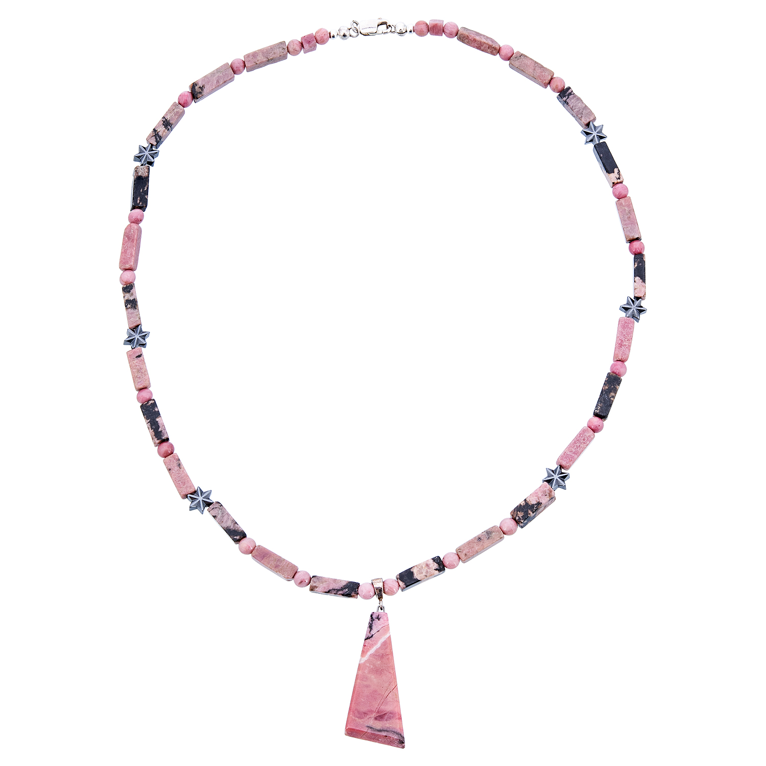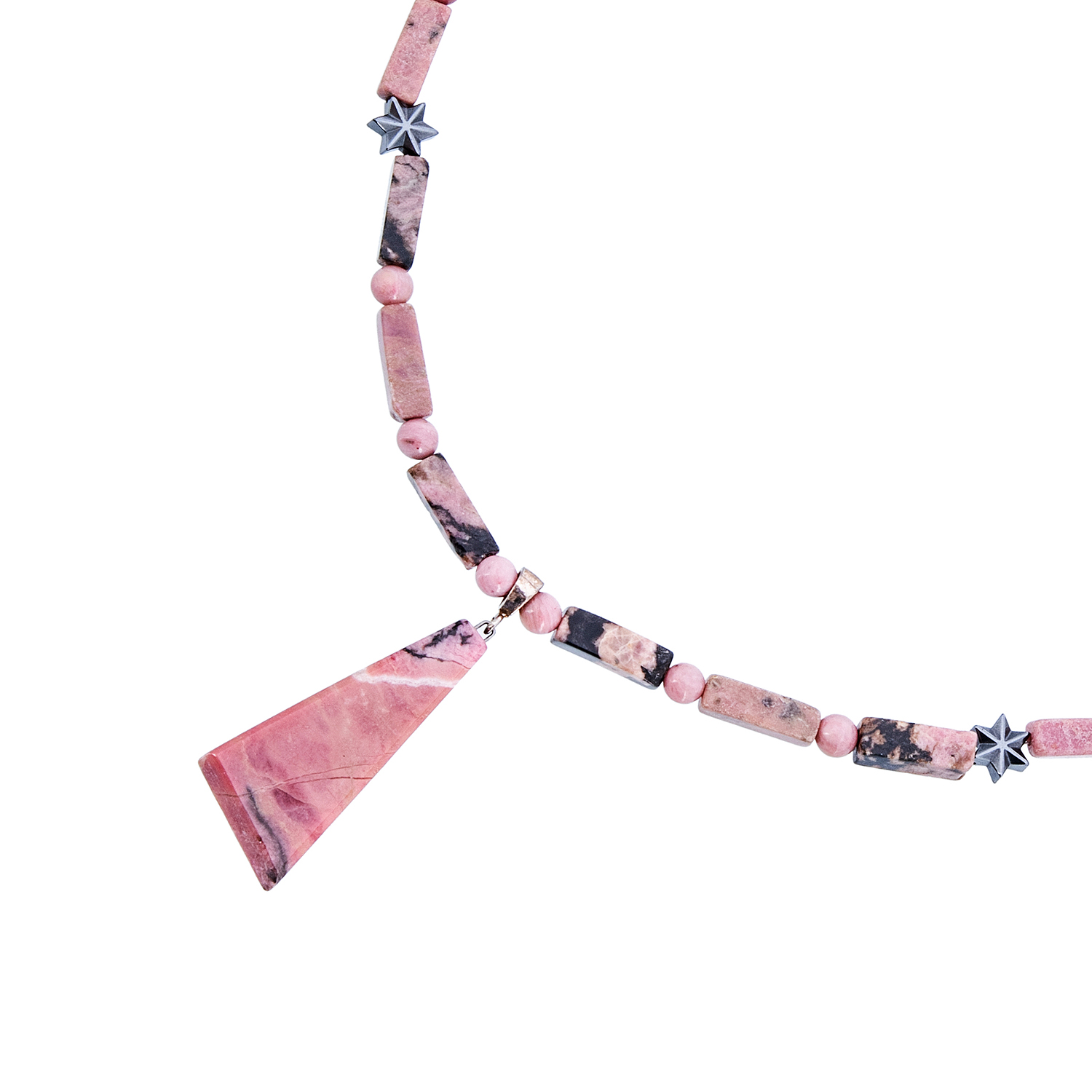 301162-Колье "РАВНОВЕСИЕ" (родонит,серебристый)