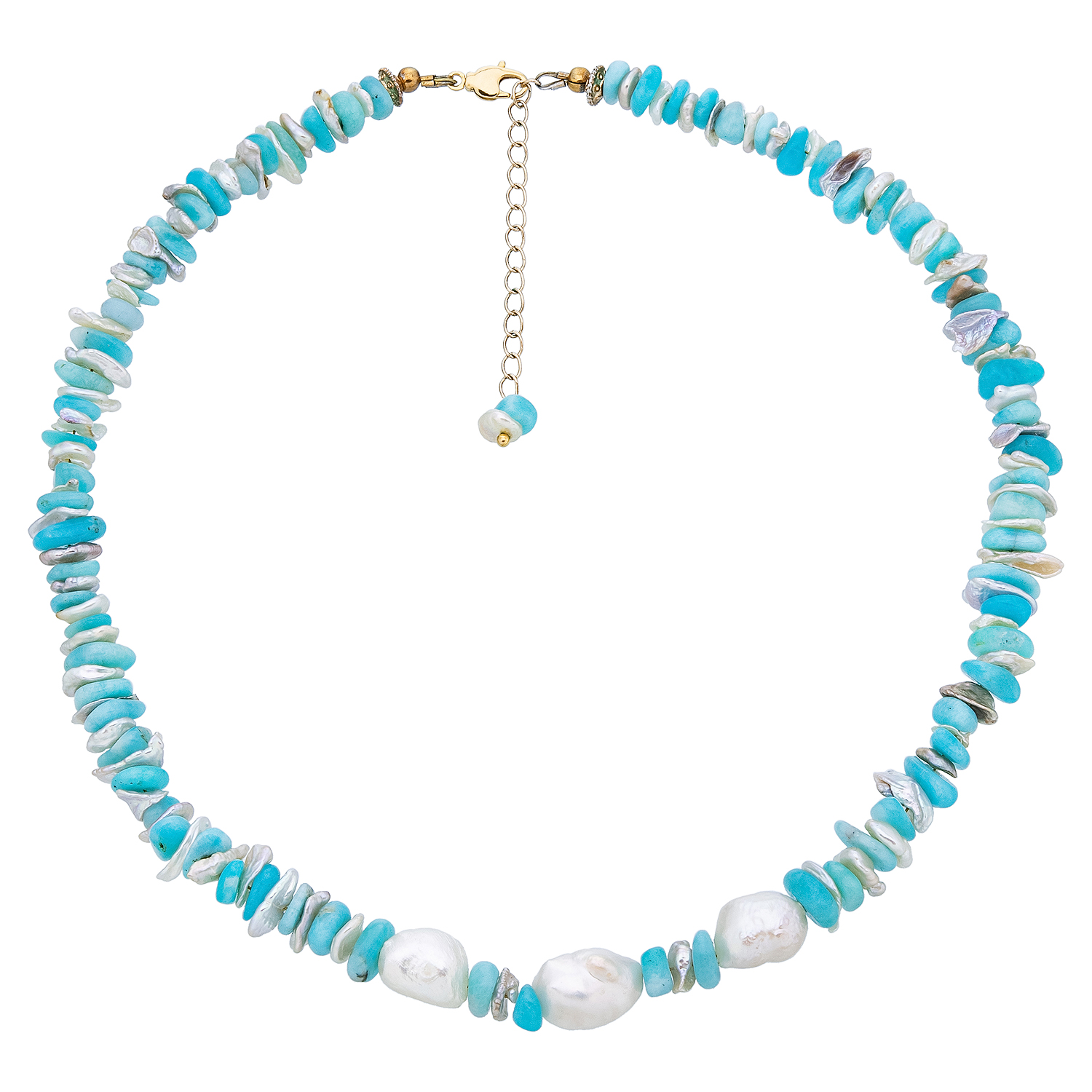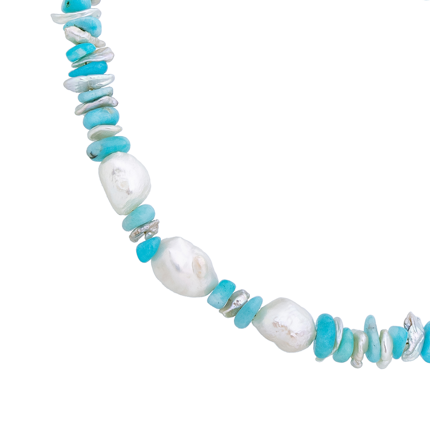 Колье из амазонита и жемчуга "Райский остров".Длина - 480 мм
