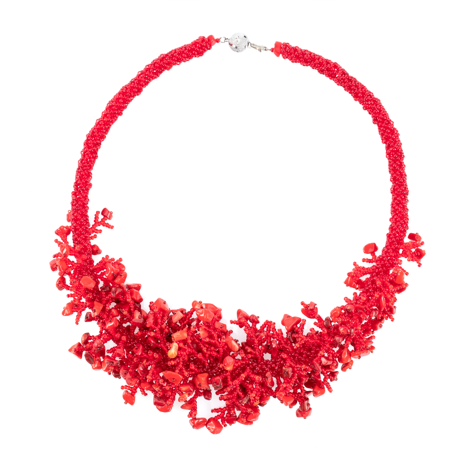Колье-жгут из бисера и натурального камня "Ветвь".Материалы: бисер, коралл.