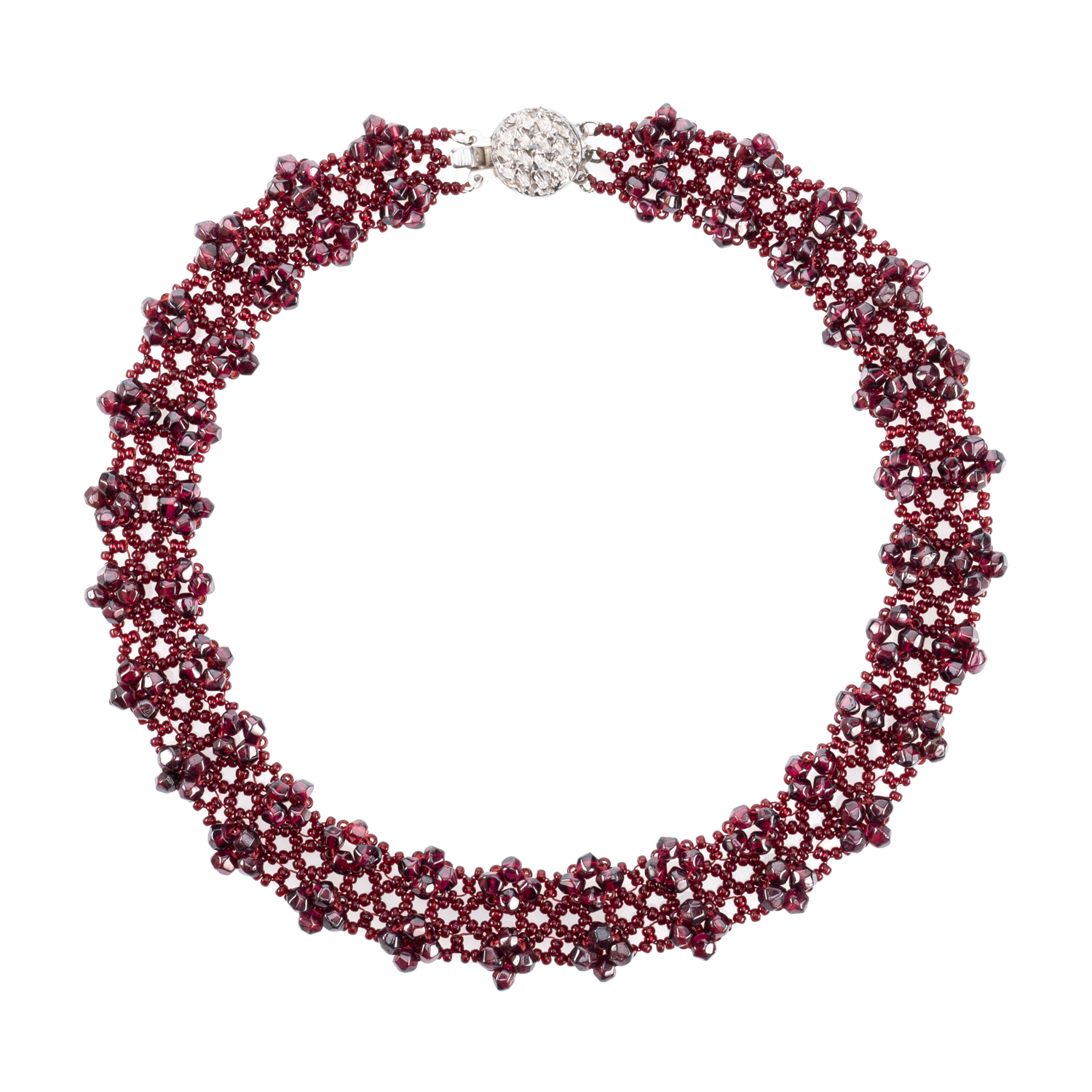 Колье из бисера и натурального камня "Выпуклые цветочки"