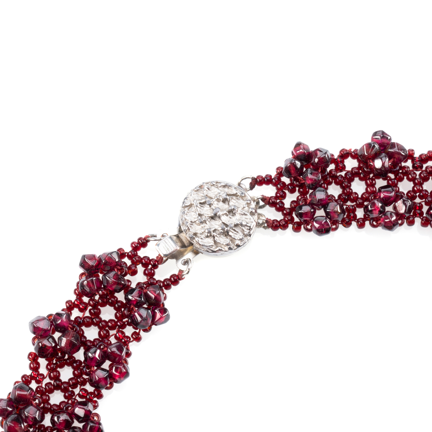 Колье из бисера и натурального камня "Выпуклые цветочки".
