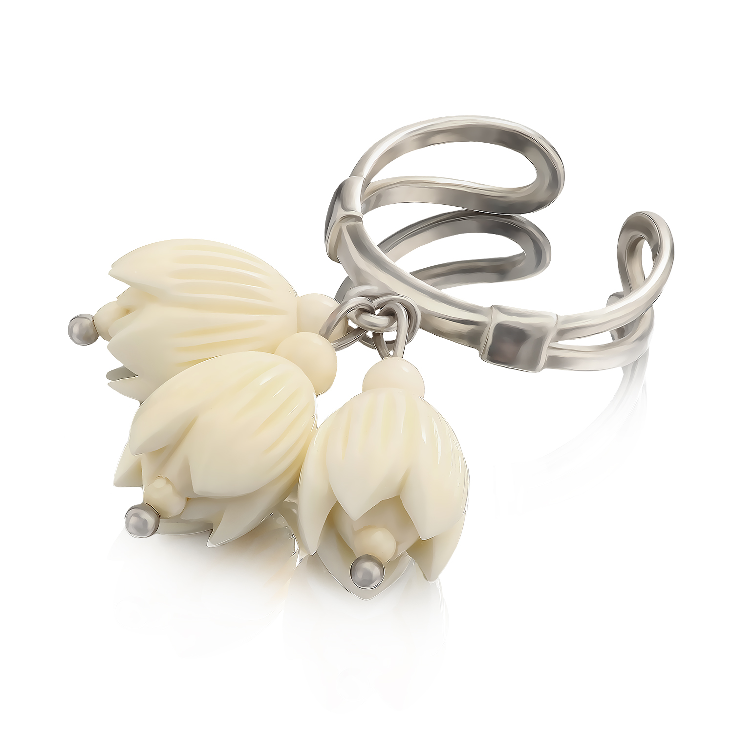 0068729 Бивень мамонта Кольцо"Цветочки"серебрение
