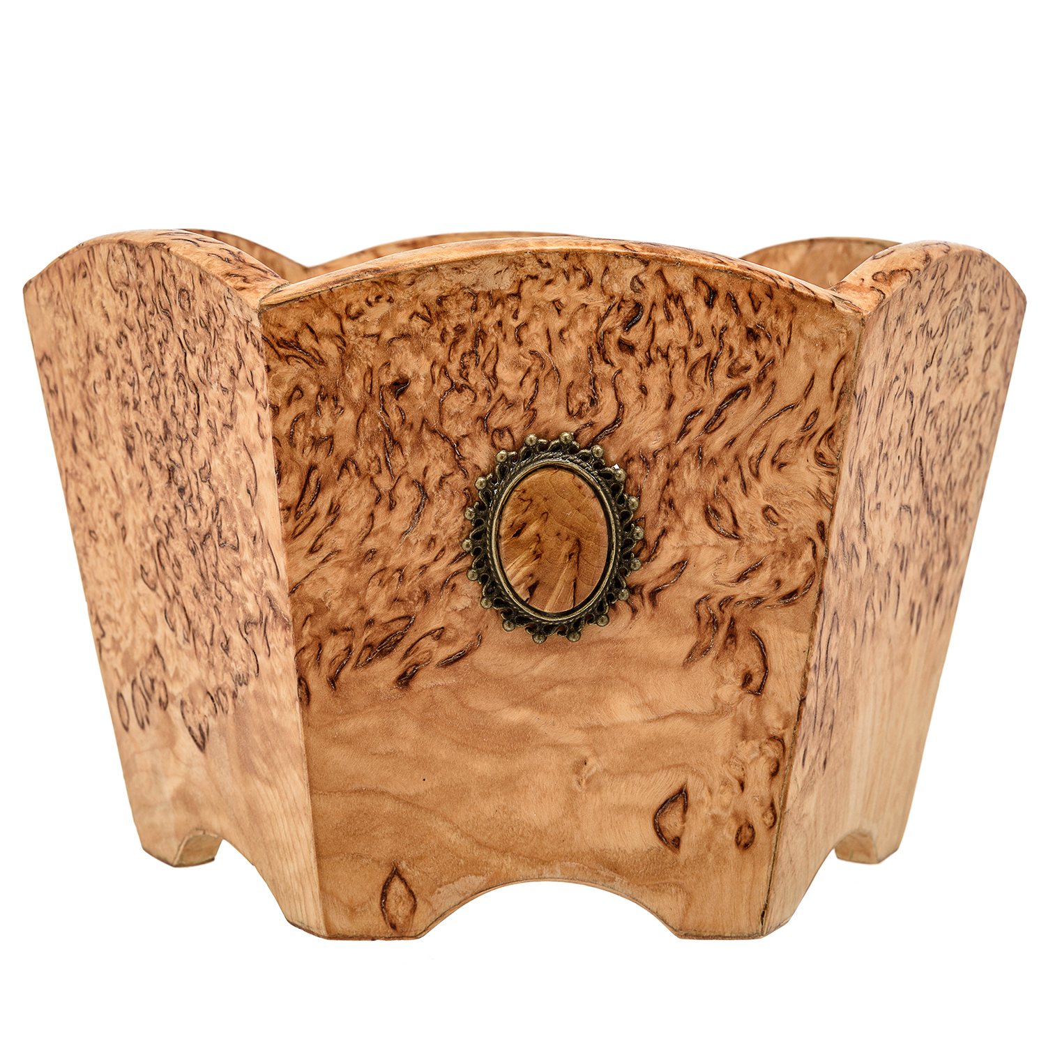 Конфетница деревянная шестигранная из карельской березы.