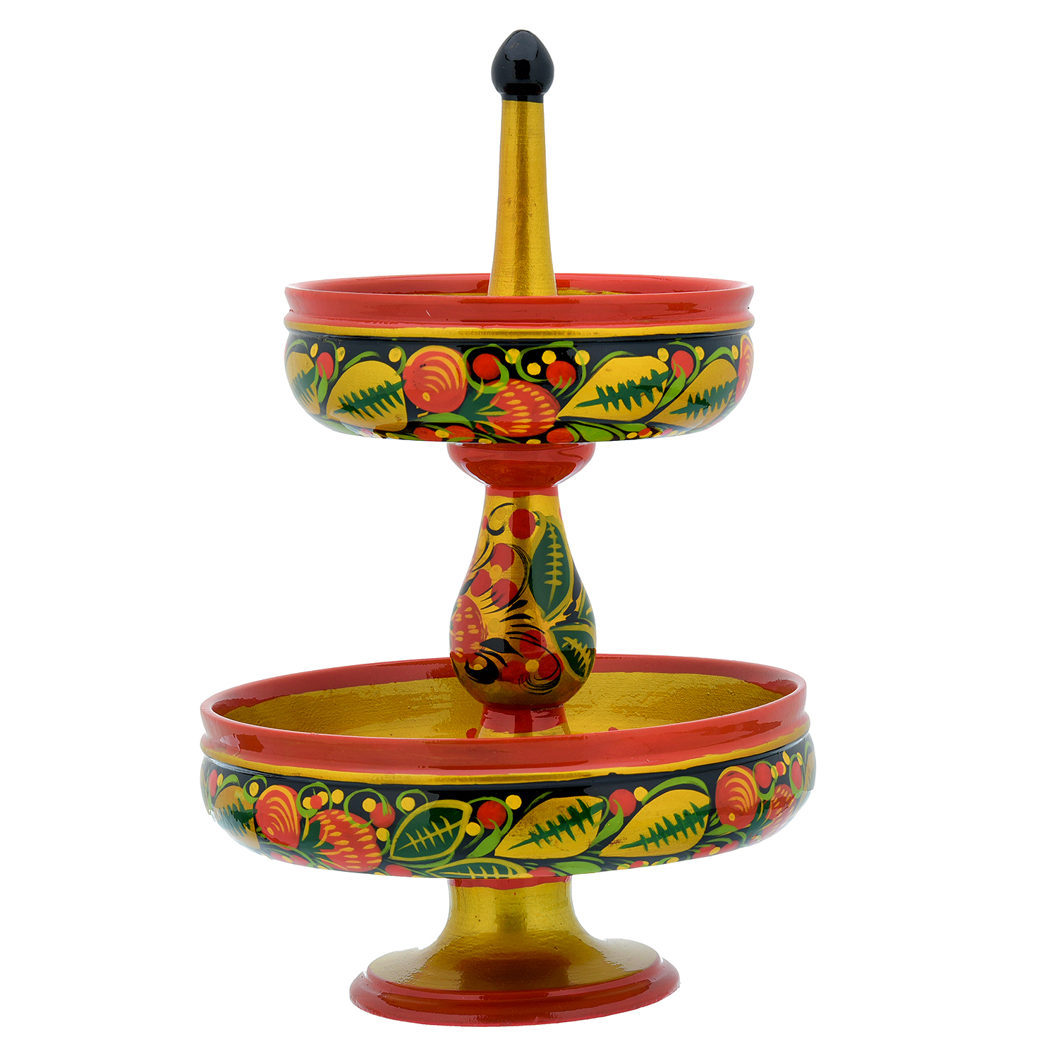 Конфетница двухъярусная "Клубника". Хохлома