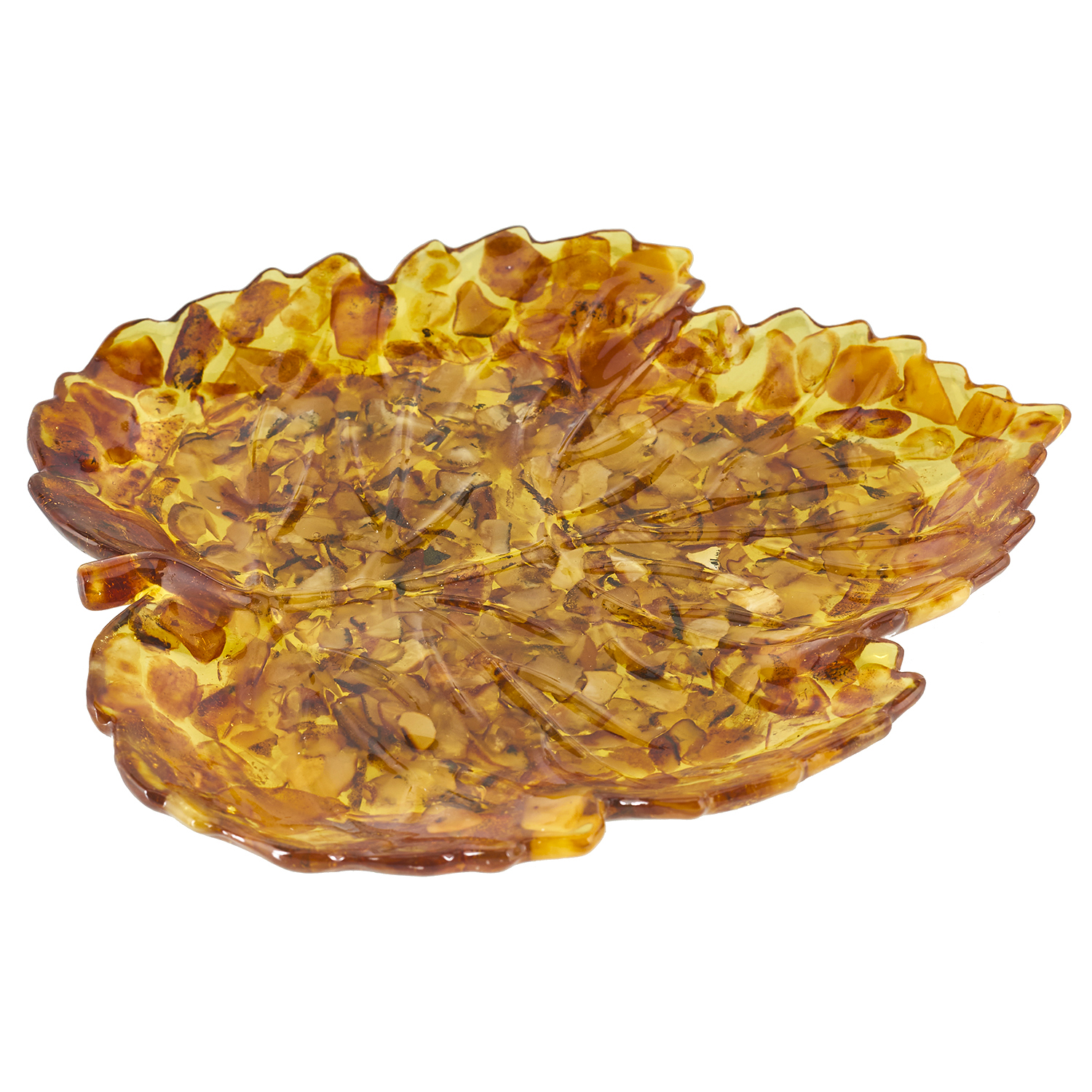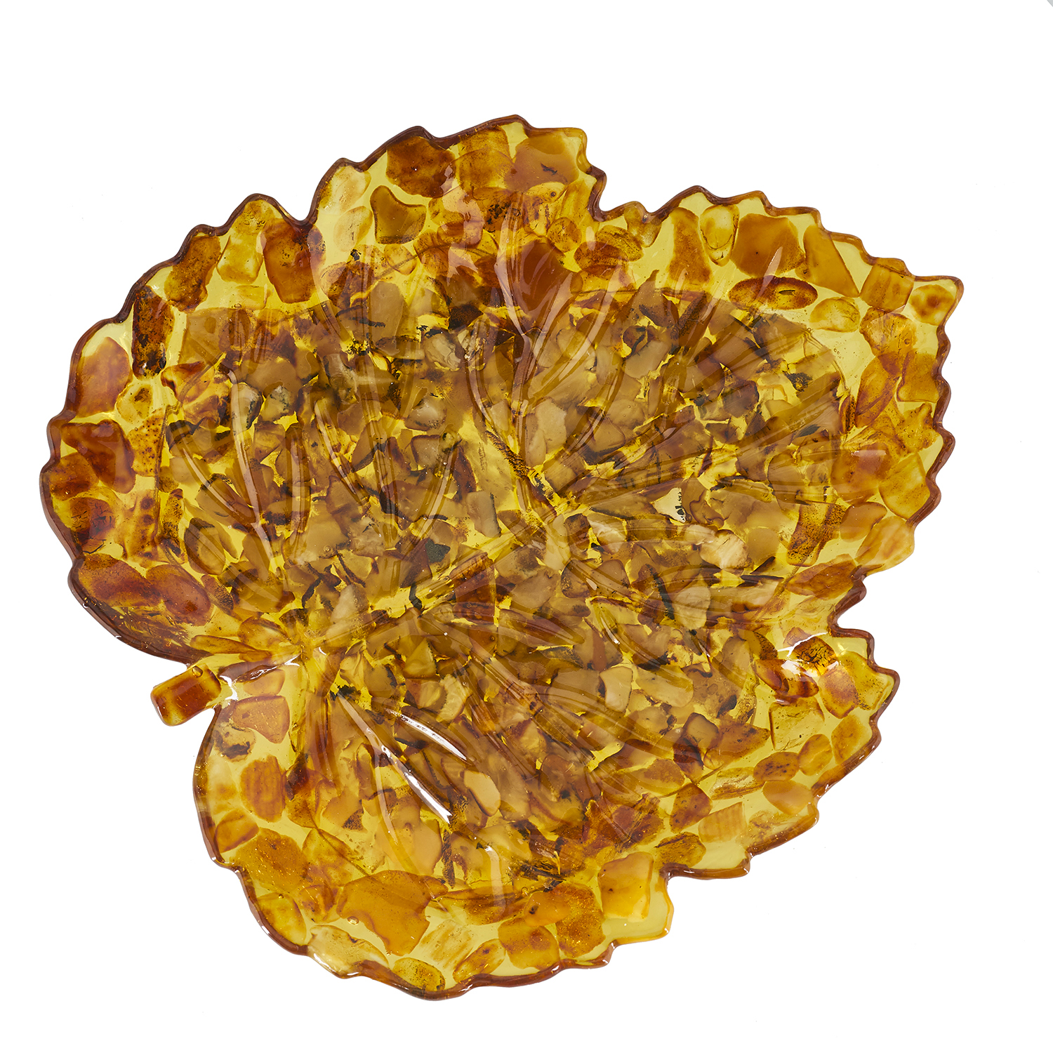 Тарелка-конфетница из янтаря "Кленовый лист".Материалы: янтарь, полиэфирная смола.