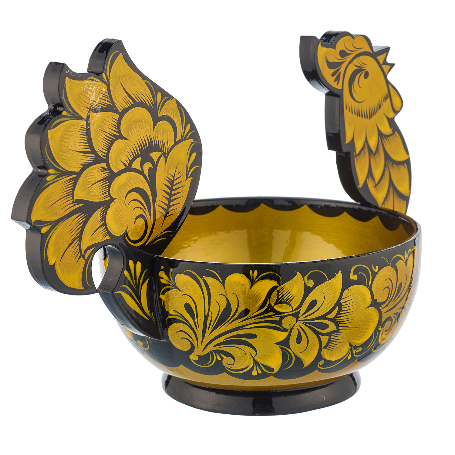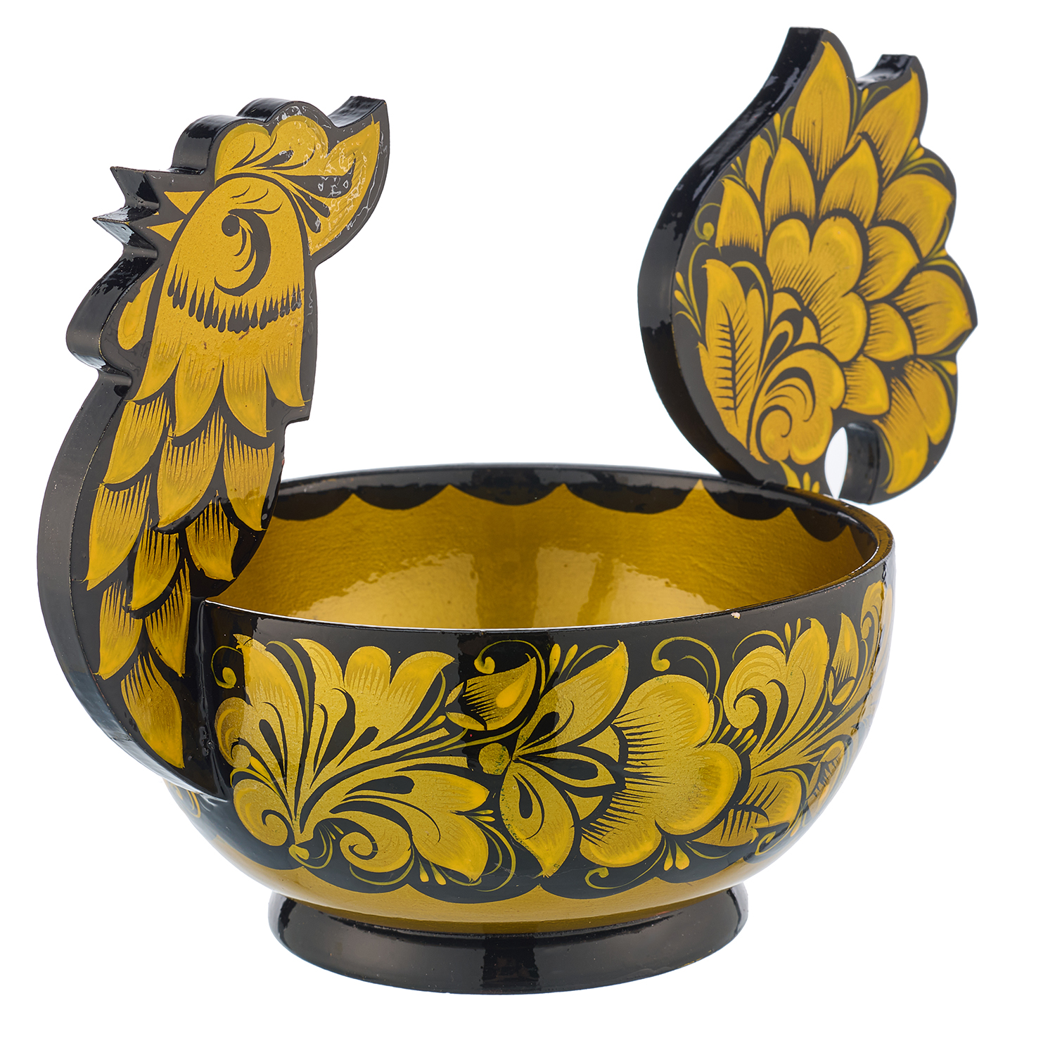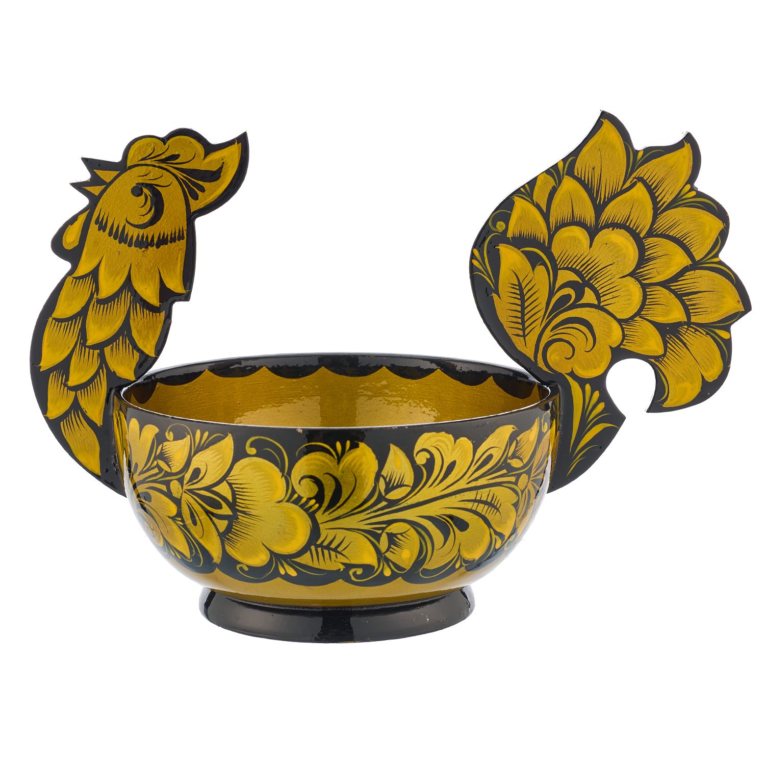 Конфетница "Петух". Хохлома.Материалы: дерево, краски, лак.