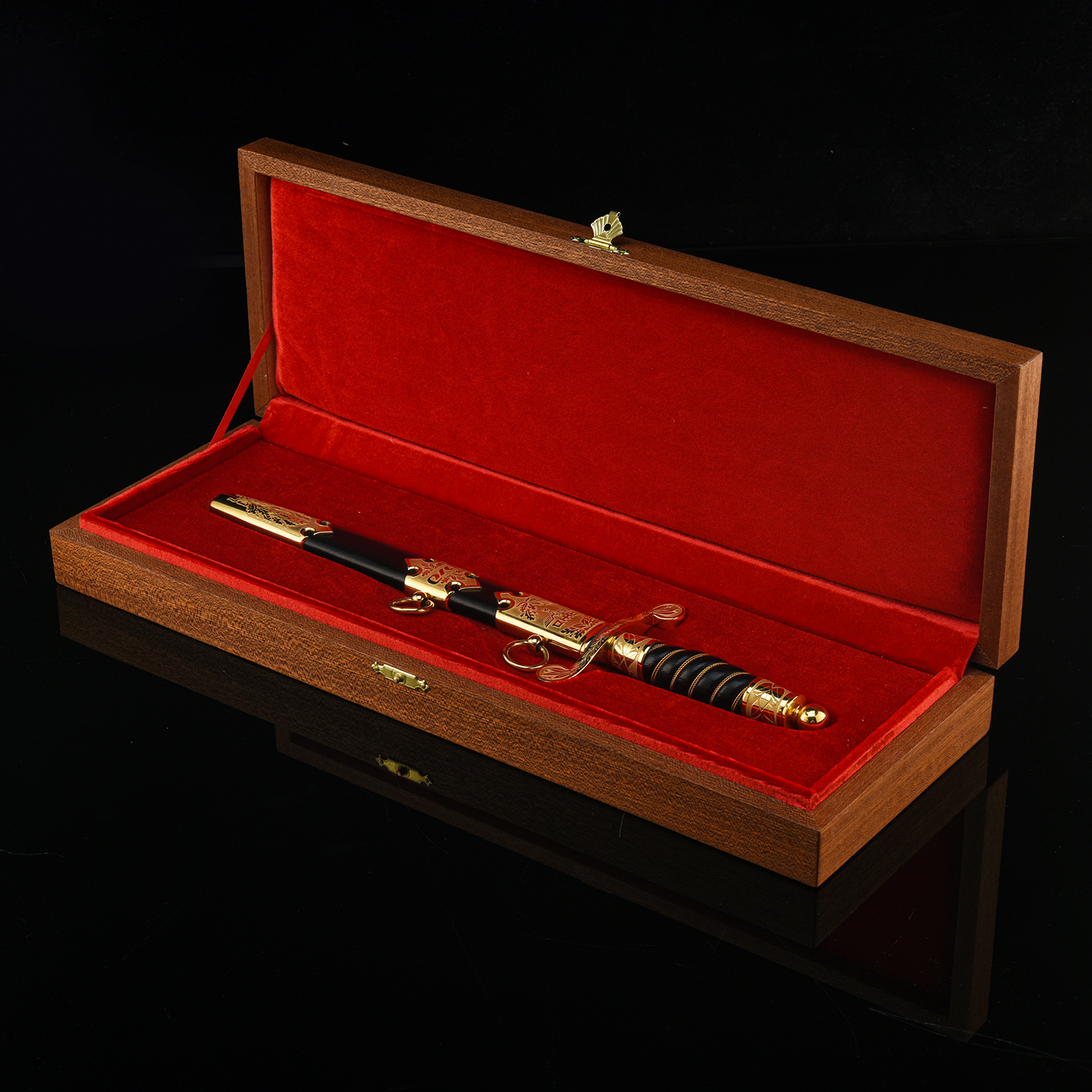 Материалы: сталь ЭИ-107, латунь, никель, золото 999,9*, кожа.