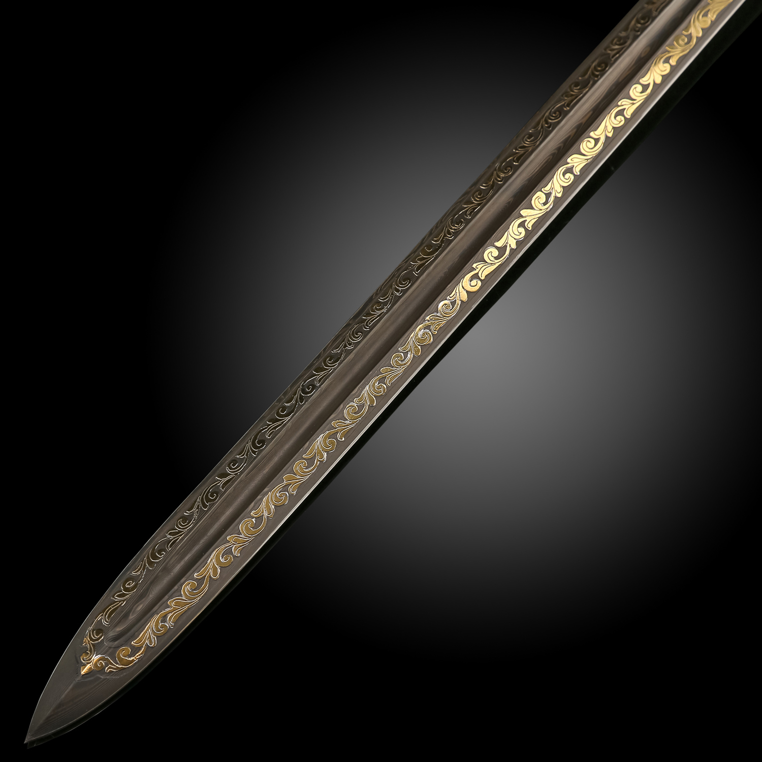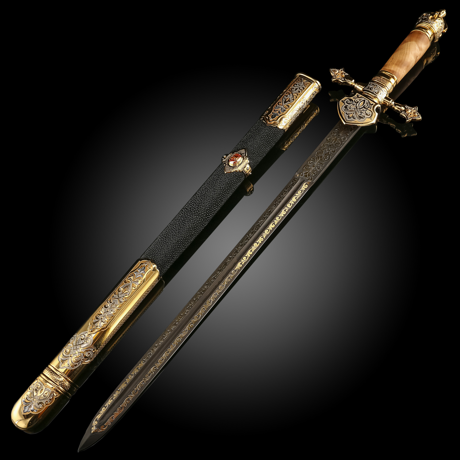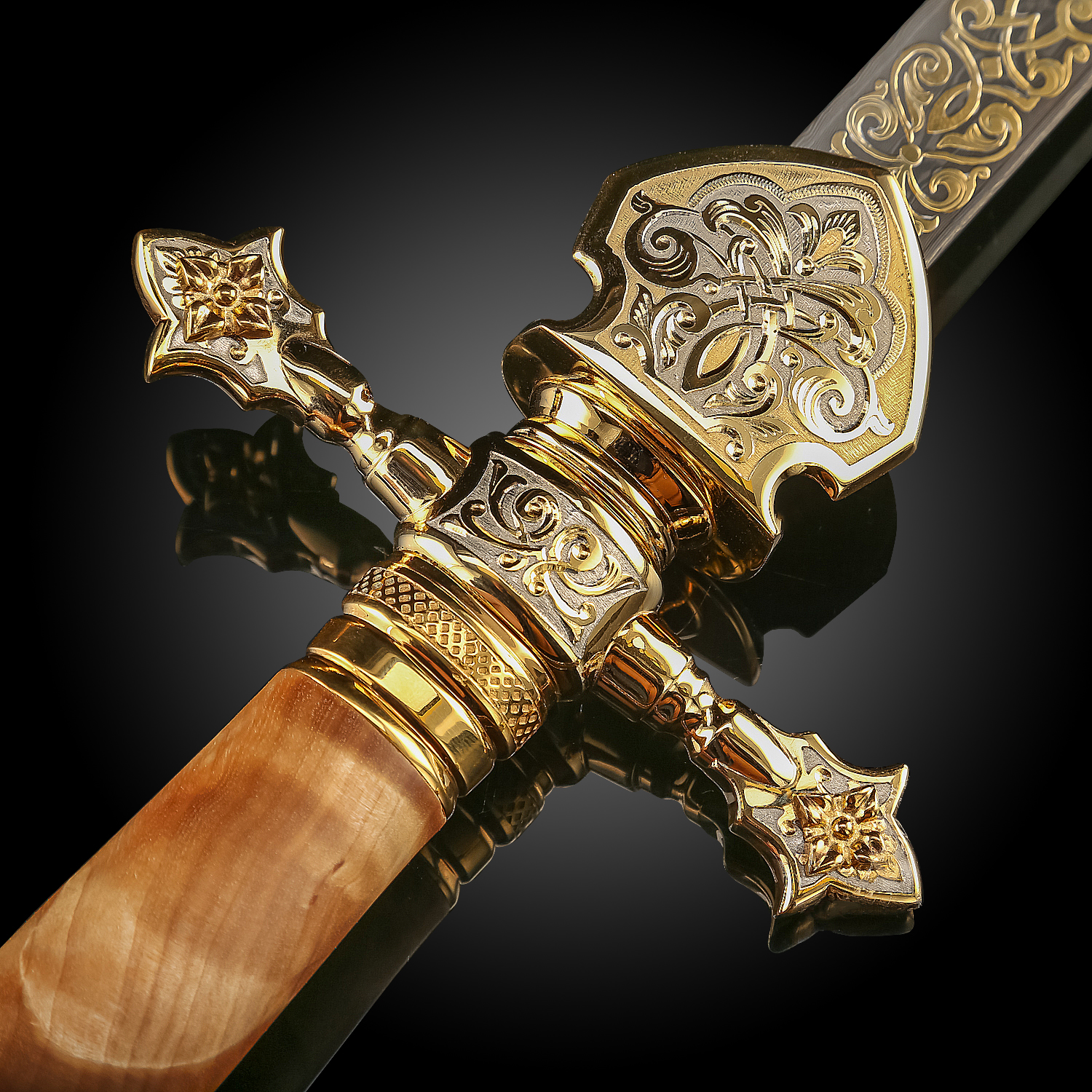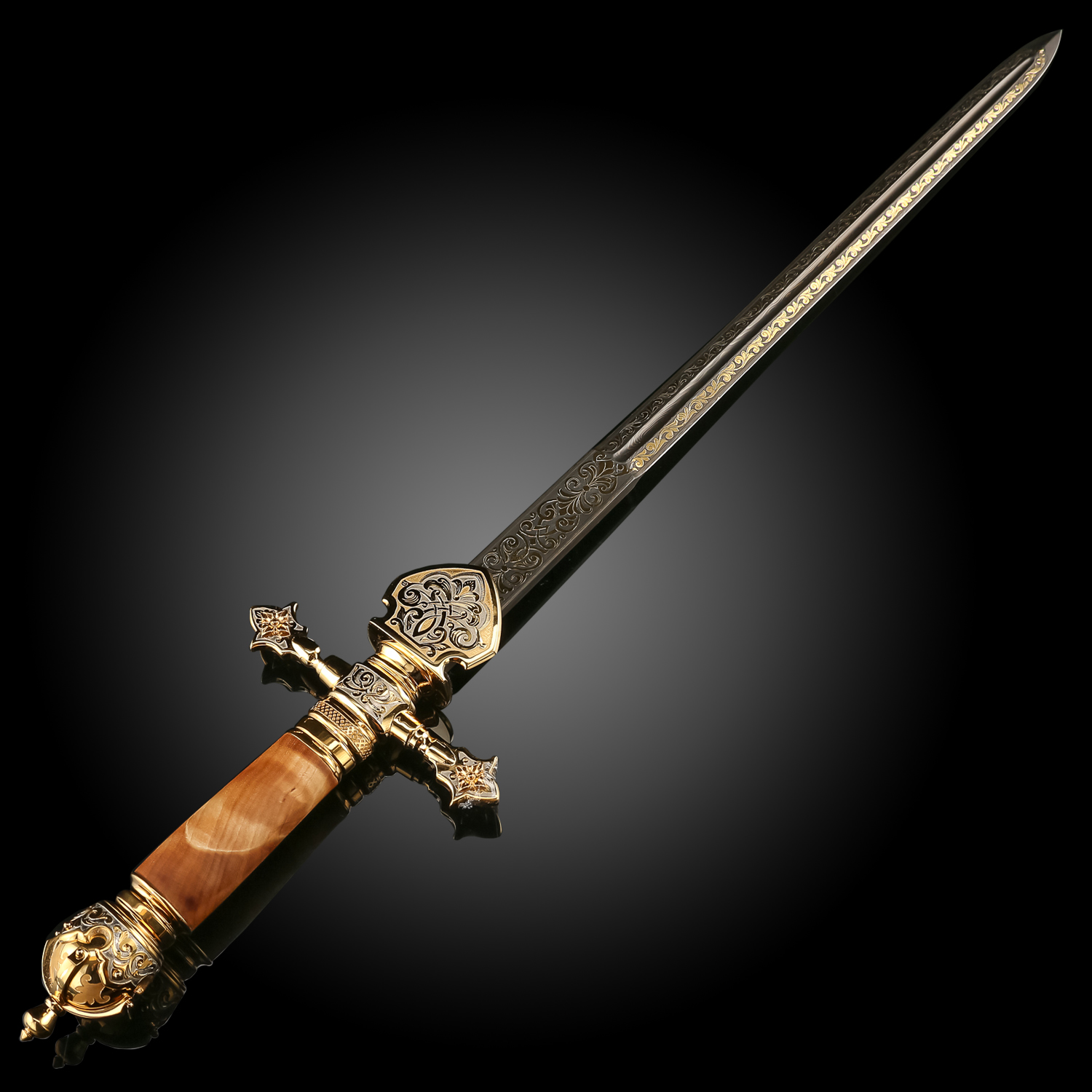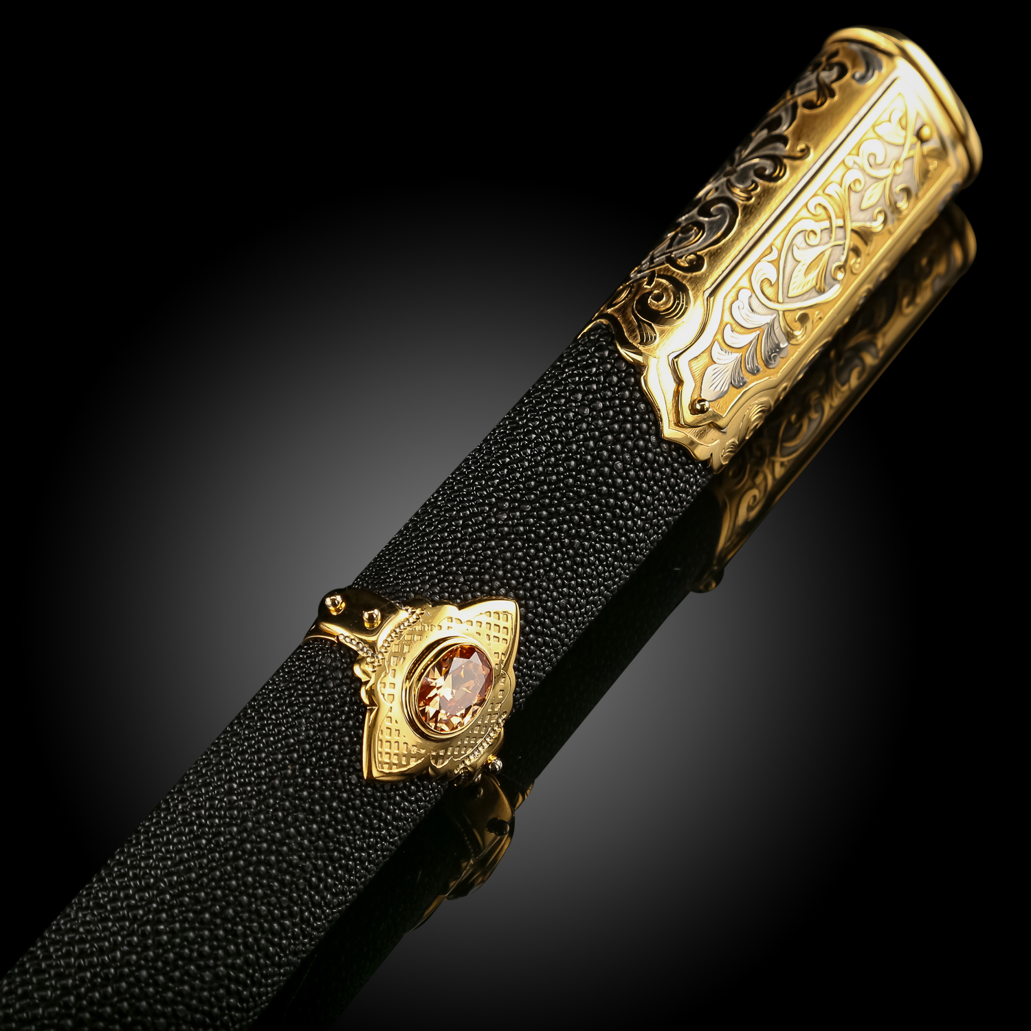 Кортик сувенирный "Царская охота". Златоуст.Материалы: дамасская сталь, дерево, кожа ската, фианиты, латунь, никель, золото 999,9*.