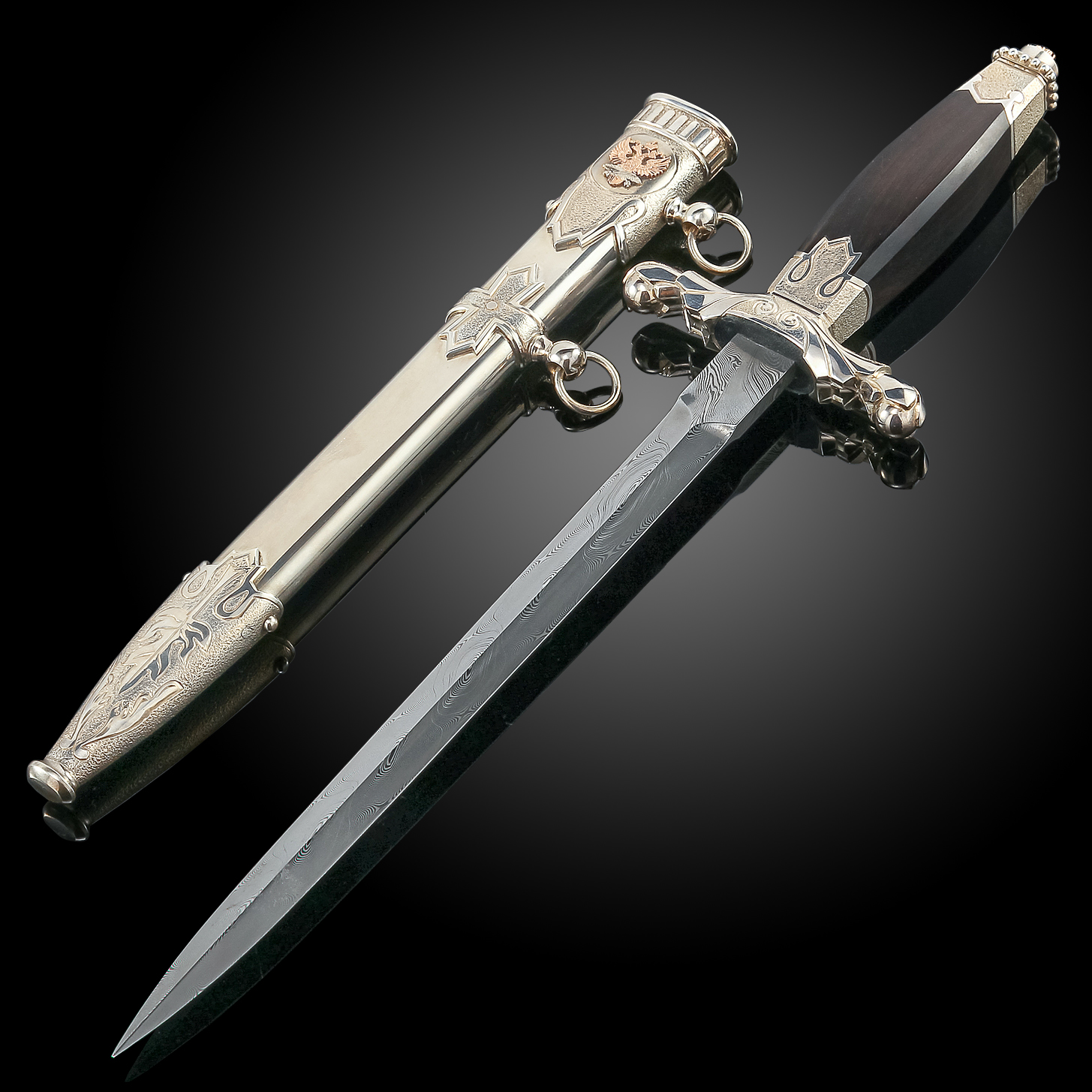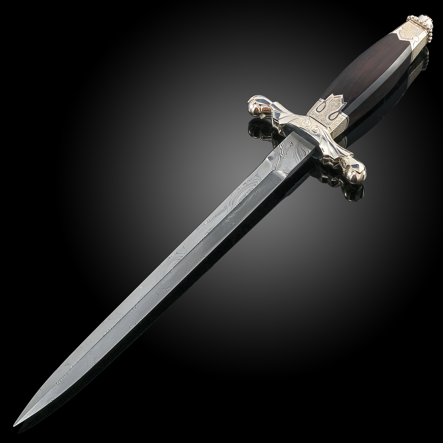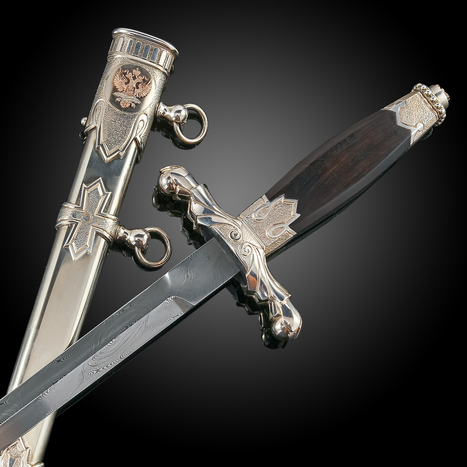 Кортик сувенирный авторский "Морской". Златоуст.Материалы: дамасская сталь, латунь, серебрение, золочение, дерево.