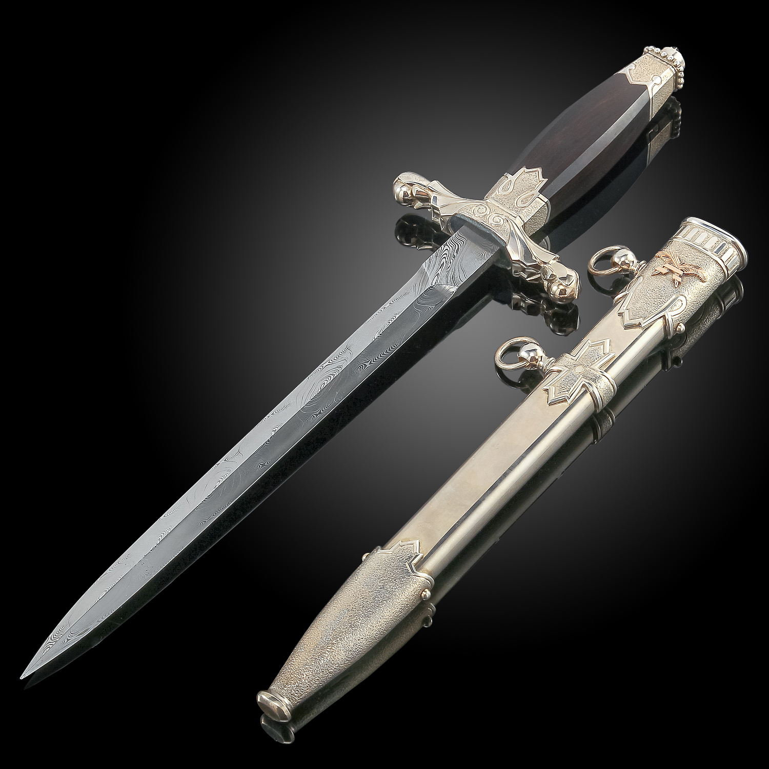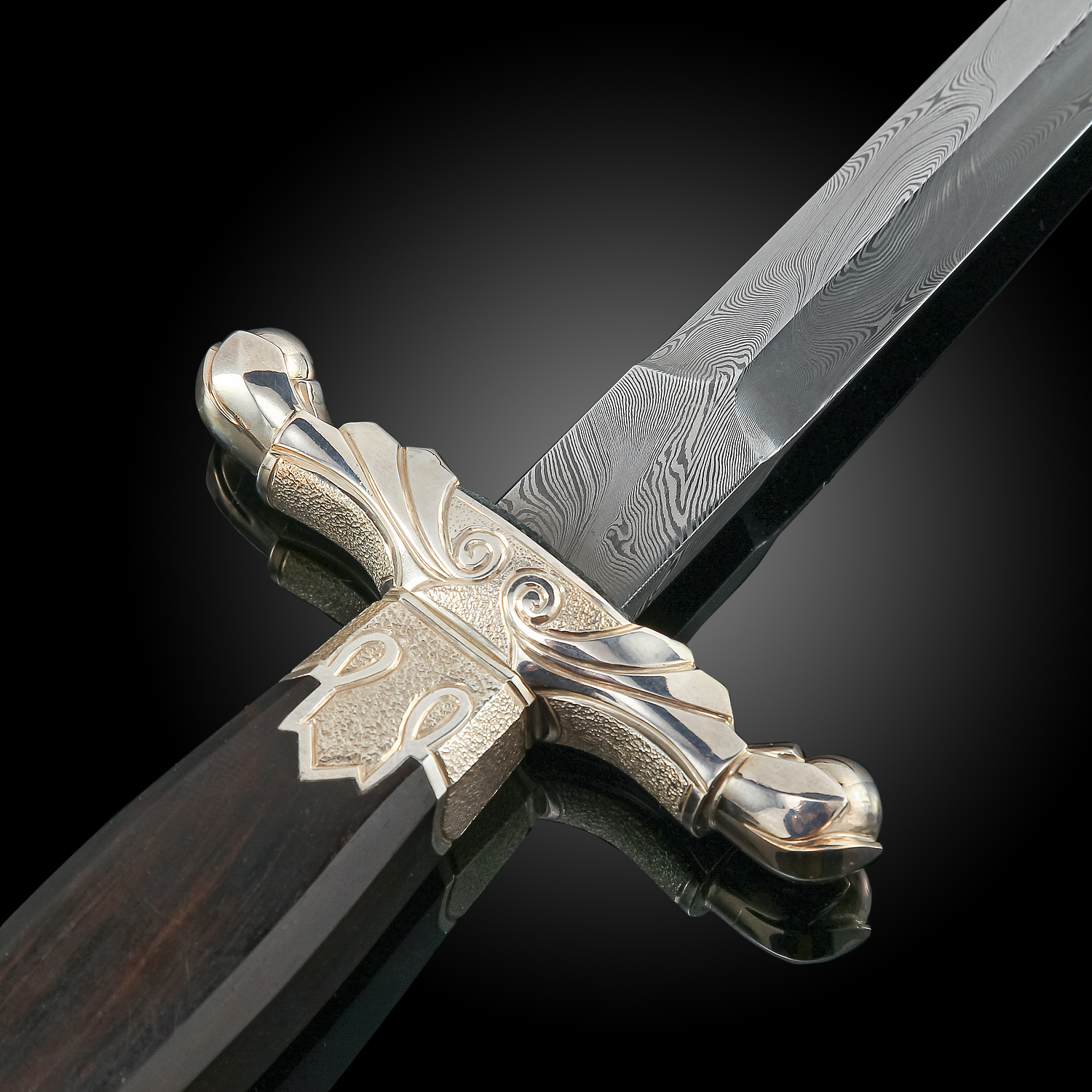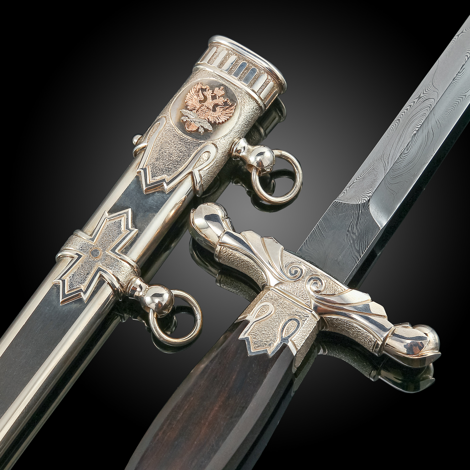 Кортик сувенирный авторский "Морской". Златоуст.Материалы: дамасская сталь, латунь, серебрение, золочение, дерево.