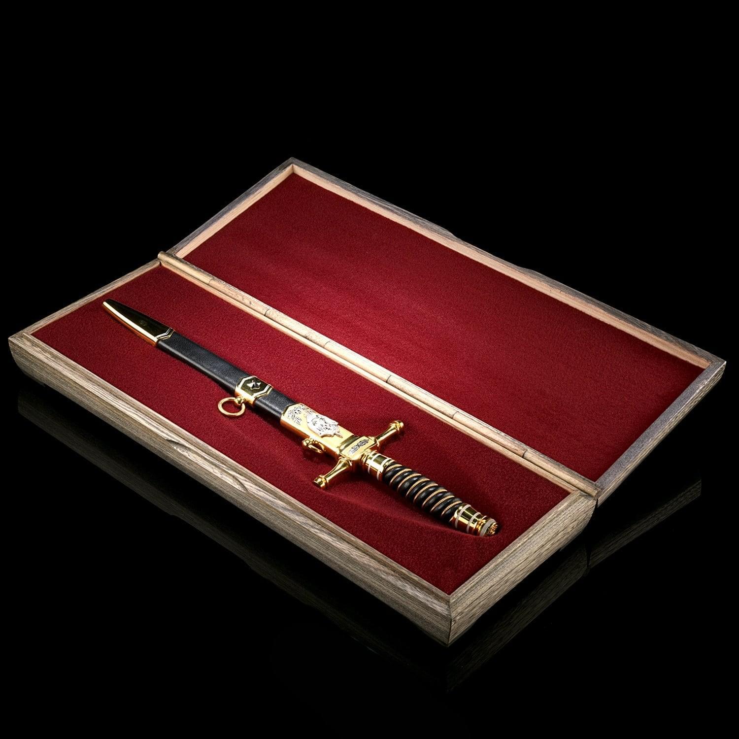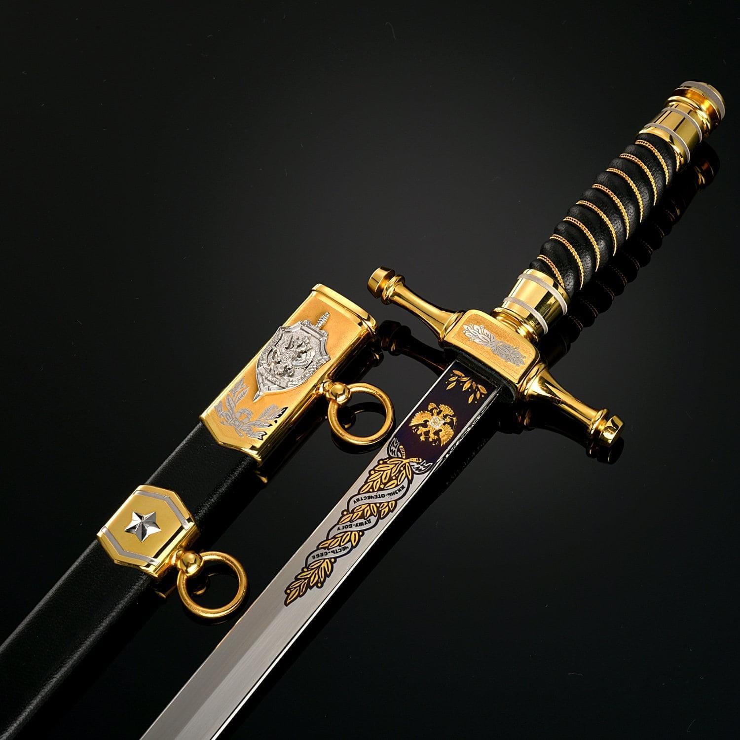 Известный любовью к «делам флотским», Петр Великий привез кортик из европейского путешествия. Персональное оружие для офицерского состава впечатлило русского императора. Новый клинок ввели в состав вооружения как штатное оружие русского моряка. После смерти царя кортиком вооружились и сухопутные чины и некоторые гражданские. В конце 1770 годов кортик был закреплен за унтер-офицерским составом егерских батальонов и заменил в линейке холодного оружия тяжелую неудобную шпагу. Кортик в силу размеров являлся универсальным оружием и мог использоваться как штык в стандартной винтовке. С таким штыком пехотинец мог действовать, не прибегая к помощи прочего обмундирования. Первый стандартный морской кортик для офицерского состава появился в 1803 году. Он имел равноострый клинок длиной свыше 30 см. и рукоять из слоновой кости. Эволюция оружия коснулась и кортика. В начале 1920 годов в России все чаще производилось оружие с длиной клинка 24 см. (вместо 30 см.) и рукояткой из слоновой кости. В 19 веке 60-сантиметровый кортик был оружием для самообороны почтальонов и красивым атрибутом для формы госслужащего. Выглядел он знатно, по-офицерски. Деревянная рукоять, обтянутая кожей и медной проволокой, голова рукояти в виде птичьей головы и загнутая кверху крестовина делали почтальонский кортик образца 1820 года удивительным. Клинок данного кортика украшен выгравированным растительным узором и надписью на подложке «Высшая цель – служение Отечеству». Эксклюзивная работа мастеров Златоуста. Материал: сталь, латунь, никель, дерево, кожа, золочение, литье. Размер: длина (общая) 36,5 см. длина клинка 23,8 см. ширина клинка 1,7 см. Техника исполнения: токарные работы, рисовка кистью, гравировка иглой по лаку, травление, гравировка резцом, полировка, никелирование, золочение. В изделии использовались традиционные методы обработки и украшения Златоустовской гравюры на металле. .