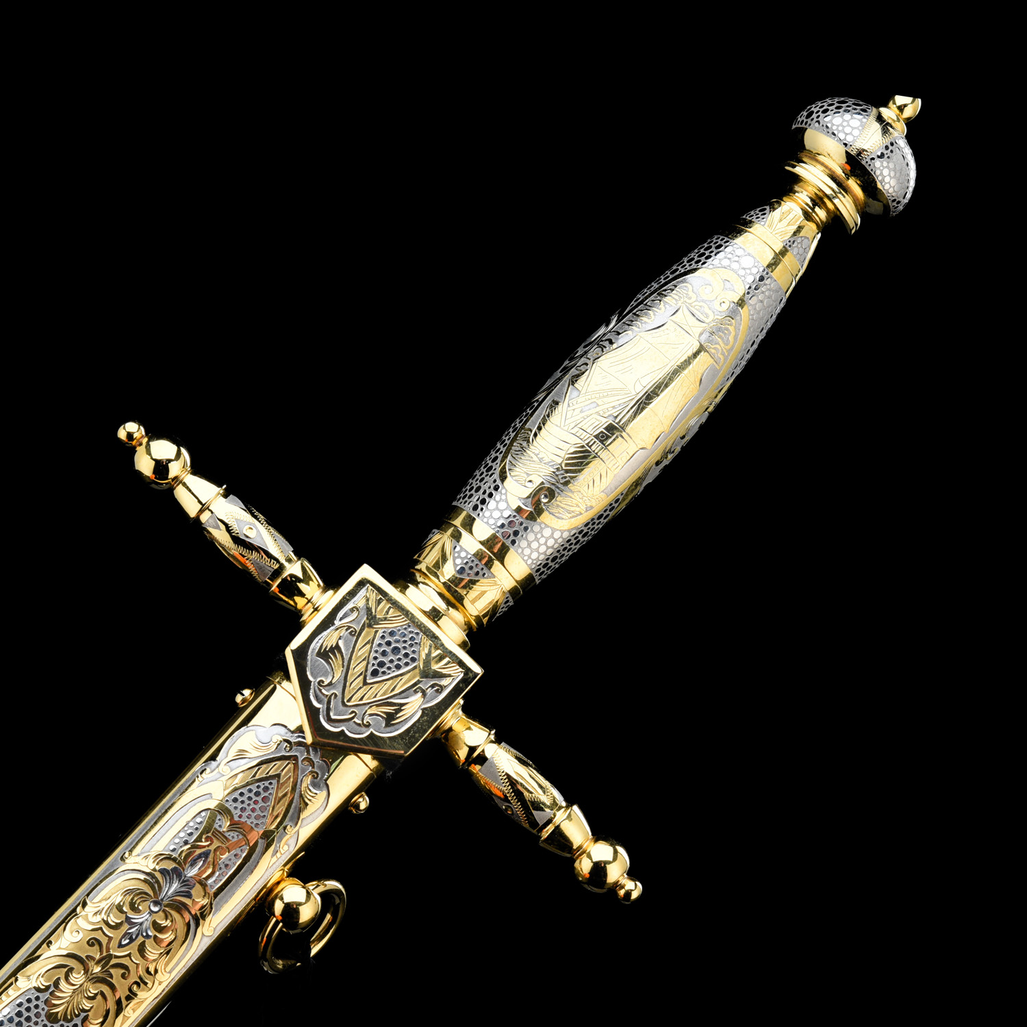 Кортик сувенирный "Адмиральский". Златоуст.Материалы: сталь ЭИ-107, латунь, никель, золото 999,9*.