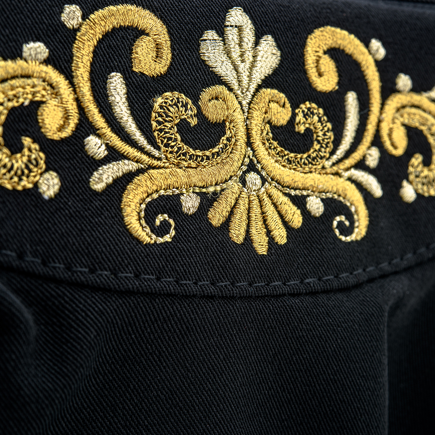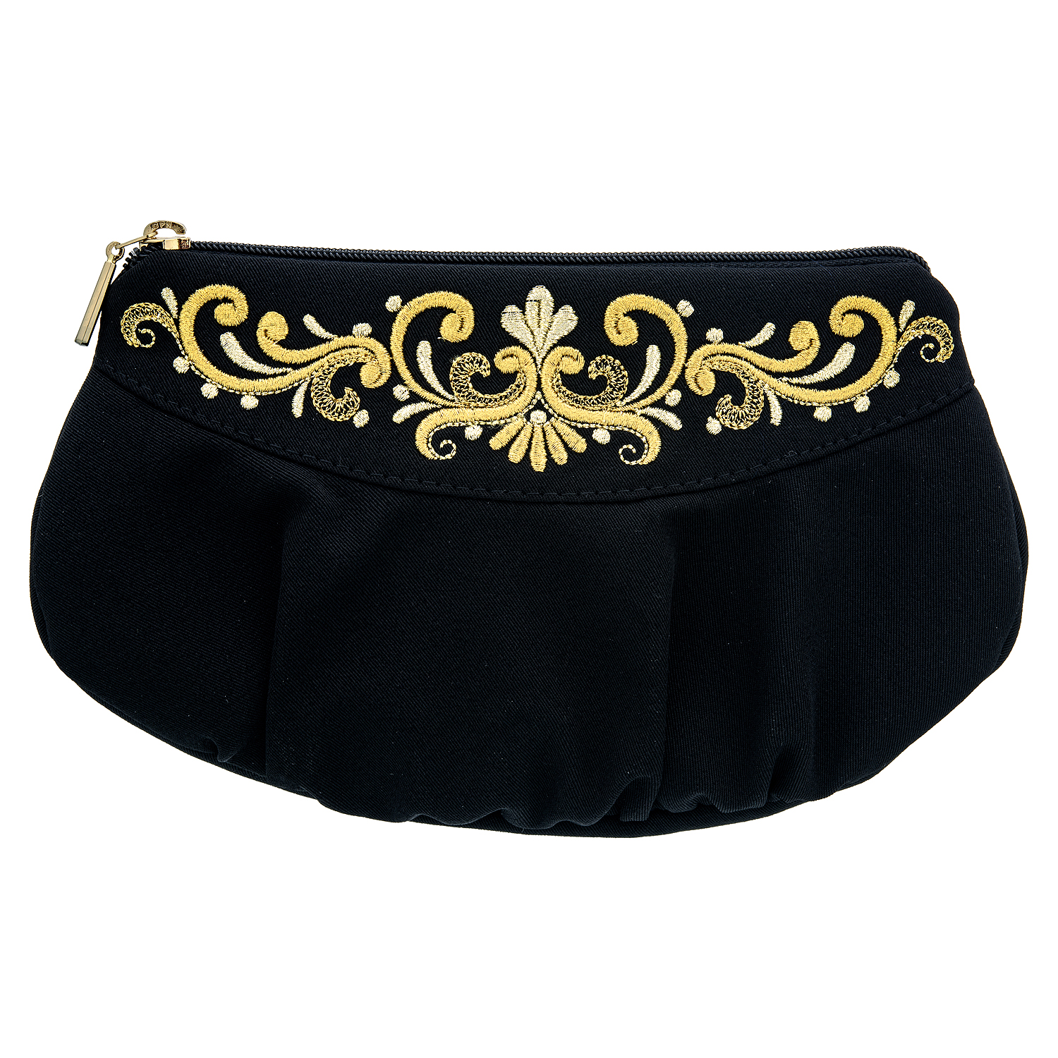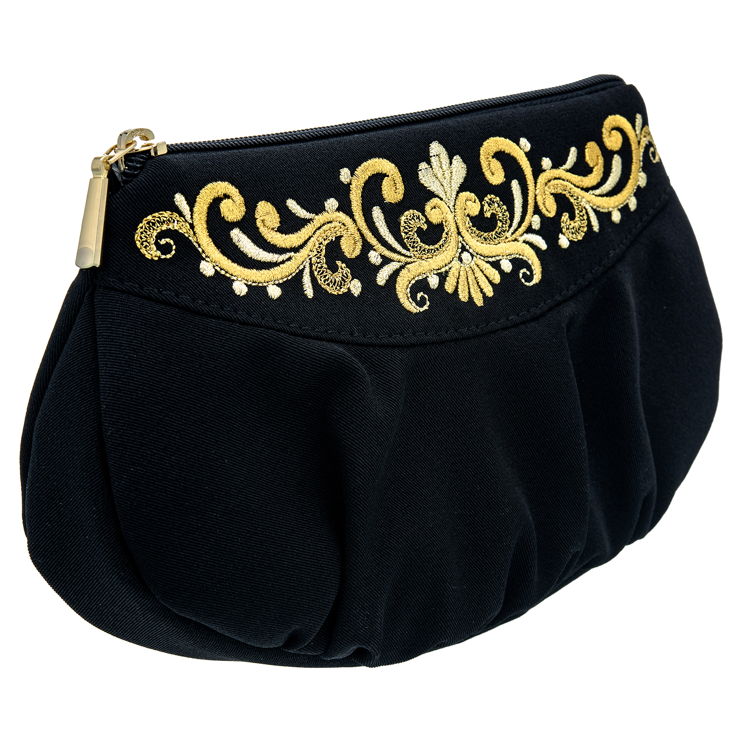 Русские подарки и сувениры → Аксессуары → Косметички → Косметичка "Фантазия". Черная с золотой вышивкой